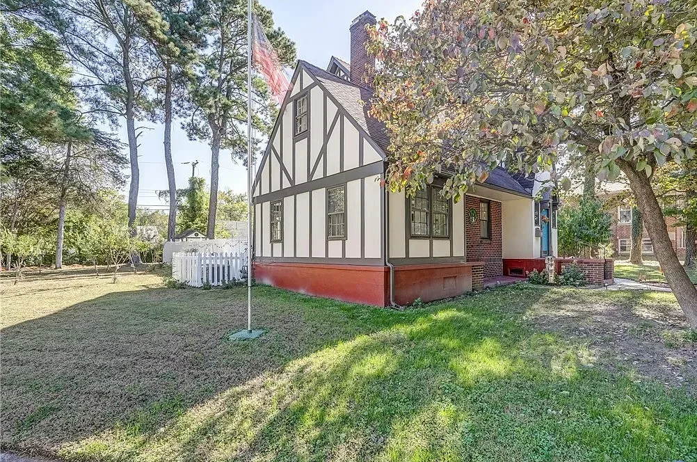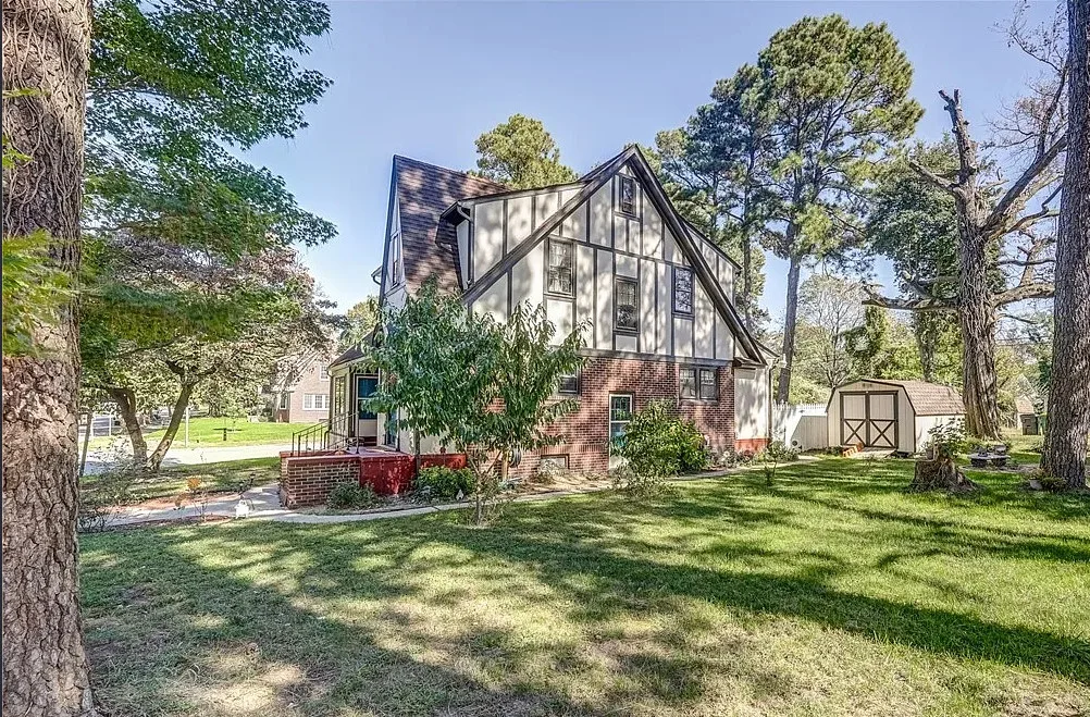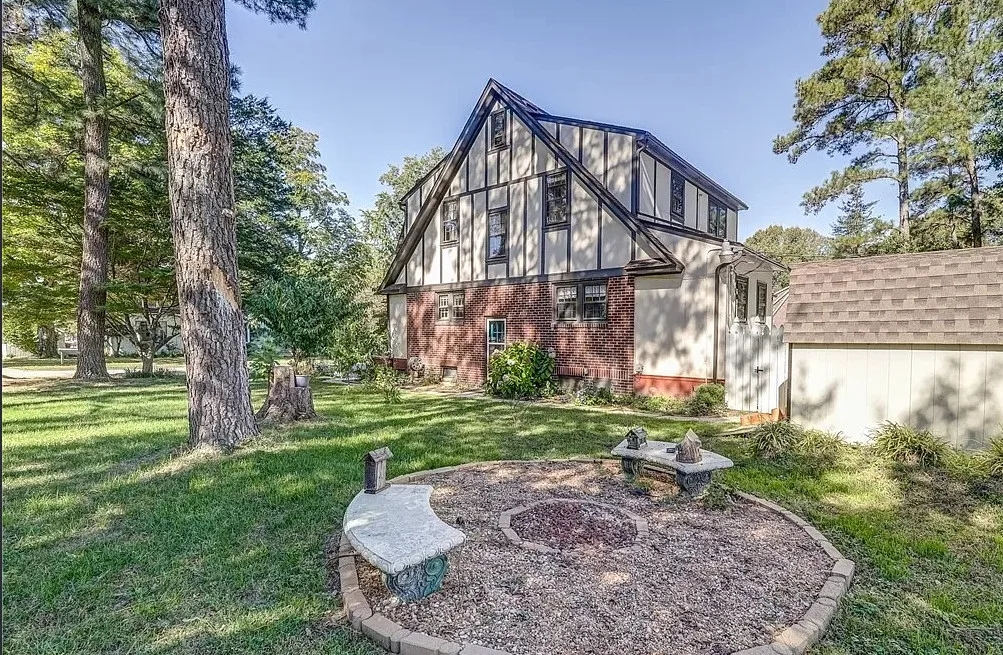 Don’t miss your chance to own a piece of history in the heart of Hopewell’s City Point Historic District. This charming 1927 Tudor-style home offers 2,039 sq. ft. of timeless character blended with modern updates. Located on a bluff where the James and Appomattox Rivers meet, City Point was founded in 1613 and played a key role in both the Revolutionary and Civil Wars. Today, the area is a peaceful and scenic neighborhood rich in heritage. This beautifully maintained home features original hardwood floors throughout, as well as original door hardware, chandeliers, and wall sconces. The updated kitchen includes stainless steel appliances & granite countertops, offering both style & functionality. A powder room is conveniently located off the kitchen. Upstairs, you’ll find a large primary bedroom with space for a king-sized bed, two closets, & a dressing area. Two additional bedrooms are generously sized. The upstairs full and half baths have been tastefully updated, blending classic charm with modern comfort. Recent improvements include a 2 zone heat pump (2024), new rear deck (2024), detached shed (2023), updated electrical panel (2023), fresh interior paint (2023), and exterior paint (2024). Off-street parking for two cars is accessible via the rear alley. The corner lot features a mix of mature trees & newly planted fruit trees. A fenced area in backyard provides a perfect space for pets, and the unfinished basement includes a workbench for hobbies or storage. This rare historic gem offers character, comfort, and a location steeped in American history—just steps from scenic river views & national park landmarks. 509 Cedar Lane is registered on both the National & State Historic Registers, Returned to market at no fault of the seller. Prior buyer was unable to proceed due to financing-related terms. Property is available and easy to show; seller will consider cash or conventional financing offers only.