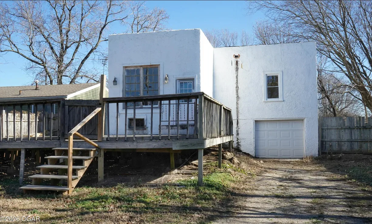 Brimming with charm and character, this Spanish-style home is a rare opportunity to add your personal touch. The home features two bedrooms, one full bathroom, an open-concept living and dining space with a decorative fireplace, a large unfinished basement with a one-car drive-under garage, and a spacious backyard deck surrounded by a full privacy fence.