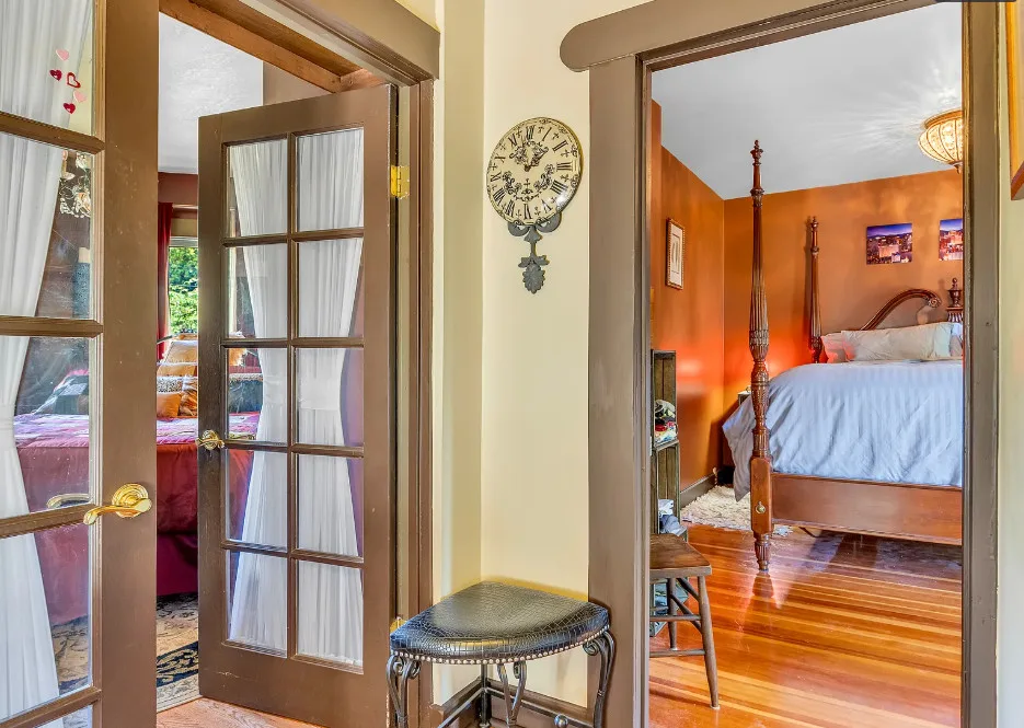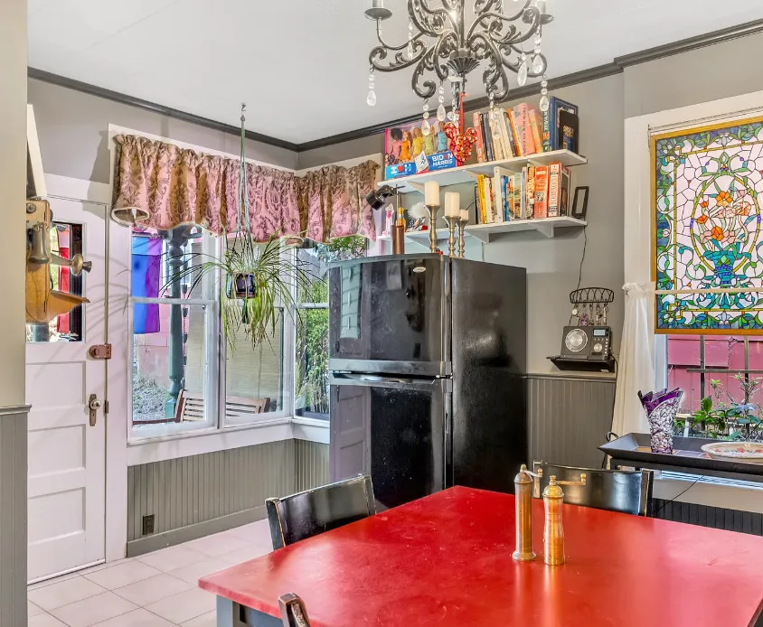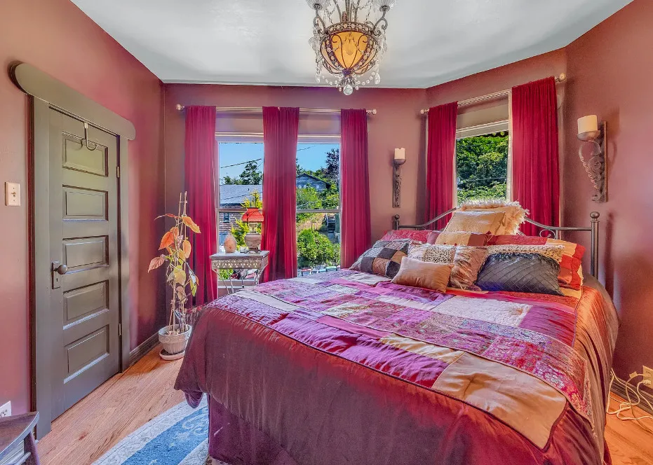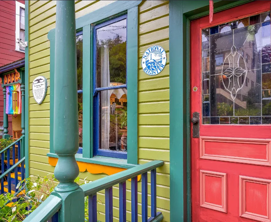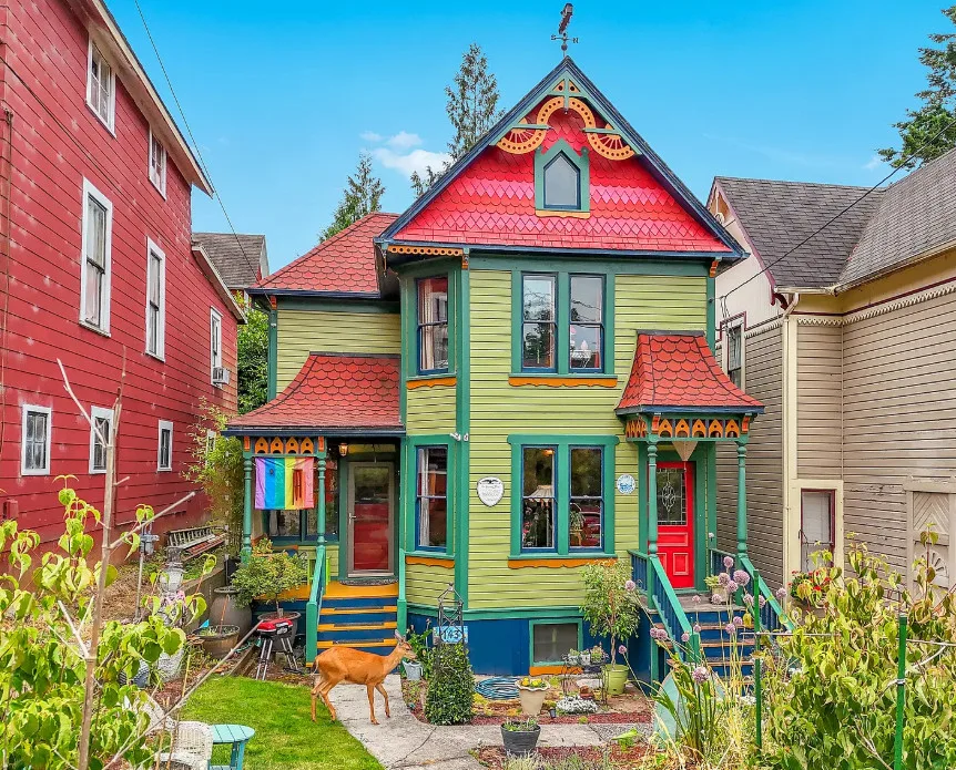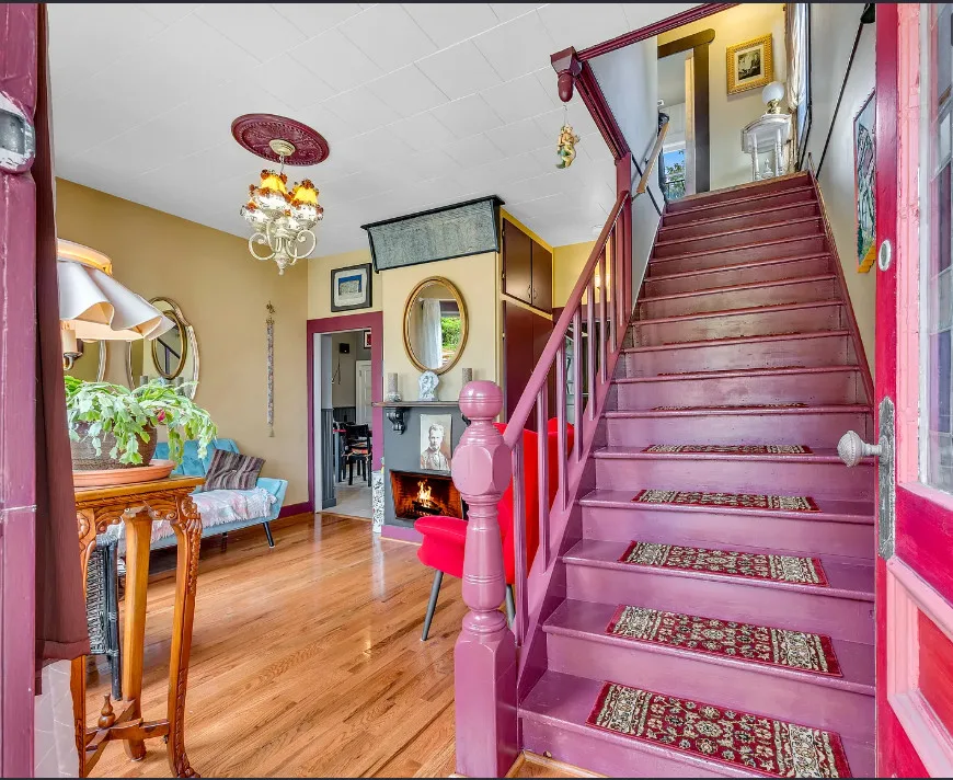 This house has a colorful exterior! There are pretty details inside! The house was built in 1896. It is located in Astoria, Oregon. The house features a small covered front porch, wood floors, chandeliers with ceiling medallions, stained glass windows, spacious kitchen, large finished basement and french doors. The home is situated in the vibrant Uniontown neighborhood. Two bedrooms, two bathrooms and 1,036 square feet. $452,288