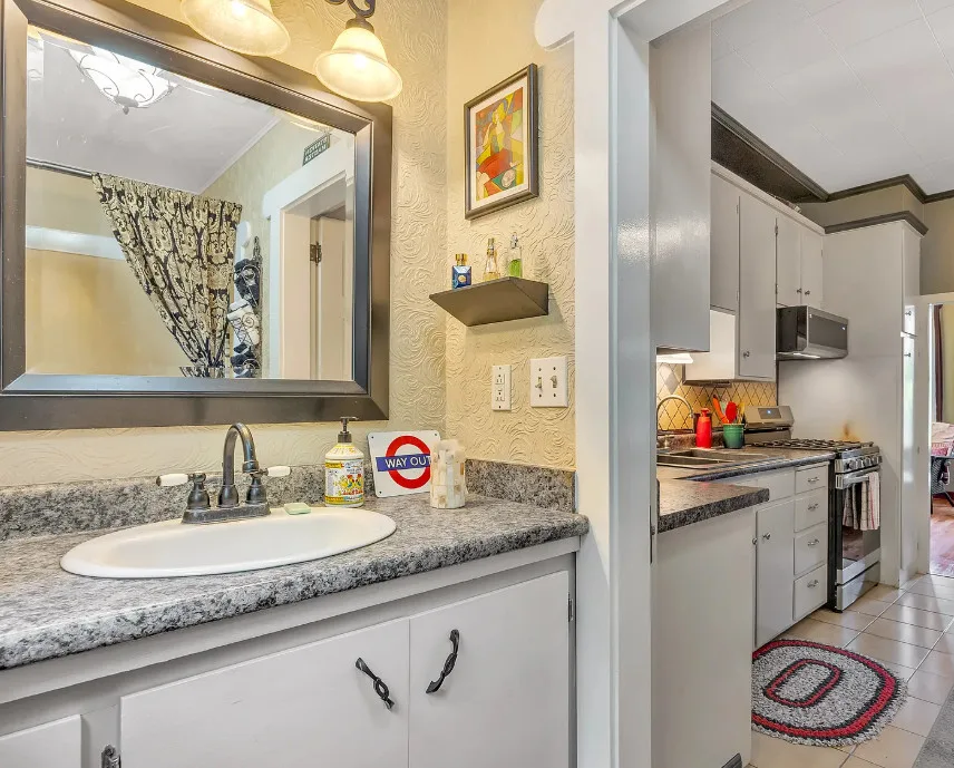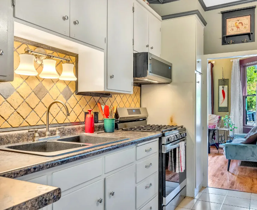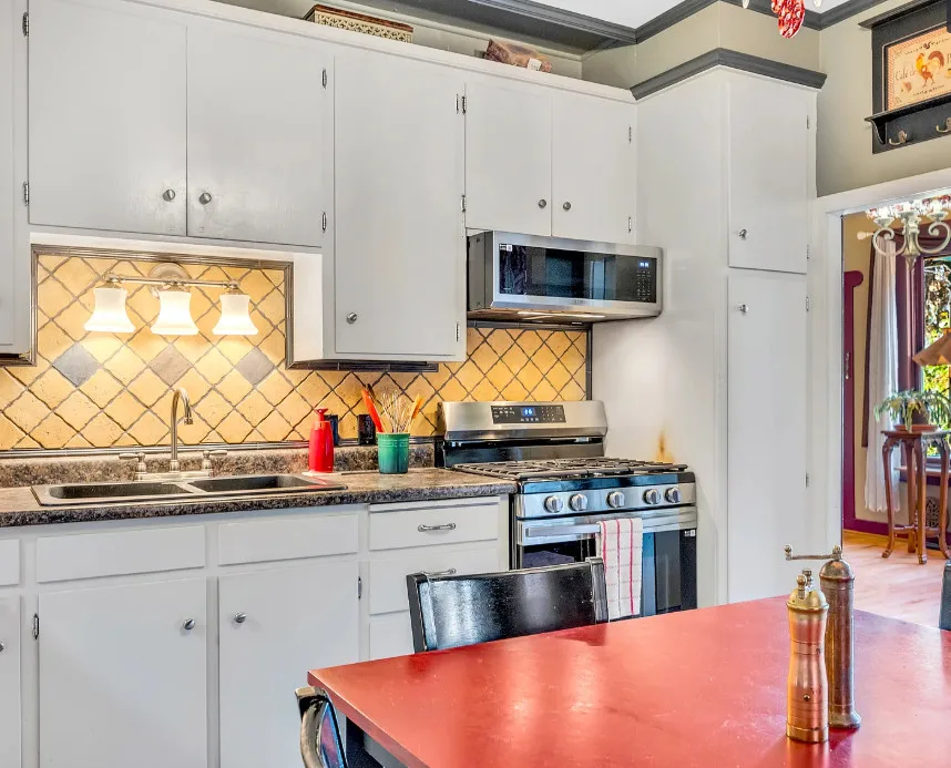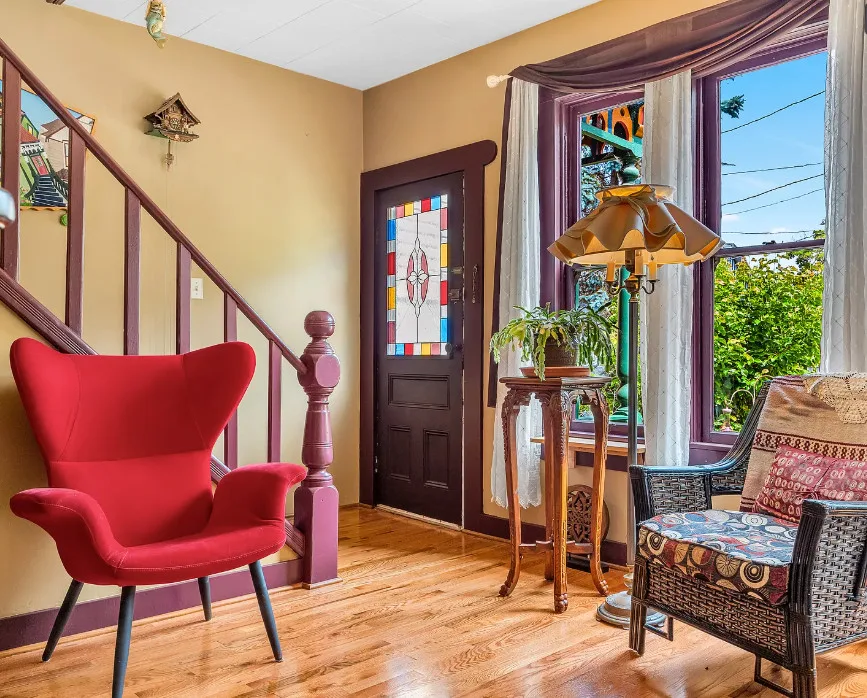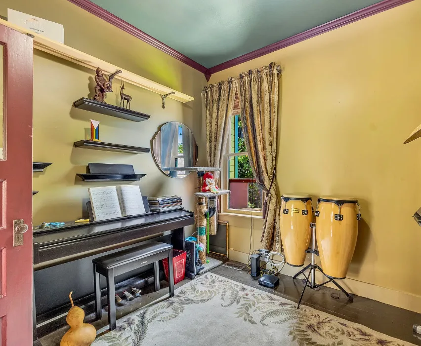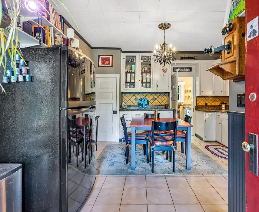 This house has a colorful exterior! There are pretty details inside! The house was built in 1896. It is located in Astoria, Oregon. The house features a small covered front porch, wood floors, chandeliers with ceiling medallions, stained glass windows, spacious kitchen, large finished basement and french doors. The home is situated in the vibrant Uniontown neighborhood. Two bedrooms, two bathrooms and 1,036 square feet. $452,288