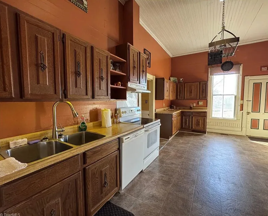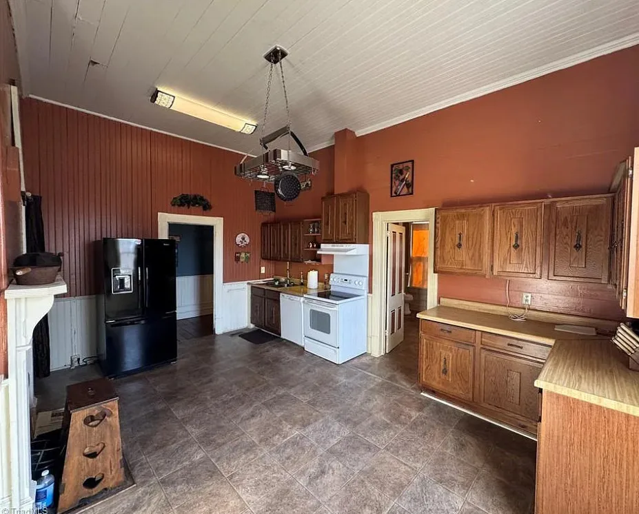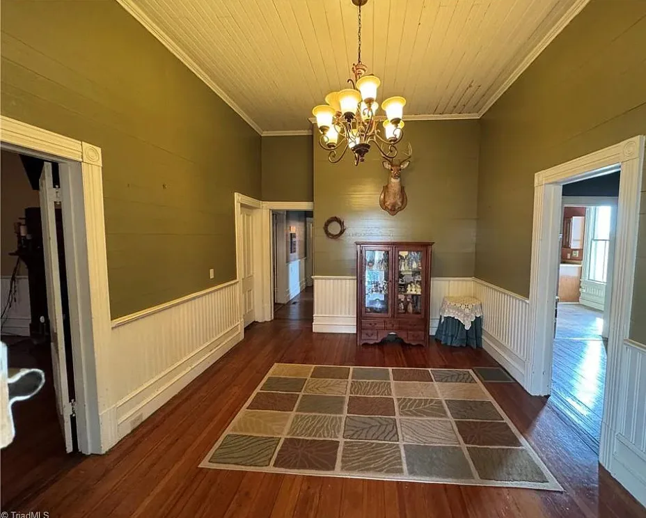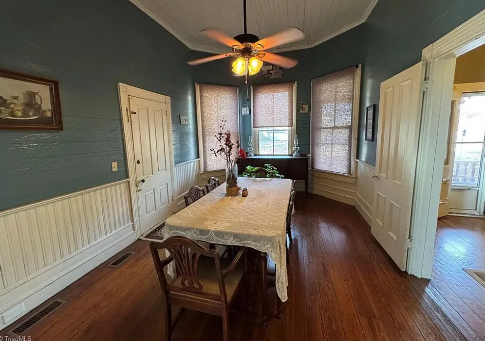 This house looks like it has been maintained quite nicely! Some rooms feel a bit dark, but paint and lighting would help. The house was built in 1881. It is located on .24 acre in North Wilkesboro, North Carolina. The house features a covered front porch, wood floors, bead board wainscoting, crown moulding, spacious kitchen and updated bathrooms. There is a fenced in backyard. One bedroom, two bathrooms and 1,566 square feet. $178,000