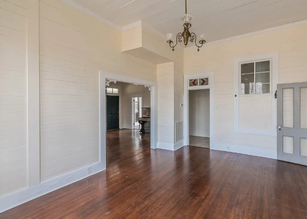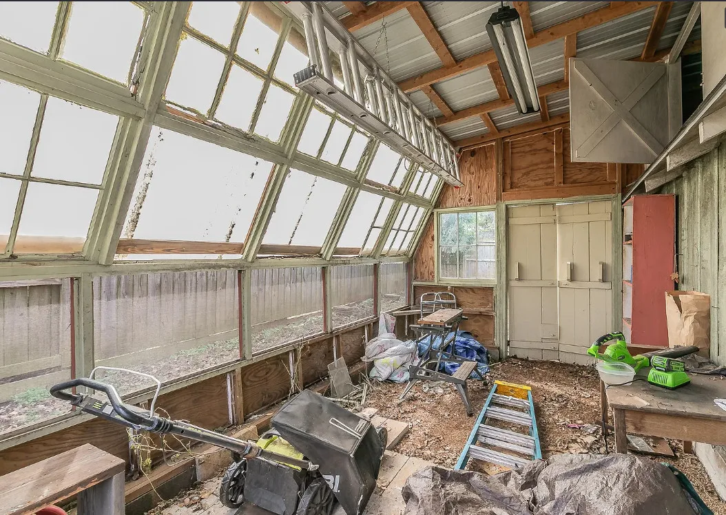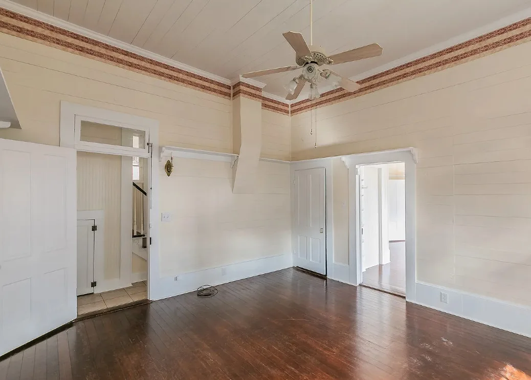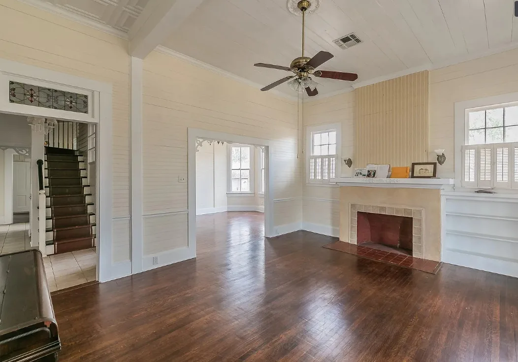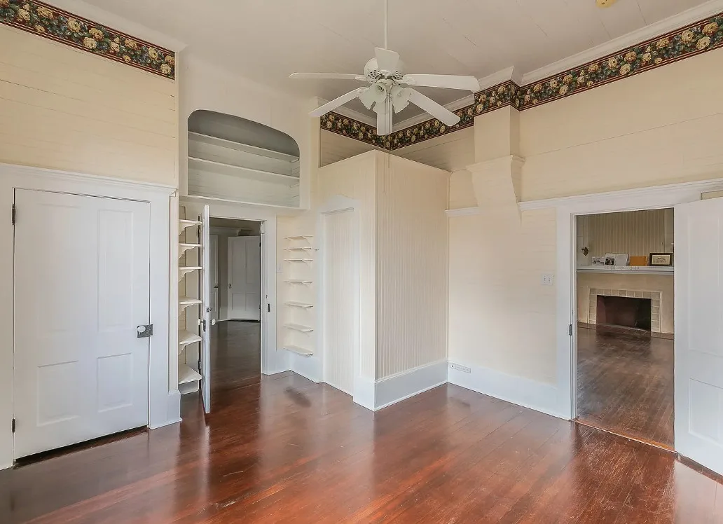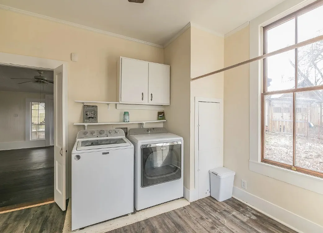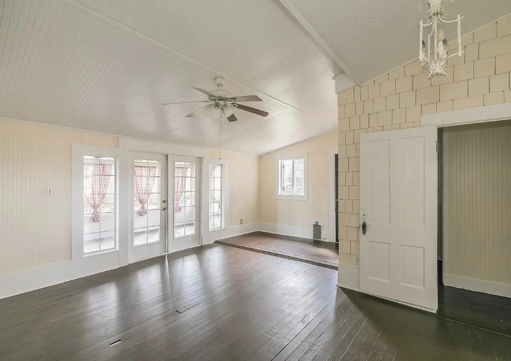 I love the kitchen sink in this house! The screened in porch is nice too! There is a greenhouse on the property. The house was built in 1884. It is located on .50 acre in Palestine, Texas. The house features a covered front porch, jib windows, wood floors, crown moulding, wide baseboards, transom windows, chair rails and a lot of natural light. There is a screened in porch on the back of the house. The property has a detached carriage house and a greenhouse. Three bedrooms, two bathrooms and 2,262 square feet. $215,000