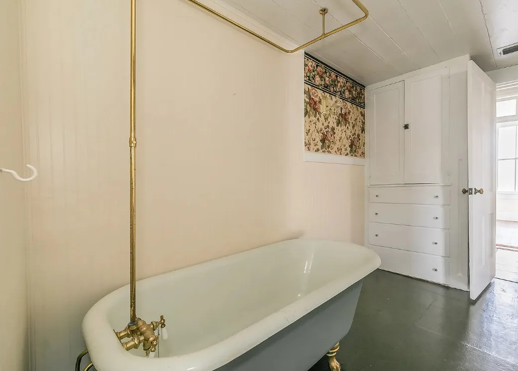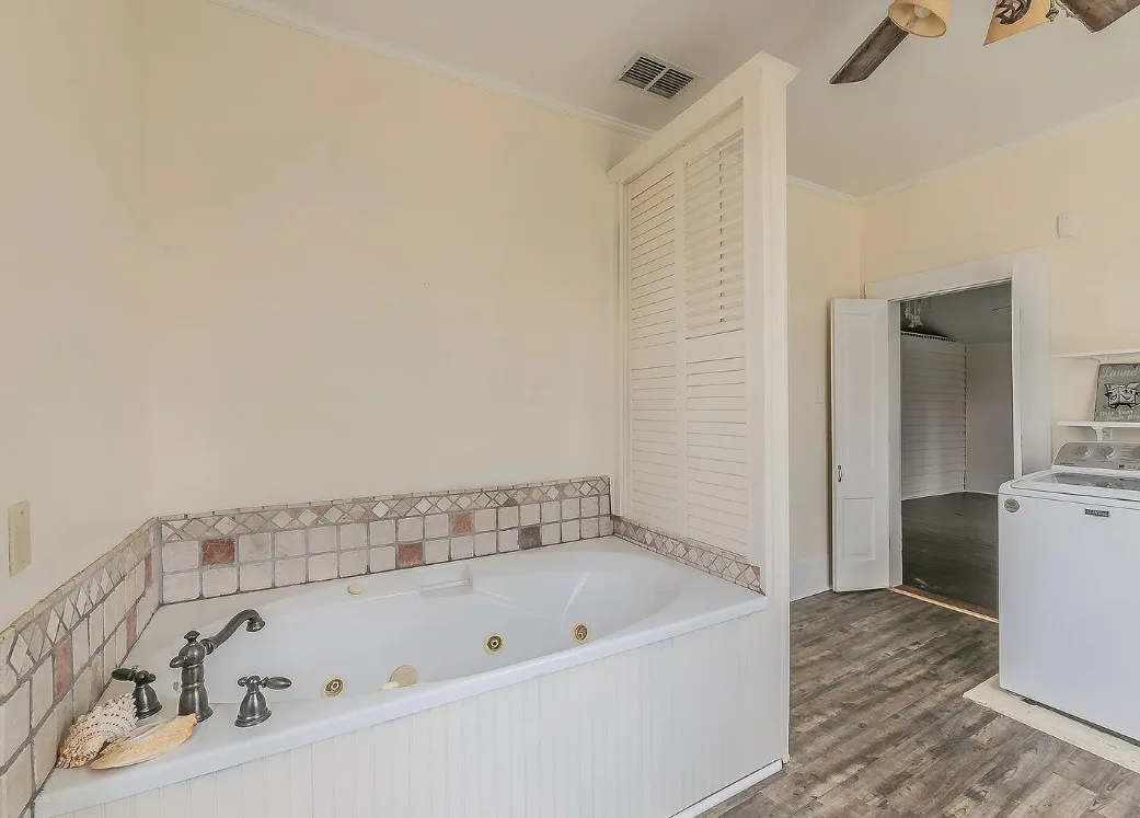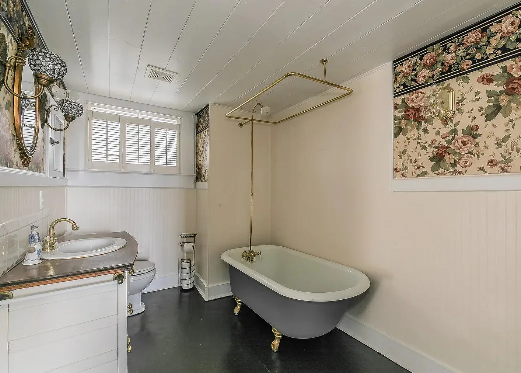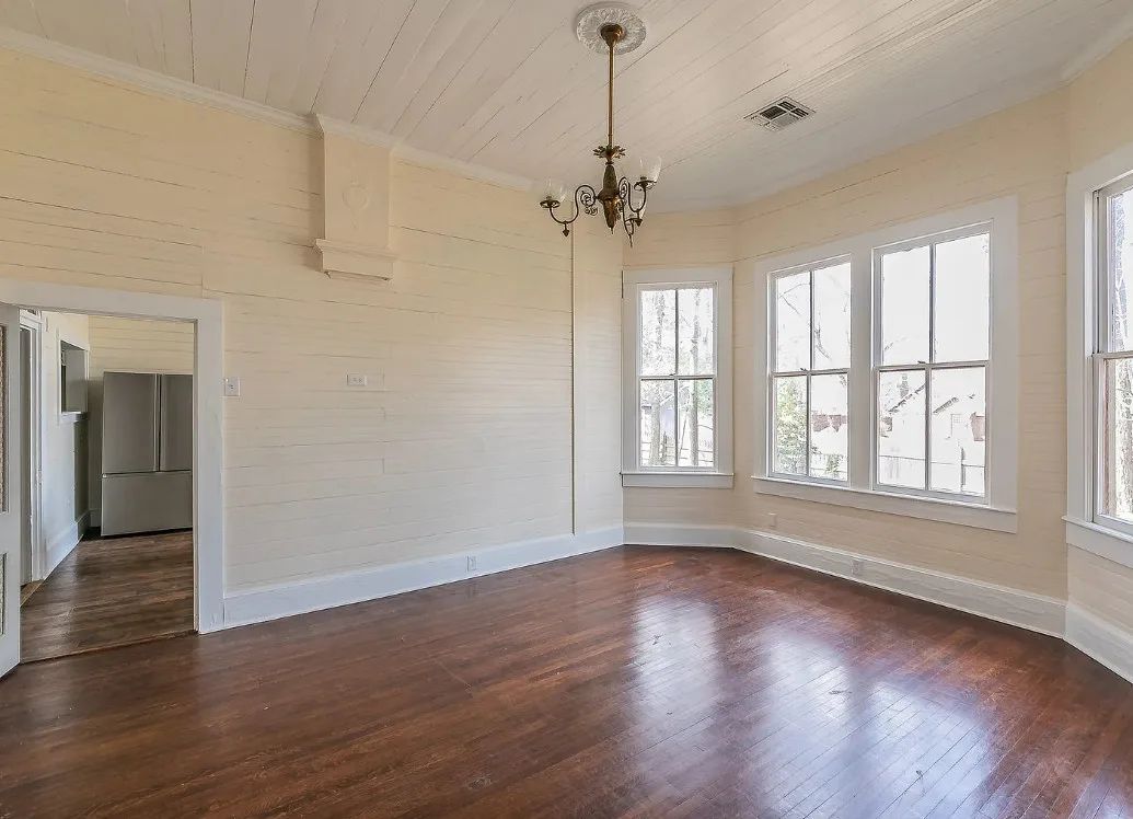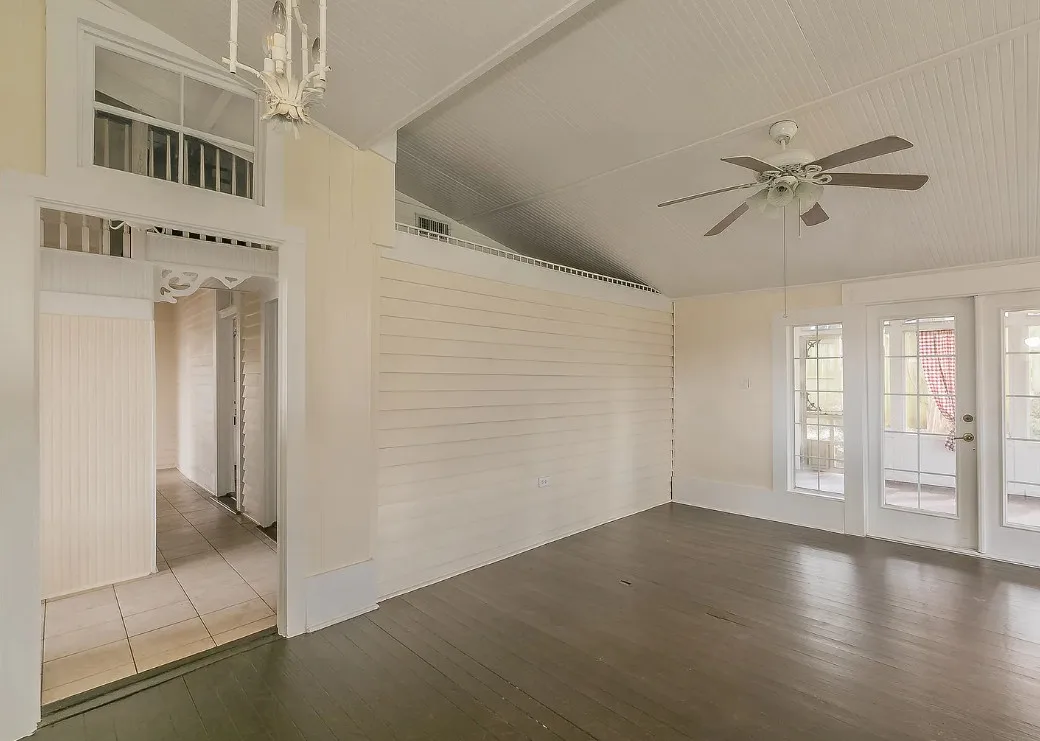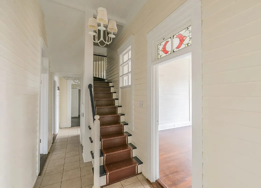 I love the kitchen sink in this house! The screened in porch is nice too! There is a greenhouse on the property. The house was built in 1884. It is located on .50 acre in Palestine, Texas. The house features a covered front porch, jib windows, wood floors, crown moulding, wide baseboards, transom windows, chair rails and a lot of natural light. There is a screened in porch on the back of the house. The property has a detached carriage house and a greenhouse. Three bedrooms, two bathrooms and 2,262 square feet. $215,000