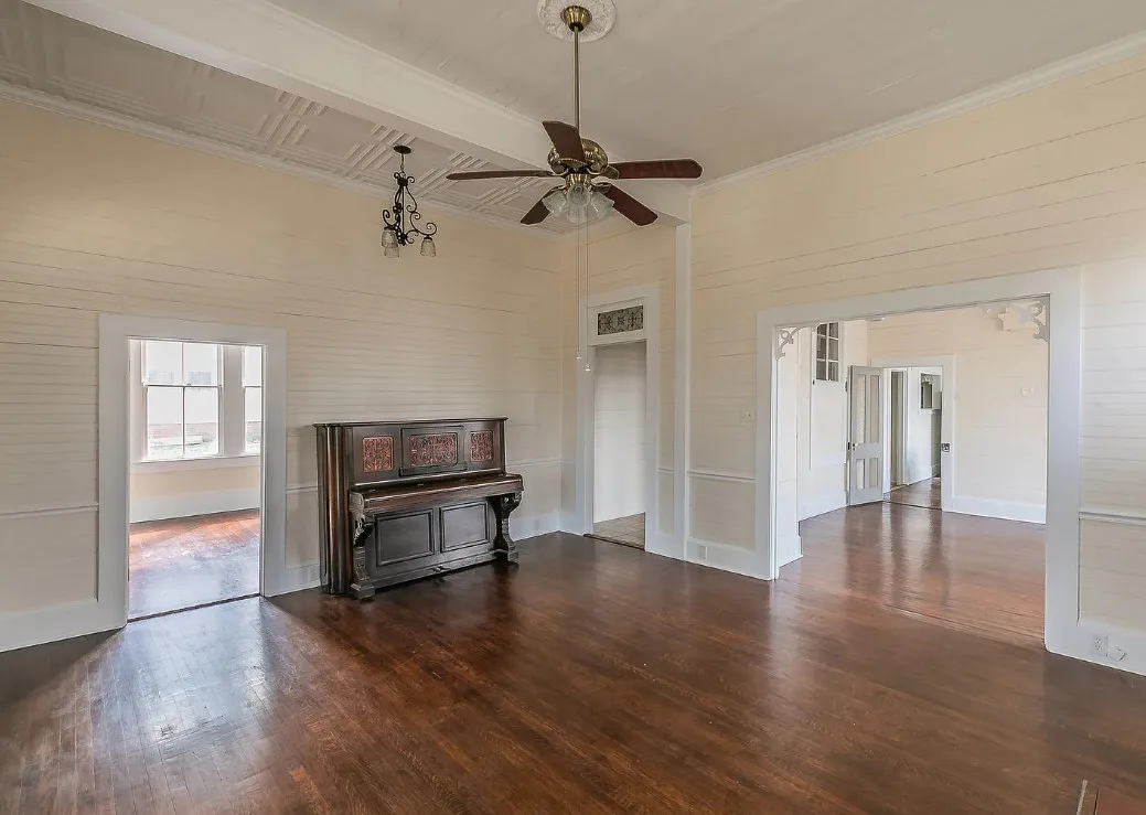 This is a Bank Owned Property being sold AS IS no SDN. Founation Work needed bid available but will not be done .This house was built by John Reagan. He built 3 homes; his own, one for is daughter in 1884 (this home), and one for his son which is directly across the street. This home has a City of Palestine Historical Designation. The half acre lot has a wooden privacy fences and features large trees, a carriage house, and a greenhouse. Updates made 5 years ago are new roof and air conditioner unit (HVAC). Wood fenced back yard. Atmox Moisture Control System installed under house to control humidity. Pier and Beam foundation replaced 6 years ago. The interior was painted in Jan. 2025. This is a wonderful opportunity the experience the charm of historic Palestine.