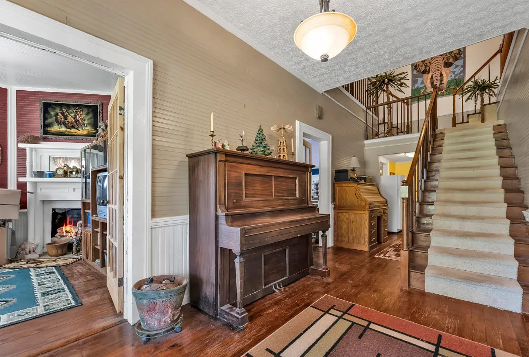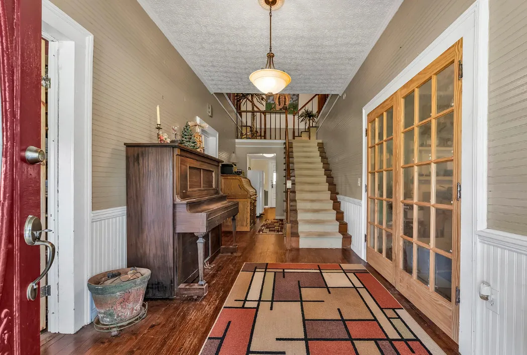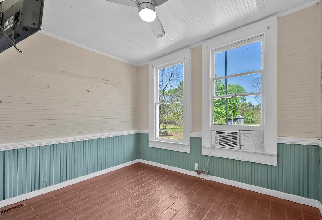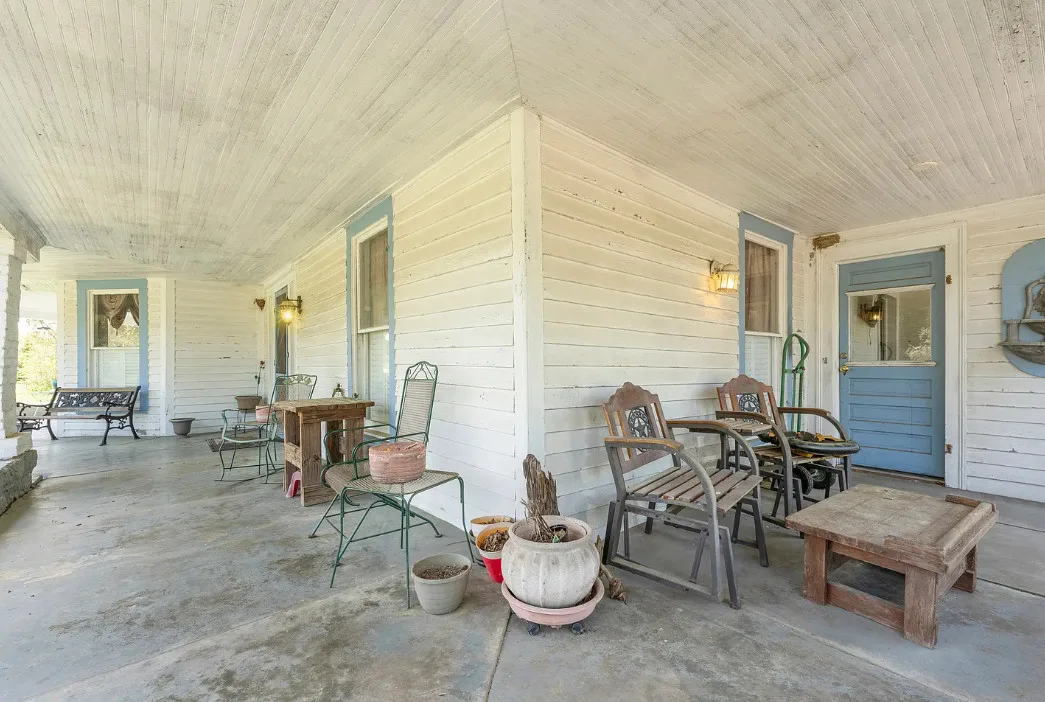 This has a great porch! There are multiple fruit trees on the property! The house was built in 1900. It is located on nine acres in Tignall, Georgia. The house features a large wrap around front porch, wood floors, wainscoting, french doors, bead board, crown moulding, baseboards and claw foot tub. The property has peach trees, pear trees, pecan and walnut trees. Four bedrooms, two bathrooms and 2,861 square feet. $225,000 New price: $219,000