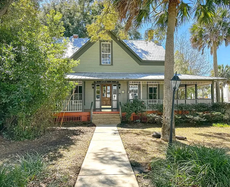 Short term rentals allowed – zoned Mixed Use! This charming Queen Anne home is in a prime Apalachicola location, right at the stop light. Zoned office/residential, can be used as a residence, professional or medical offices, studio/gallery, or bed and breakfast. Built in 1910 with beautiful heart pine and cypress, the detailed trim work evokes craftsmanship of another era. Four fire places (two back to back on each side of the house) for charm and interest and a unique archway between two of the front rooms. There is a full bath on the first floor with walk in tiled shower and utilitarian kitchen room in the back. Two spacious guest bedrooms upstairs, one with en-suite bath, one with vanity and W/C. Sit on the shady front or side porch in a rocker and watch all the world go by! Landscaped yard with some southern favorites; camellias, sagos, azaleas, anise and live oaks. Great location for a business as traffic stops at the light, easy golf cart ride less than a mile to downtown through the quiet neighborhood and four blocks to the Apalachicola Bay!