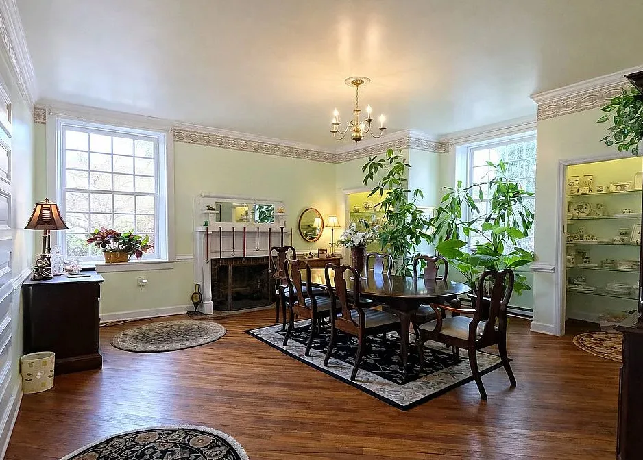 This is a beautifully maintained house! Some select furnishings will convey with the house. Love the interior of that event barn! The house was built in the early 1800’s. It is located on 1.398 acres in Charlotte Court House, Virginia. The house features a beautiful setting, pond with gazebo, event barn, wood floors, leaded glass, crown moulding, wainscoting, chair rails and built-ins. Love the turned staircase. Four bedrooms, three bathrooms and 3,102 square feet. $497,000