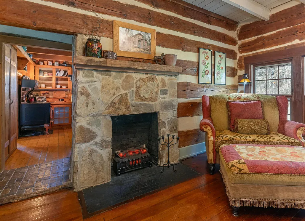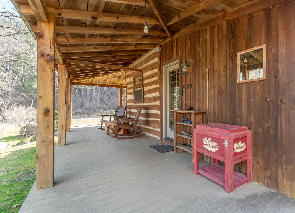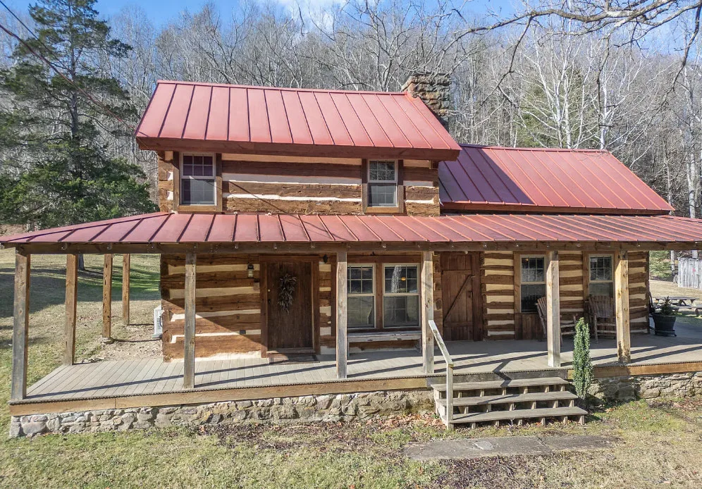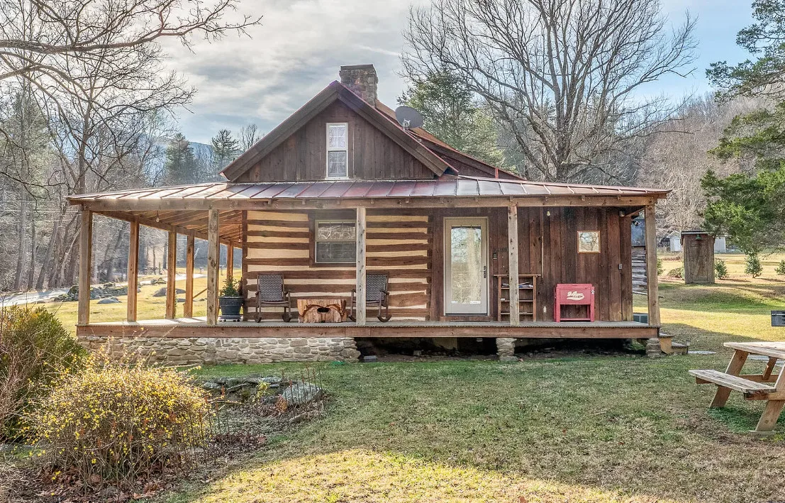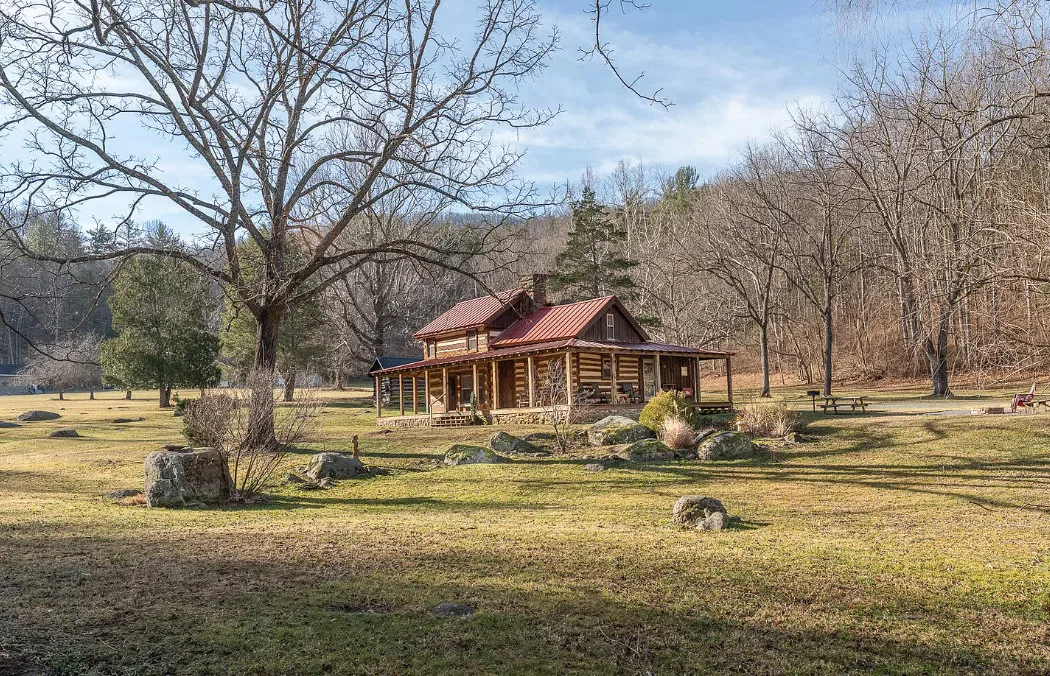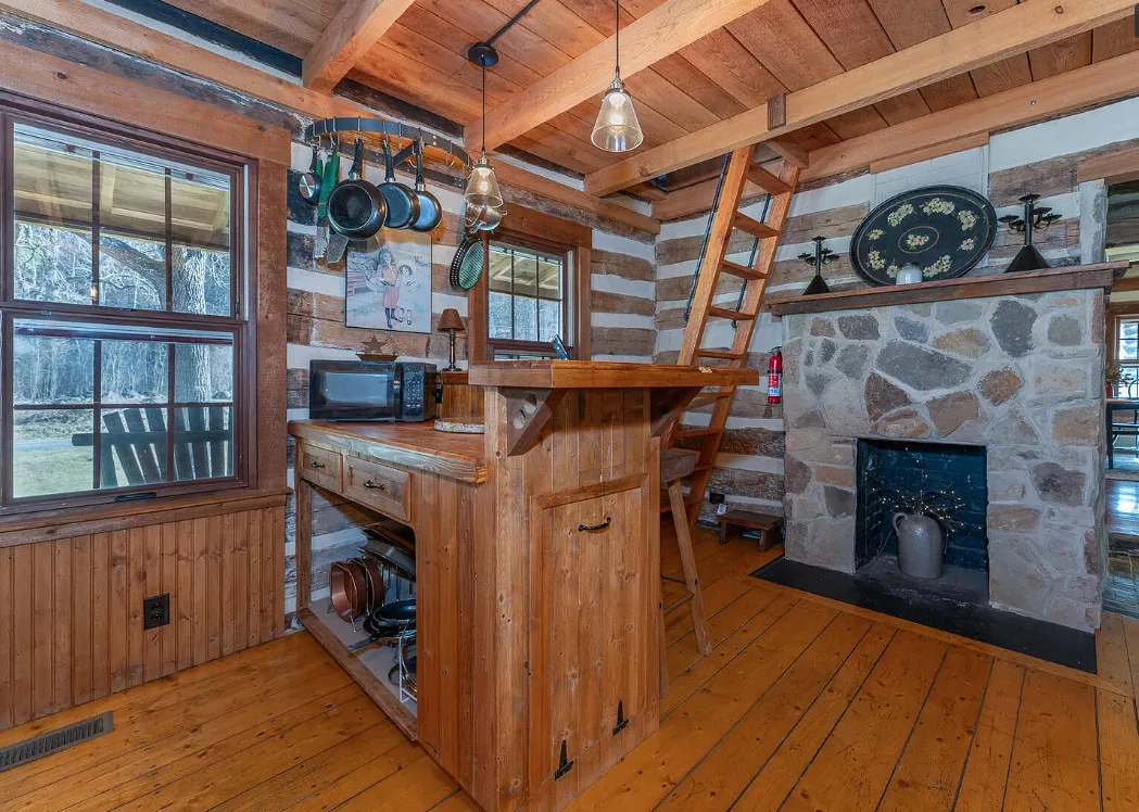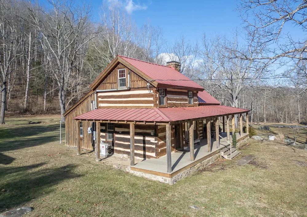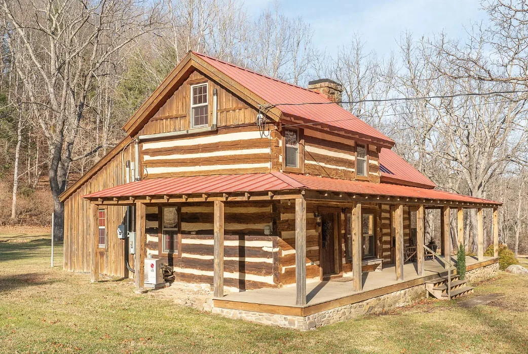I am in love with this house and property! There are eight outbuildings! Love the interior details! The house was built in 1800. It is located on 4.84 acres in Buchanan, Virginia. The house features a large covered front porch, wood floors, log walls, great stove, pretty kitchen sink, loft area, stone fireplaces, beautiful tub and exposed beams. There are nice outbuildings and pretty scenery! Two bedrooms, one bathroom and 1,553 square feet. $489,000