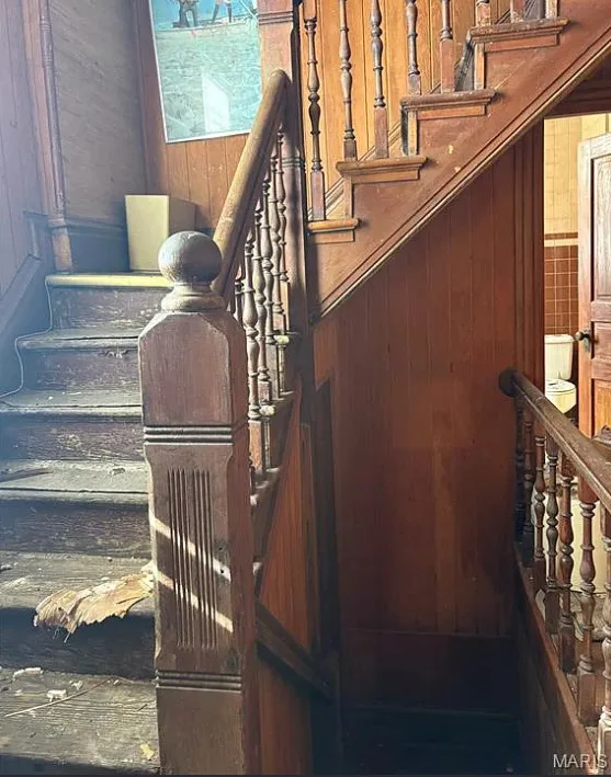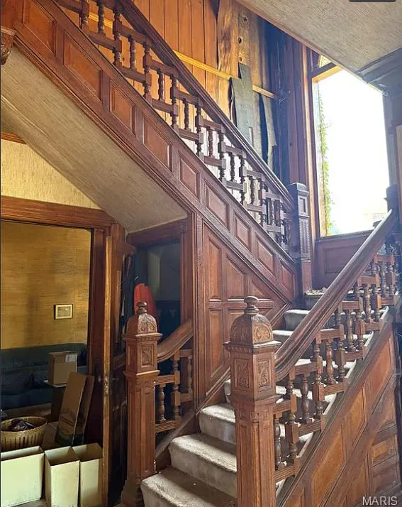 This is a big house with 5,000 square feet! The pictures sure aren’t the best. The house was built in 1892. It is located in St. Louis, Missouri. The house features a covered front porch, grand staircase, back staircase, wood floors, tall ceilings, crown moulding, baseboards and vintage light fixtures. 5,094 square feet. $85,000