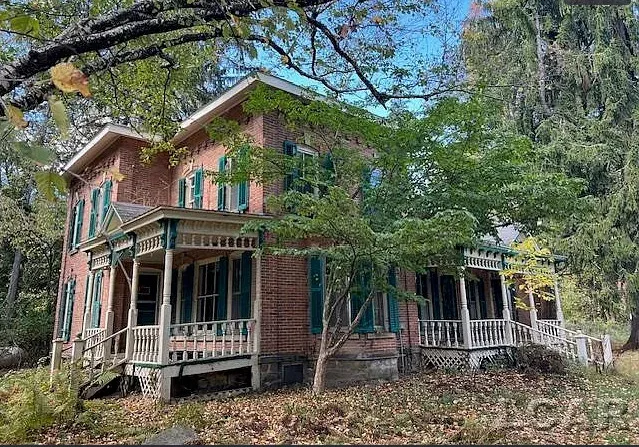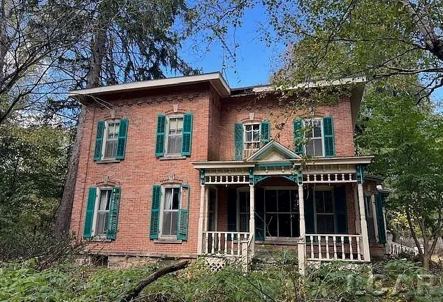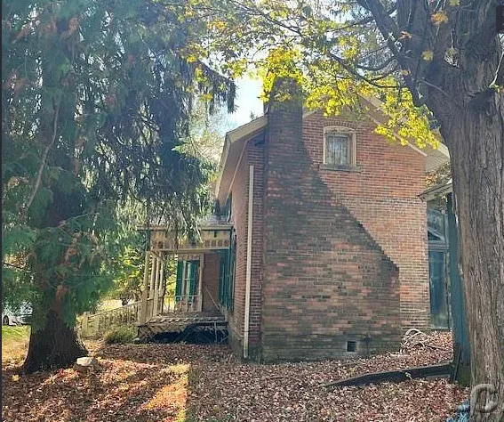 So much potential in this brick farmhouse on 6.5 acres of wooded land. This home has a lot of original features but is in need of TLC. Large rooms. Walk in Pantry. Large family room with wood burner. 4 Car detached pole barn.