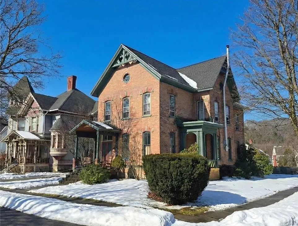 Classic Brick Victorian Italianate in the Heart of Downtown Norwich. This beautifully preserved 4-bedroom, two full and one-half bath Brick Victorian Italianate is ideally located within walking distance to all the shops, dining, and amenities of downtown Norwich. Rich in character and thoughtfully updated, this home blends historic charm with modern convenience. Please refer to the attached 3D tour, or copy the link below to your browser: https://bit.ly/Tour15GuernseyStHere . The interior showcases stunning period features, including original hardwood floors, exquisite woodwork, built-in bookshelves with leaded glass doors, a dramatic curved main stairwell, and a secondary back stairwell. The first floor offers exceptional flow, beginning with a gracious entry hall leading to a spacious living room and an elegant formal dining room—both highlighting classic Victorian details. A cozy sitting room features a wood-burning fireplace and built-in shelving, while the modern kitchen with stainless steel appliances opens seamlessly to a den/office/playroom. A large, sun-filled tile-floored sunroom provides additional flexible living space, and a convenient half bath completes the main level. Upstairs, the second floor offers four generously sized bedrooms and two full baths. The smallest bedroom is currently used as a sewing/craft room and would also make an ideal home office. A full walk-up attic presents exciting potential for future finished space or abundant storage. Recent improvements include 200-amp electrical service, a new Lennox natural gas furnace, and upgrades to the exterior side porch. Outside, enjoy excellent curb appeal, a fenced backyard perfect for children and pets, and a detached two-bay garage. A rare opportunity to own a truly special historic home with modern updates in one of Norwich’s most desirable walkable locations.
