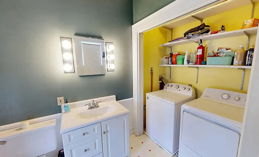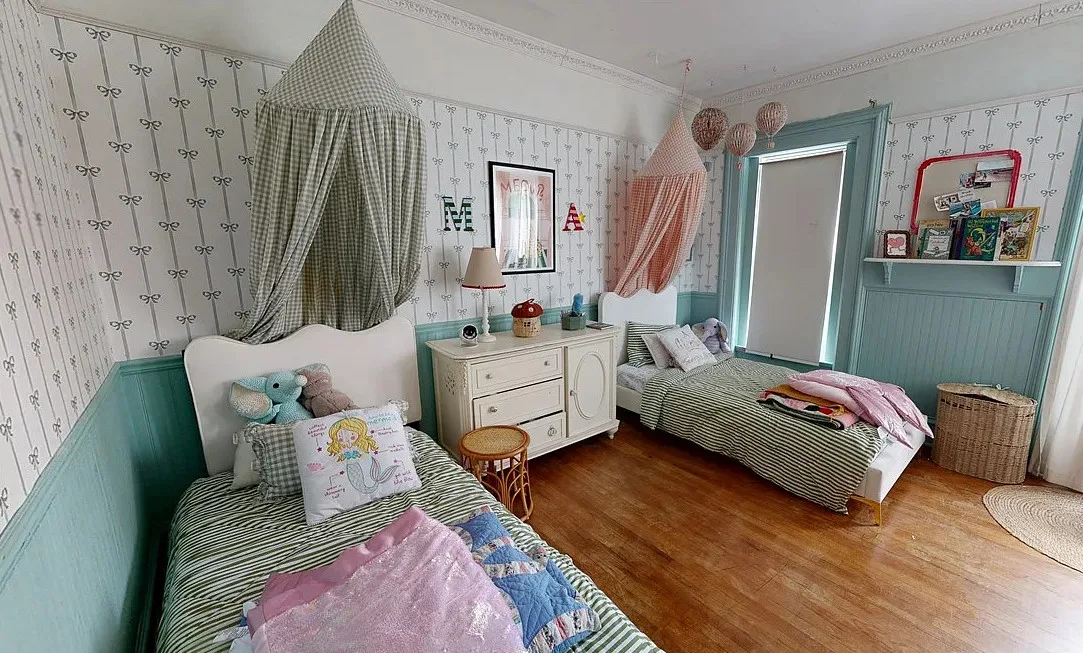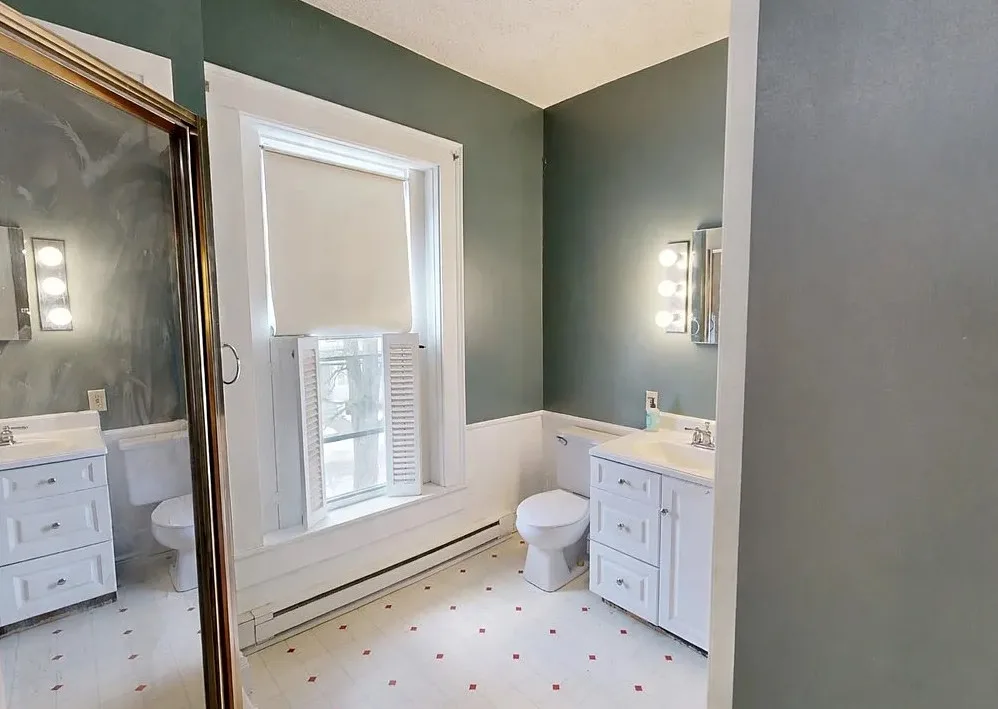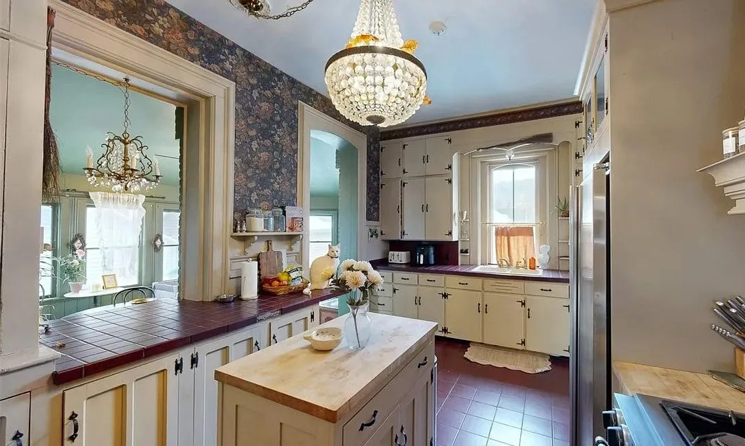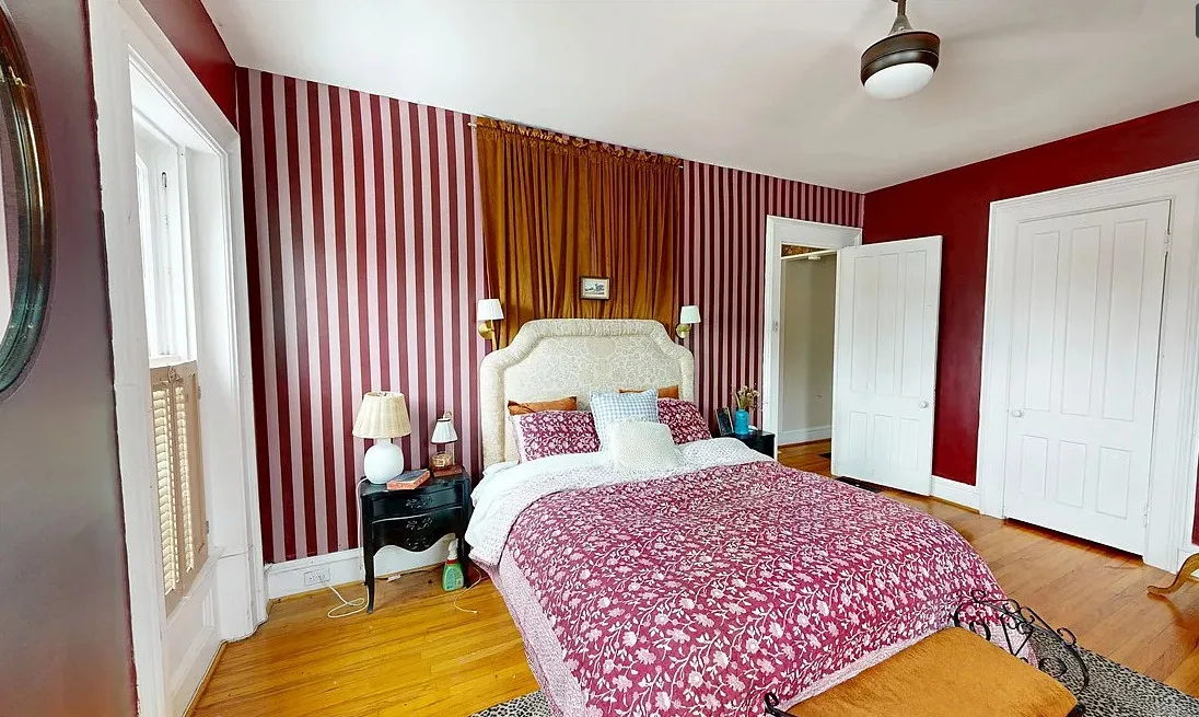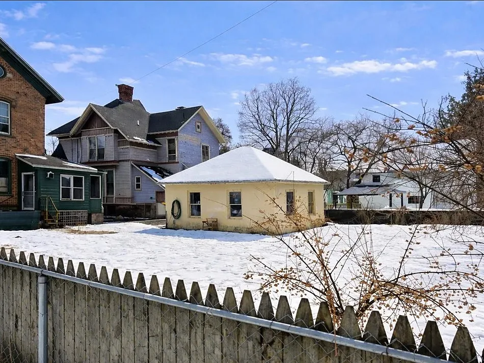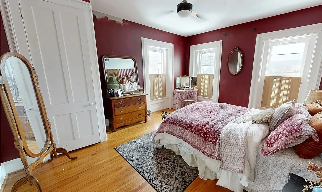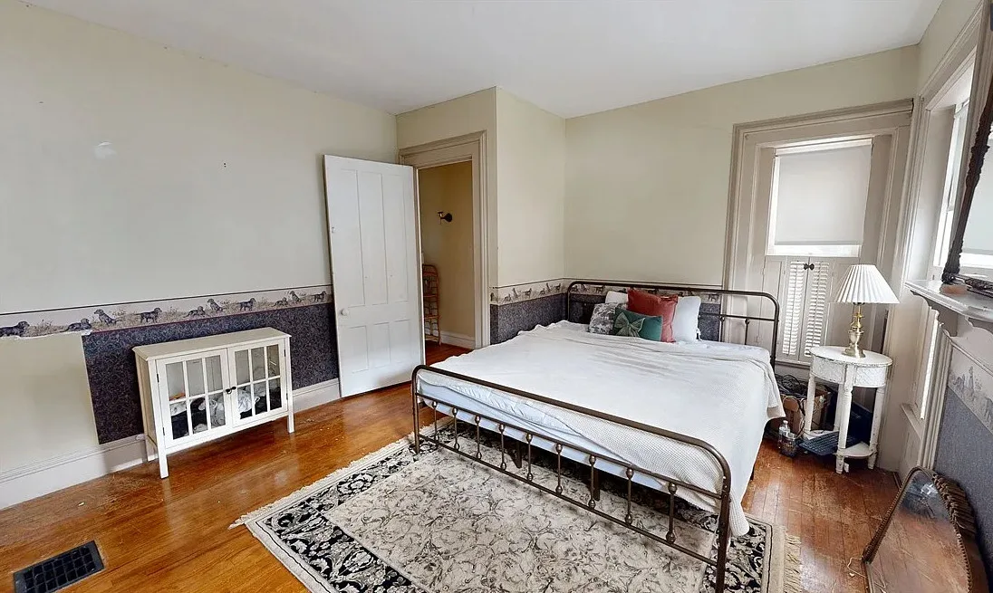 This house has a pretty interior! I love that staircase and there are a lot of nice details. The house was built in 1900. It is located on .25 acre in Norwich, New York. The house features two small covered porches, wood floors, pretty staircase, crown moulding, ceiling medallions, built-ins, french doors, beautiful built-in china cabinet and wainscoting. There is a large attic for storage. The backyard is fenced and there is a detached garage. Four bedrooms, three bathrooms and 2,898 square feet. $249,900