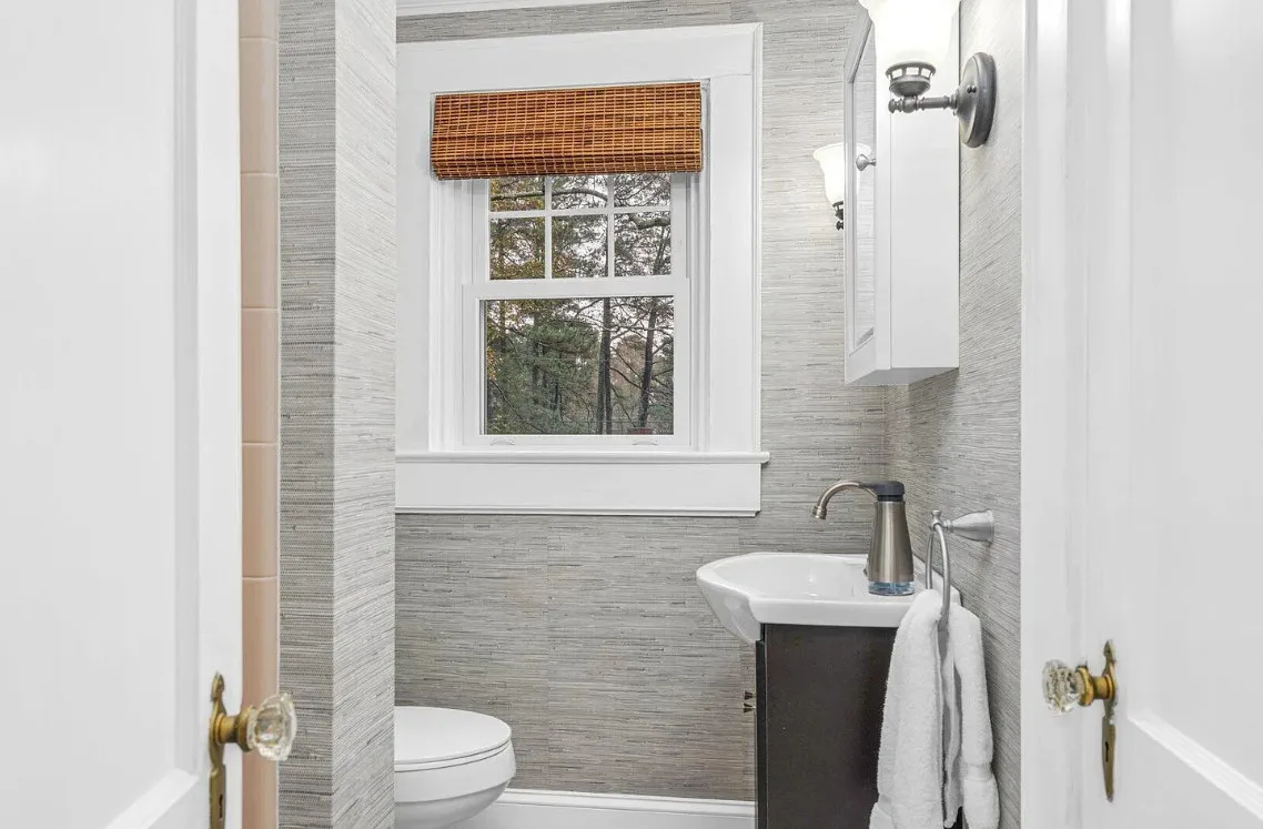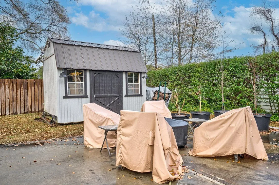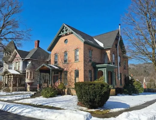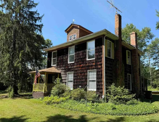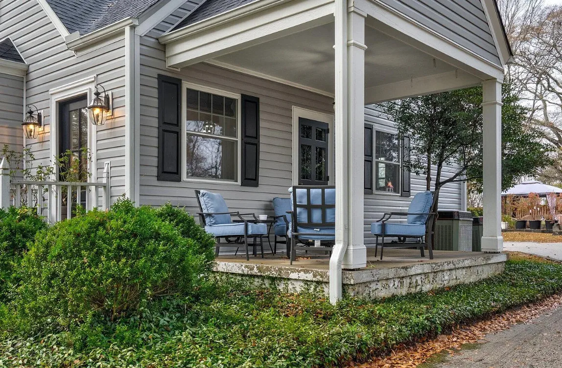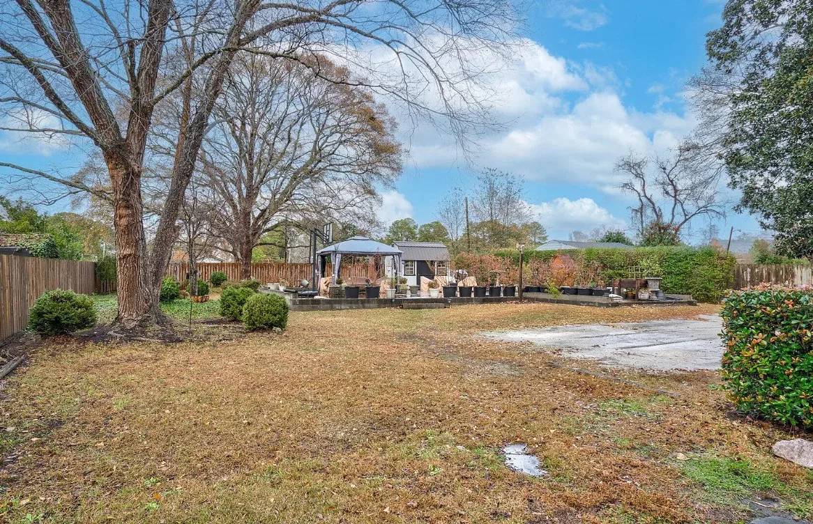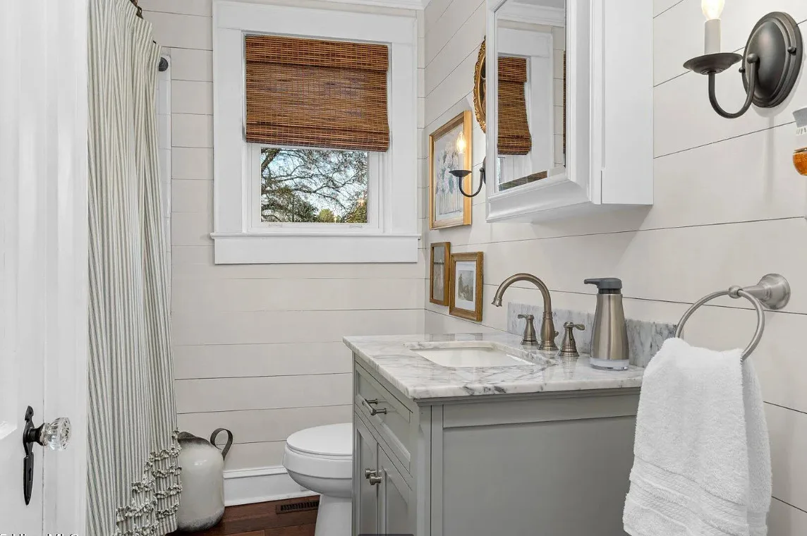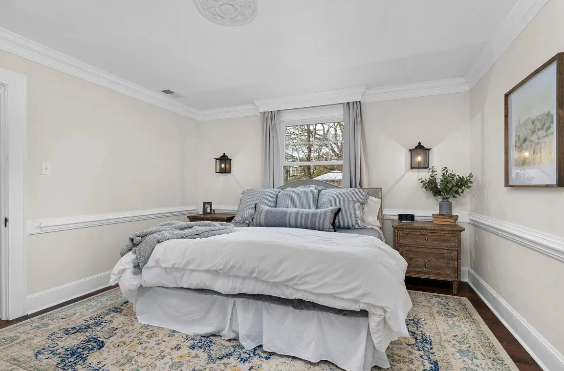 This house has a pretty interior! The home was built in 1948. It is located on .38 acre in Enfield, North Carolina. The house features a covered side porch, chair rails, crown moulding, paneled wainscoting, crystal chandelier, updated kitchen, coffered ceiling, built-in bookshelves, bead board and a brick fireplace. There is a fenced in backyard with a patio area and a detached storage shed. Four bedrooms, two bathrooms and 2,294 square feet. $278,000