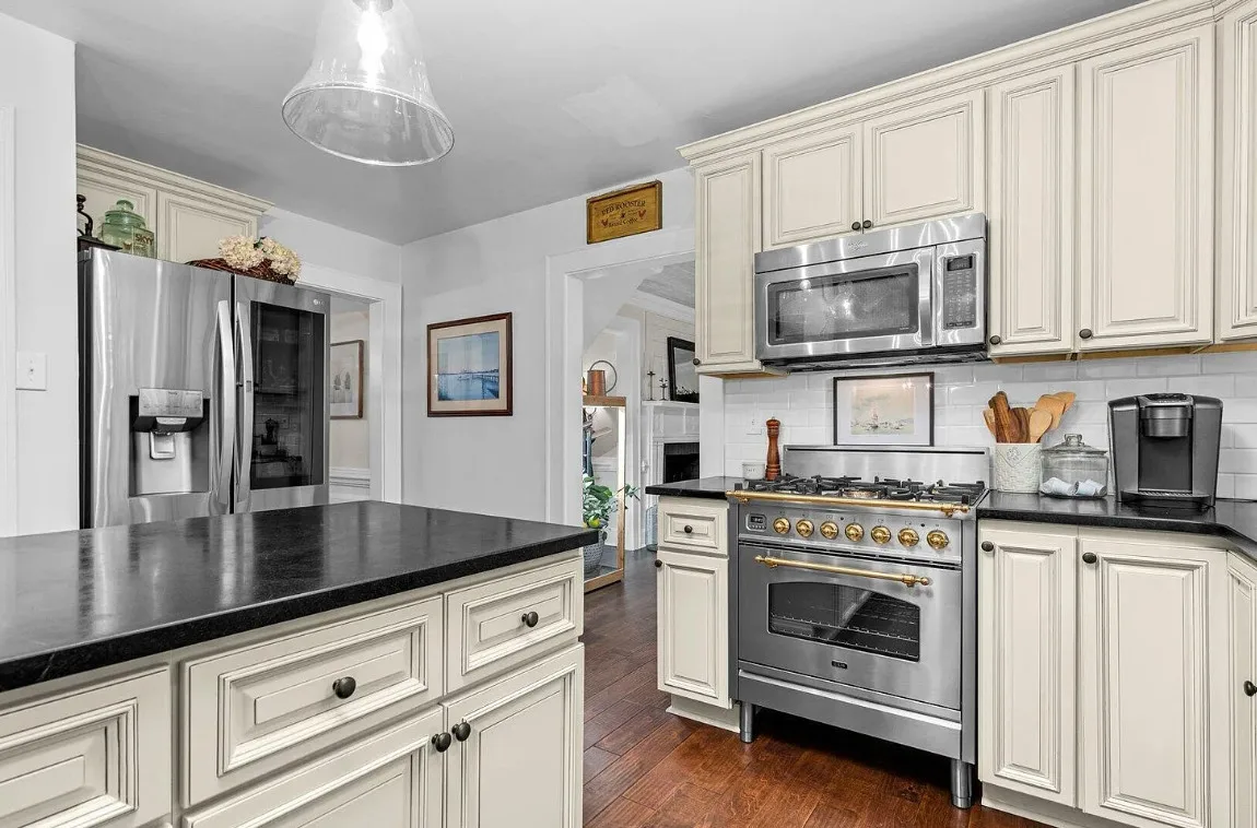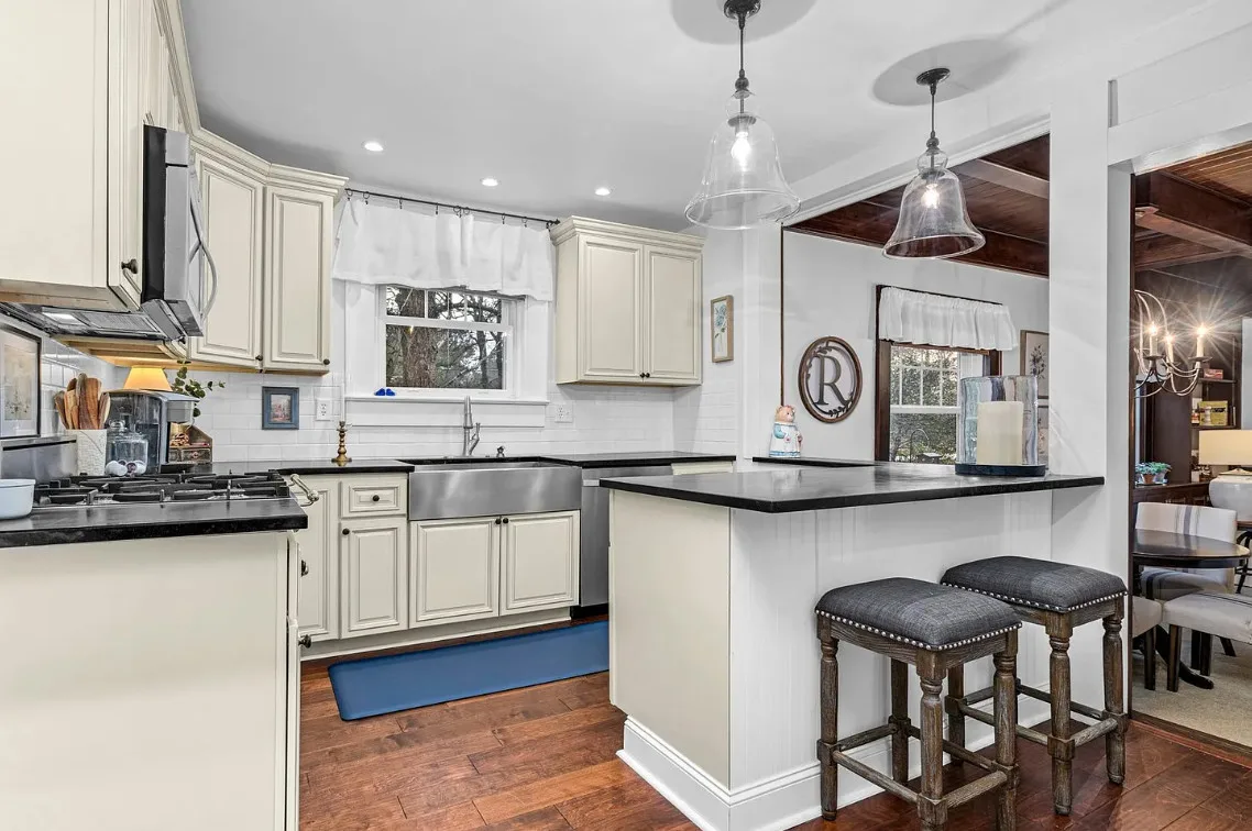 New Year, New Home! Welcome to this picture-perfect home tucked along a quiet street in the heart of Enfield — light, bright, and instantly inviting. The kitchen sets the tone with high-end stainless appliances, soapstone countertops, apron-front farmhouse sink, tile backsplash, new cabinetry, and a true pantry. It’s a warm, functional space that feels both timeless and fresh. The first-floor bedroom offers comfort and convenience. Upstairs, you’ll find three additional bedrooms—one of which makes a fantastic bonus room, playroom, or flex space. Select rooms feature beautiful tongue-and-groove ceilings, adding charm without overwhelming the home’s clean, updated feel. Gathering spaces include a formal dining room with picture-frame molding and a large family room with built-ins, a wood-burning fireplace, and a striking 10′ coffered ceiling. A dedicated office with great storage gives you even more versatility. Throughout the home, you’ll appreciate engineered hardwood floors, neutral paint colors, tasteful blinds and curtains, recessed lighting, stylish fixtures, and lovely molding—plus a true laundry room and an abundance of natural light. Step outside to a private-feeling backyard framed by mature landscaping, privacy fence, a stone walkway, charming side porch, private deck, and a gazebo perfect for relaxing or entertaining. Major improvements include new vinyl siding, shutters, gutters, and windows. A lovely home in a charming town — welcoming, updated, and ready for its next chapter. Come see for yourself just how special this Enfield gem truly is.
