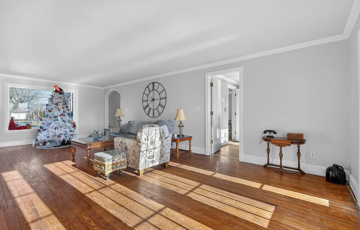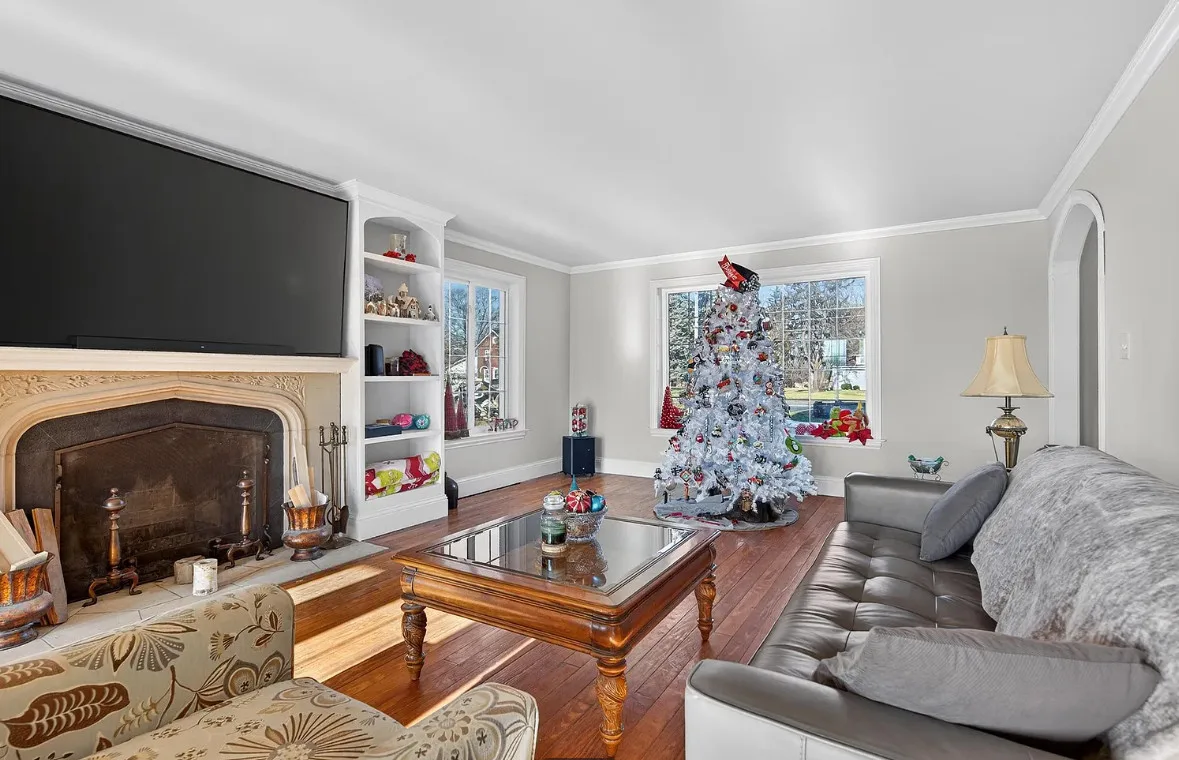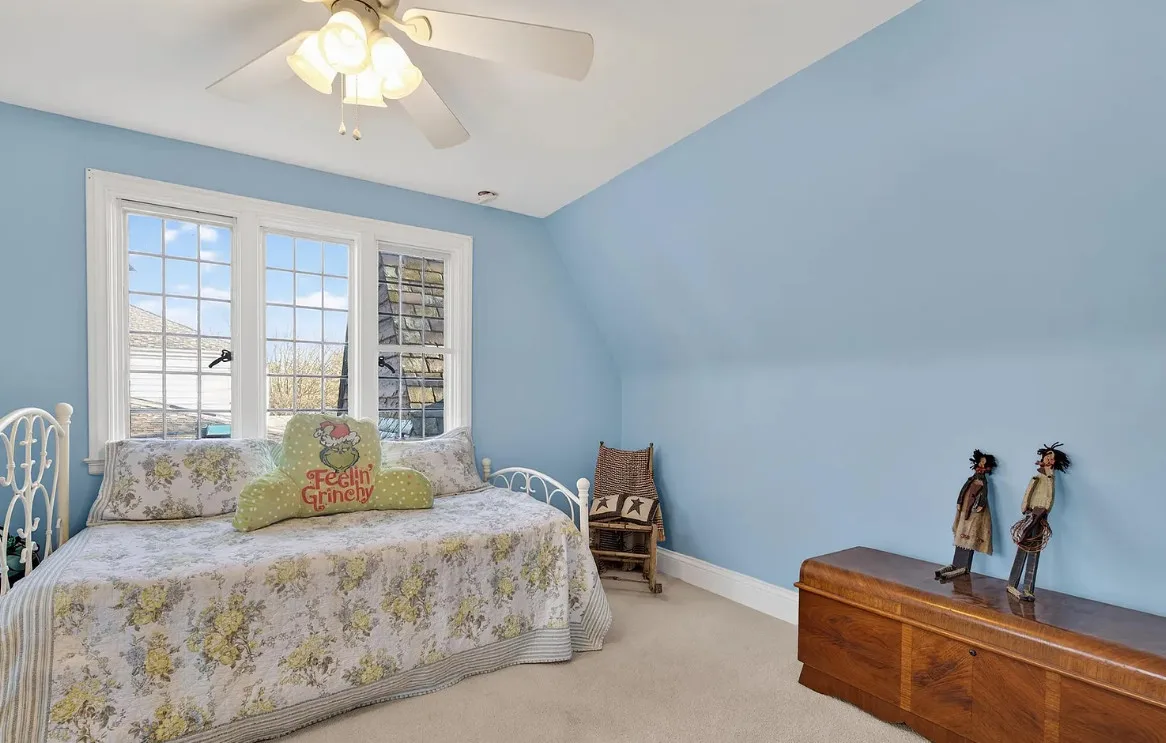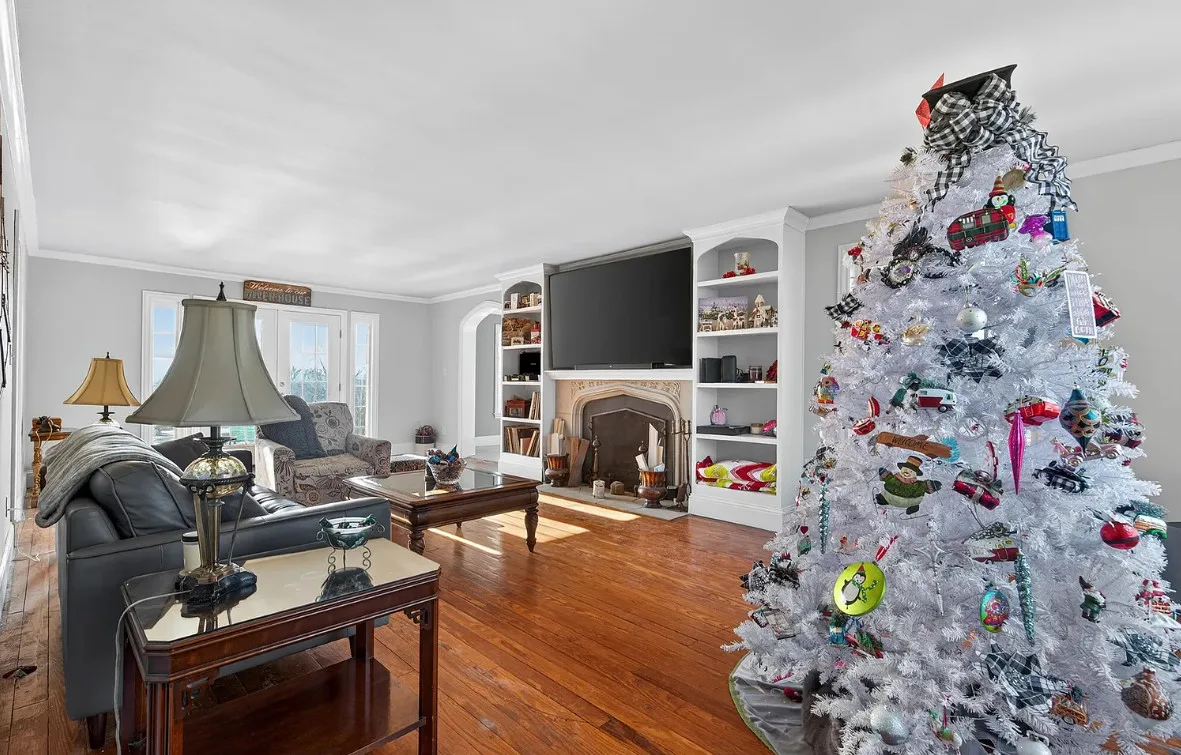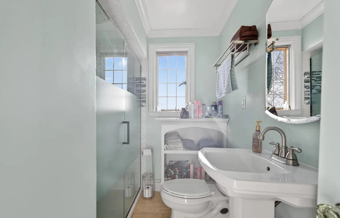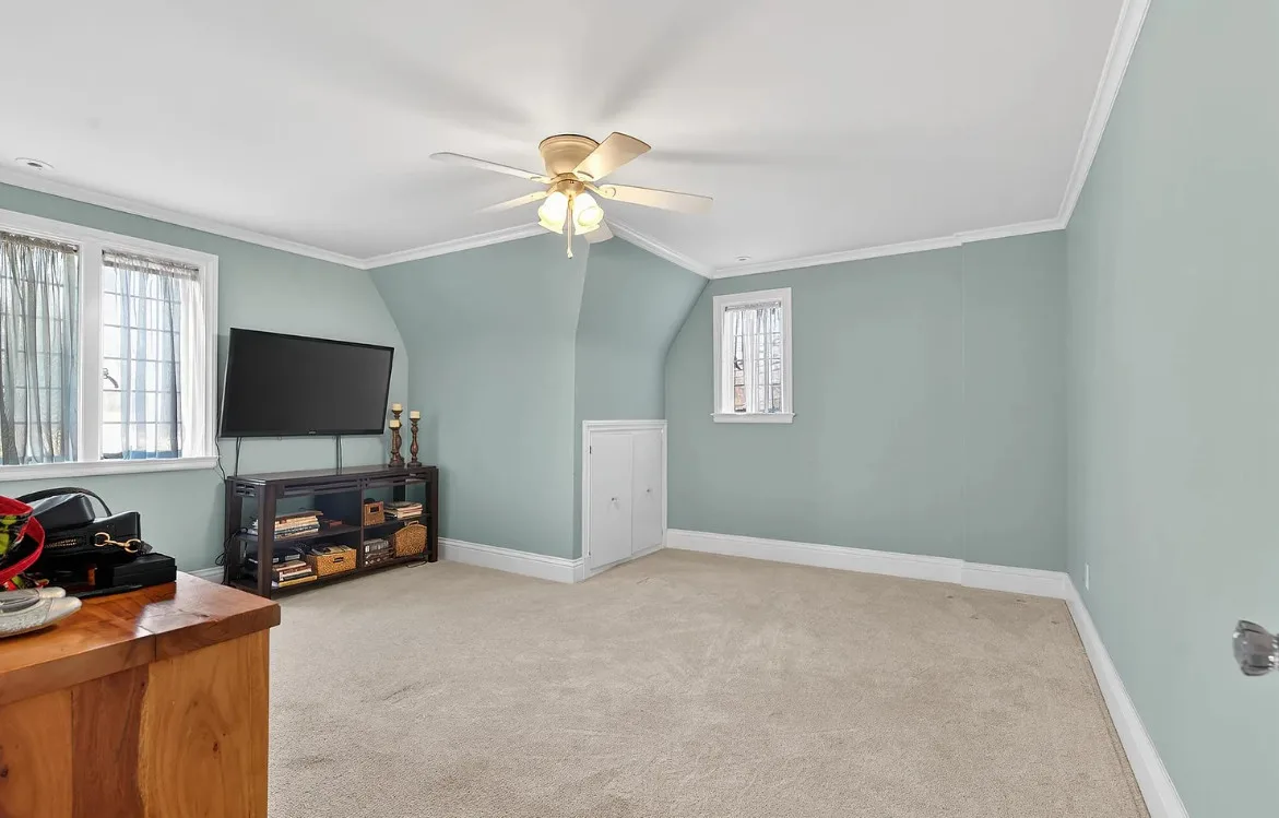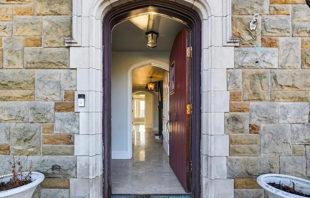 I want that kitchen sink! Curious what is going on with the backyard. I am suspecting that river can be an issue. The house was built in 1930. It is located on .77 acres in Fremont, Ohio. The house features wood floors, built-in bookshelves, a lot of natural light, pretty sunroom, crown moulding, large fireplace, arched entryway, large back patio, finished basement and a back upper porch. A lot of work has been done on this house. Construction supplies will convey. Three bedrooms, three bathrooms and 3,149 square feet. $347,500