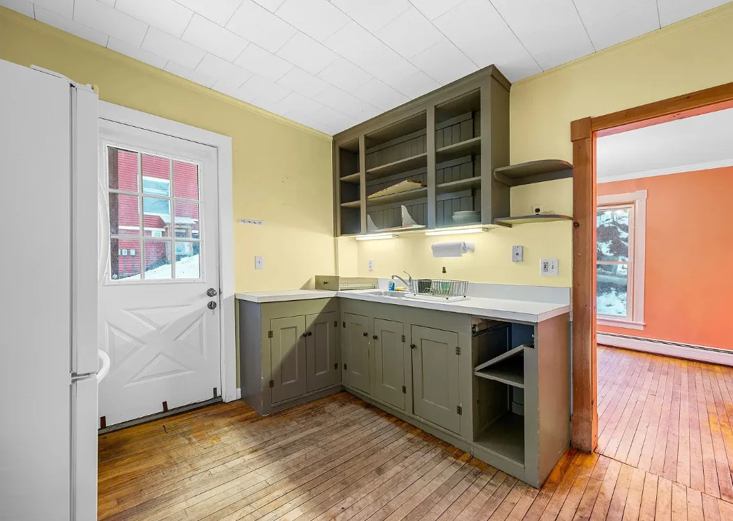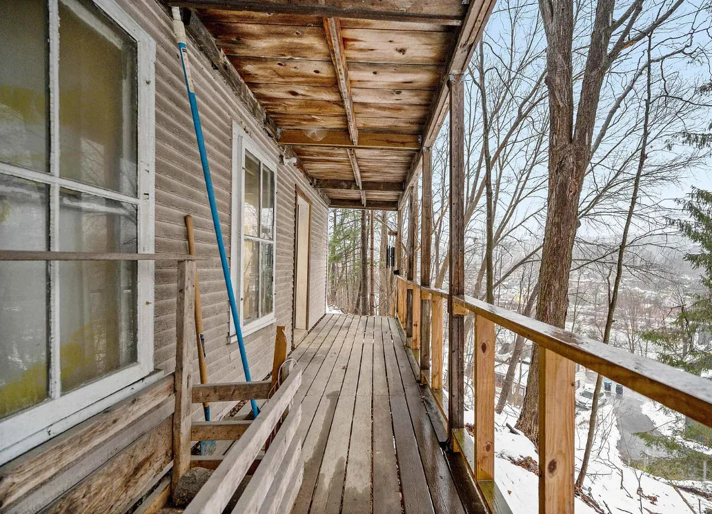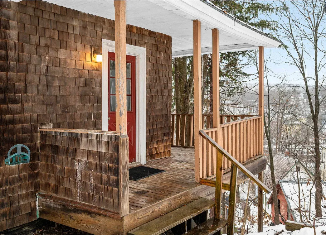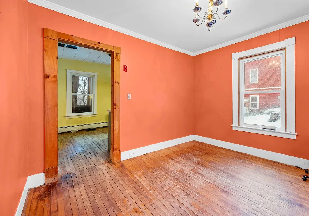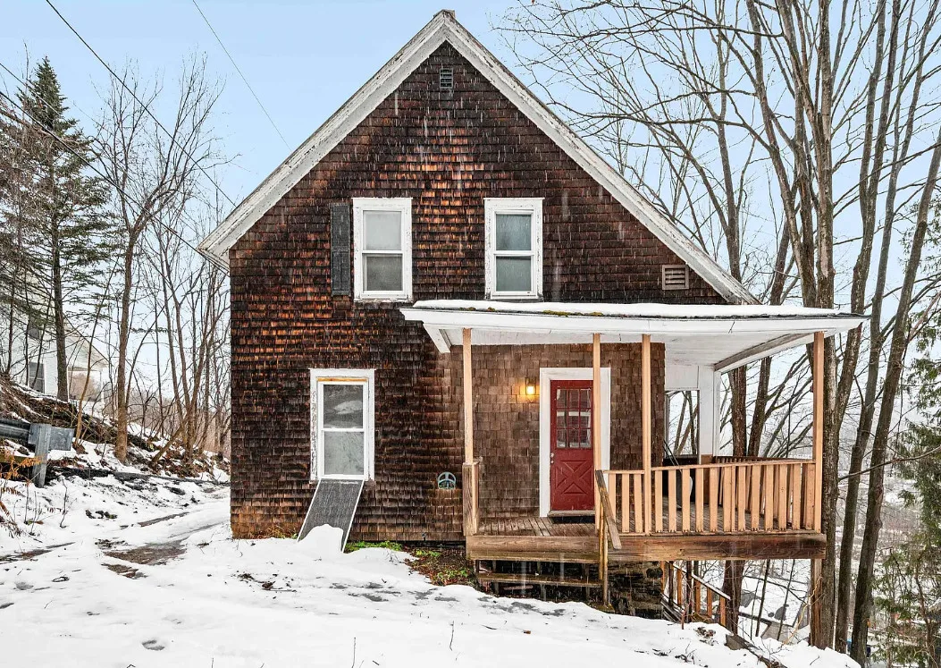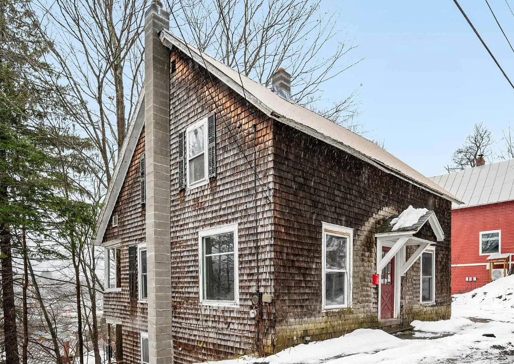 This is a sweet house overlooking the town! Could easily live there and work room by room. The house was built in 1910. It is located in Montpelier, Vermont. The house features double back porches, wood floors, crown moulding, baseboards and a basement. Three bedrooms, one bathroom and 1,112 square feet. $249,500