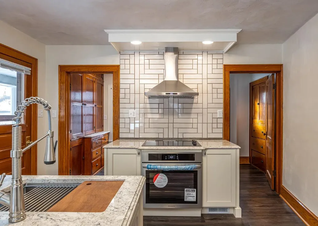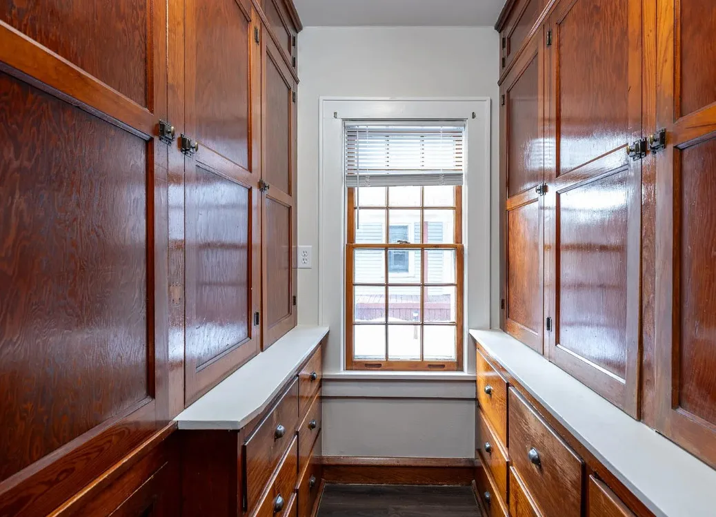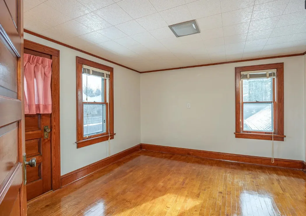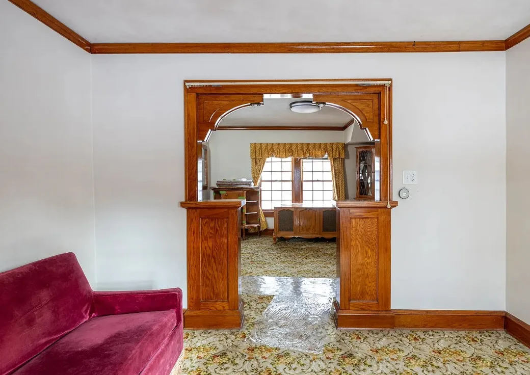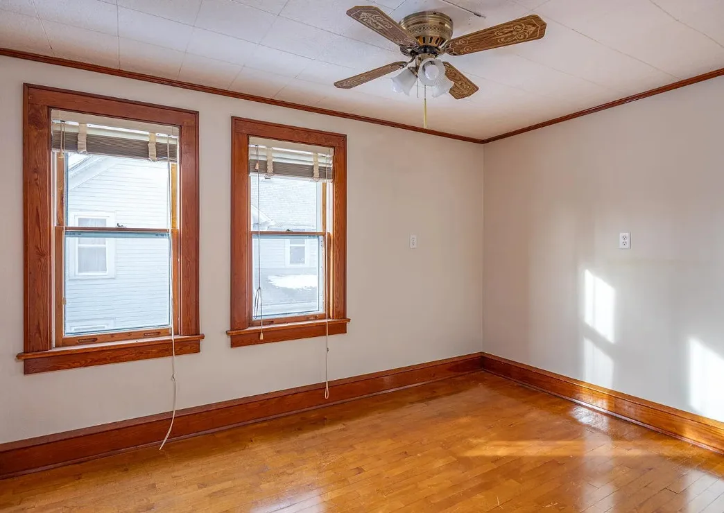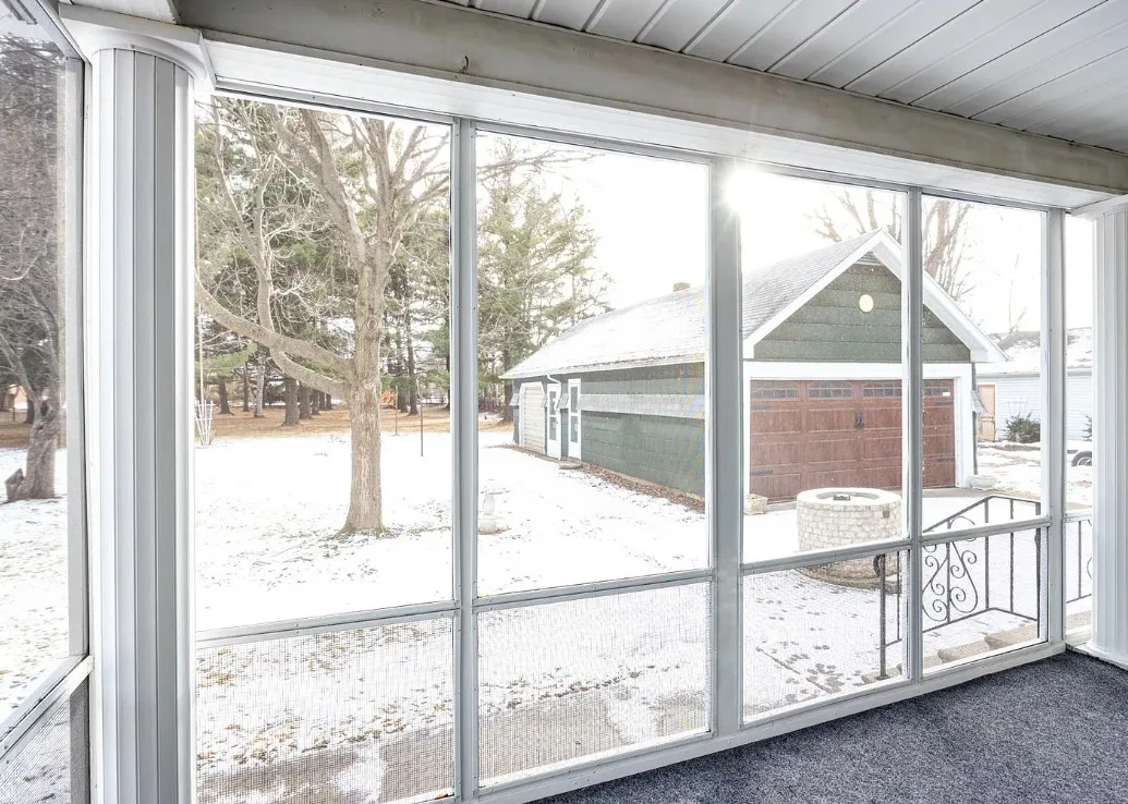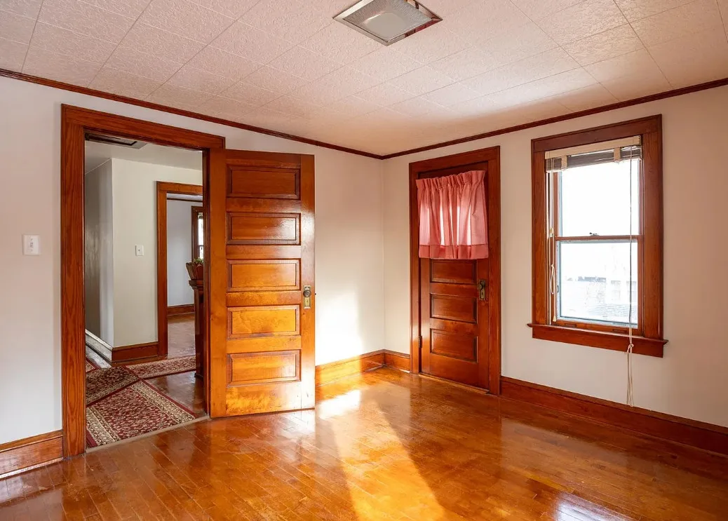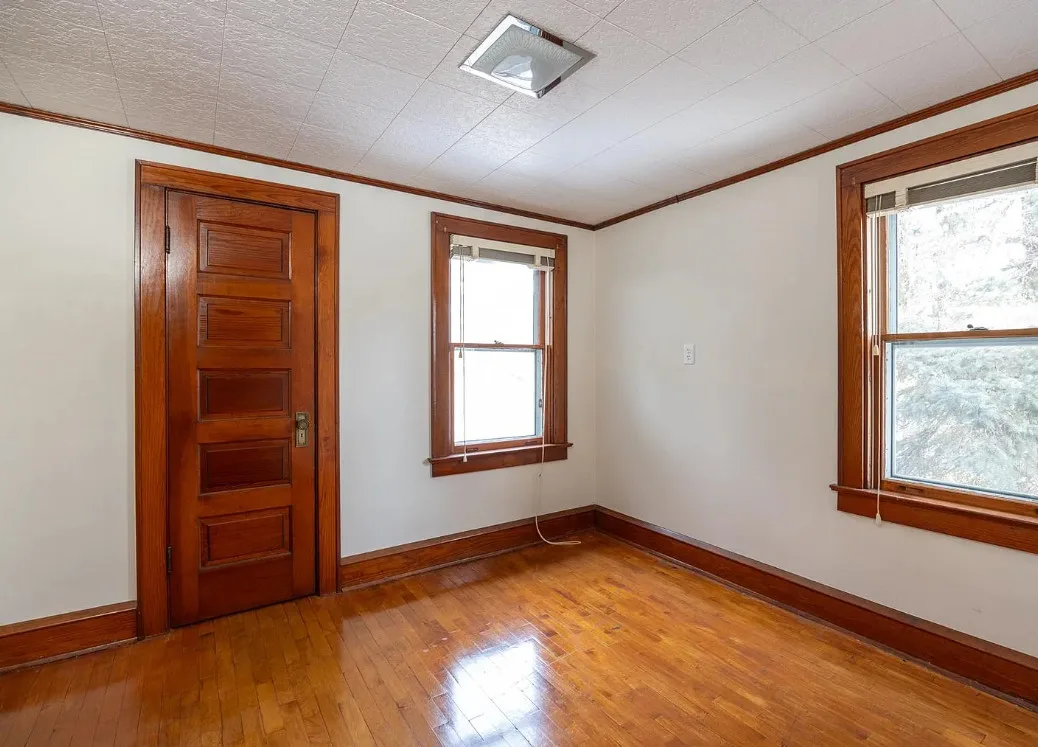 This house has a unique porch! The interior is nice! The house was built in 1900. It is located on .84 acre in Appleton, Wisconsin. The house features an enclosed wrap around front porch, butler’s pantry, crown moulding, wood floors, baseboards, updated kitchen and built-ins. The house has a basement, large backyard and a detached garage. Four bedrooms, two bathrooms and 1,864 square feet. $319,900