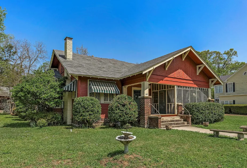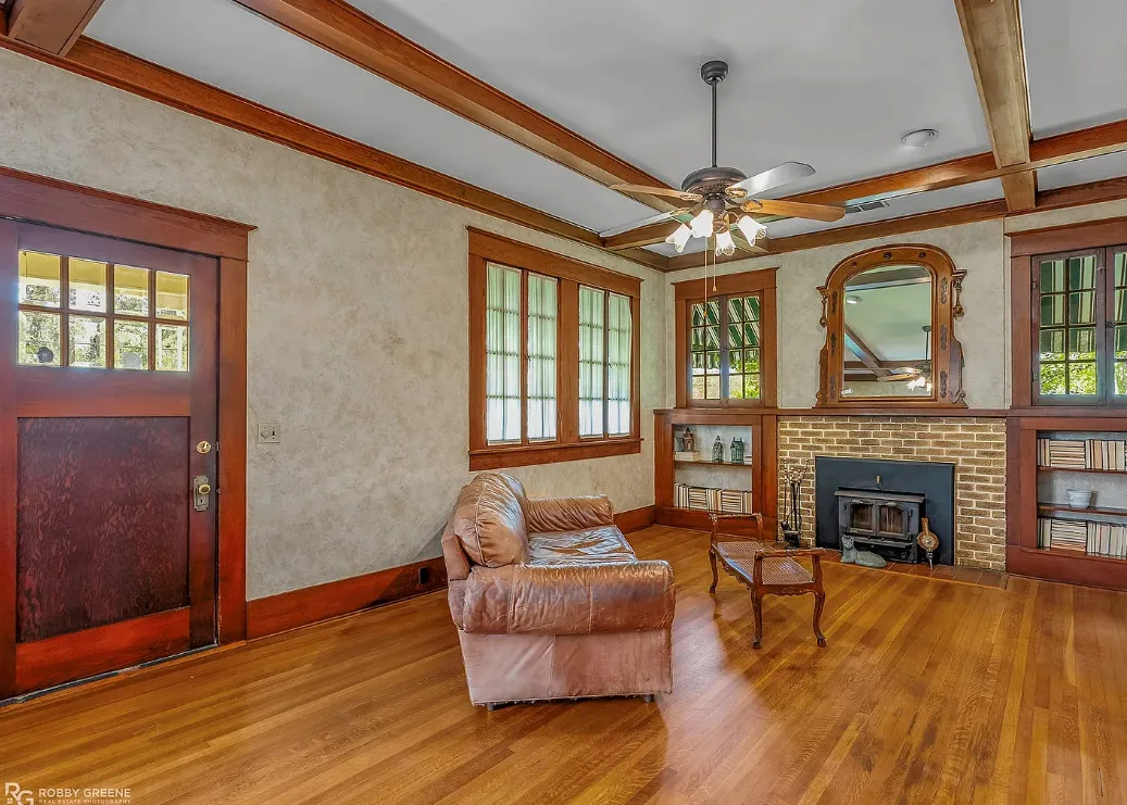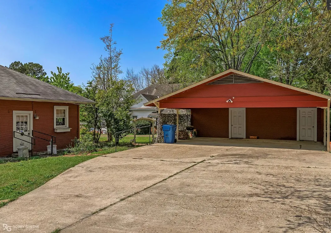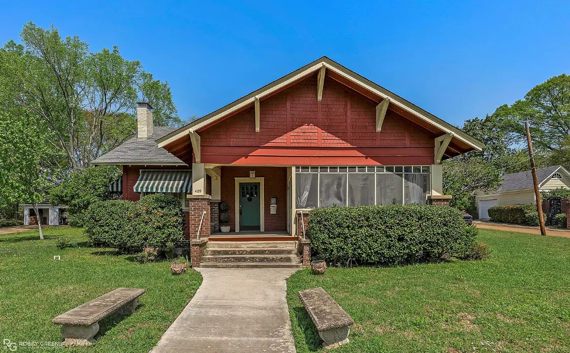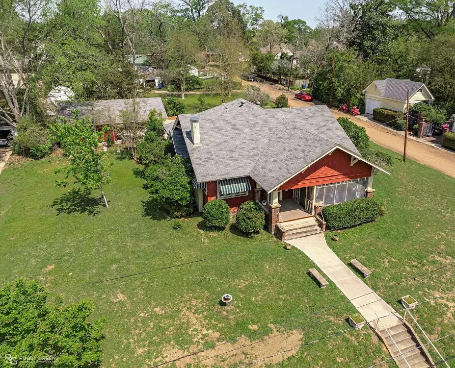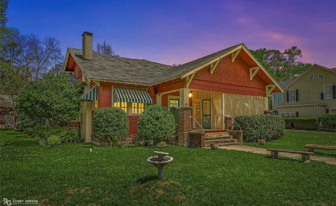 Step into timeless charm with this captivating 1918 Sears Craftsman Style Bungalow, nestled on a spacious corner lot in Minden’s Residential Historic District. From the moment you arrive, the welcoming covered front porch—with its classic square columns and brick accents—sets the tone for the character and craftsmanship found throughout this beautiful home. Inside, you’ll discover original hardwood floors, a cozy wood-burning fireplace, custom built-ins, and 10-foot beamed ceilings that elevate the spacious living room. The formal dining room offers warmth and charm with a picturesque bay window, wood wainscoting, and more of those stunning beamed ceilings, making it the perfect space for gatherings and special meals. Offering 3 generously sized bedrooms and 2 full bathrooms, the home includes ample closet space and thoughtful storage throughout. The inviting kitchen is filled with natural light, creating a bright and cheerful space for meal prep and morning coffee. Unwind after a long day on the oversized screened-in front porch—ideal for relaxing or entertaining guests. A large laundry room with custom cabinetry adds even more function and convenience. Just off the carport, a 30×18 wired and plumbed unfinished shop or bonus room offers endless potential—perfect for a studio, guest suite, or home office. Academy park complete with tennis courts is only a block away. You’ll also enjoy being within walking distance to downtown Minden where you will find coffee shops, restaurants, boutiques & even an ice cream parlor! This custom-built Craftsman is a rare find with rich historic detail and modern comforts. Don’t miss your chance to own a piece of Minden’s history!