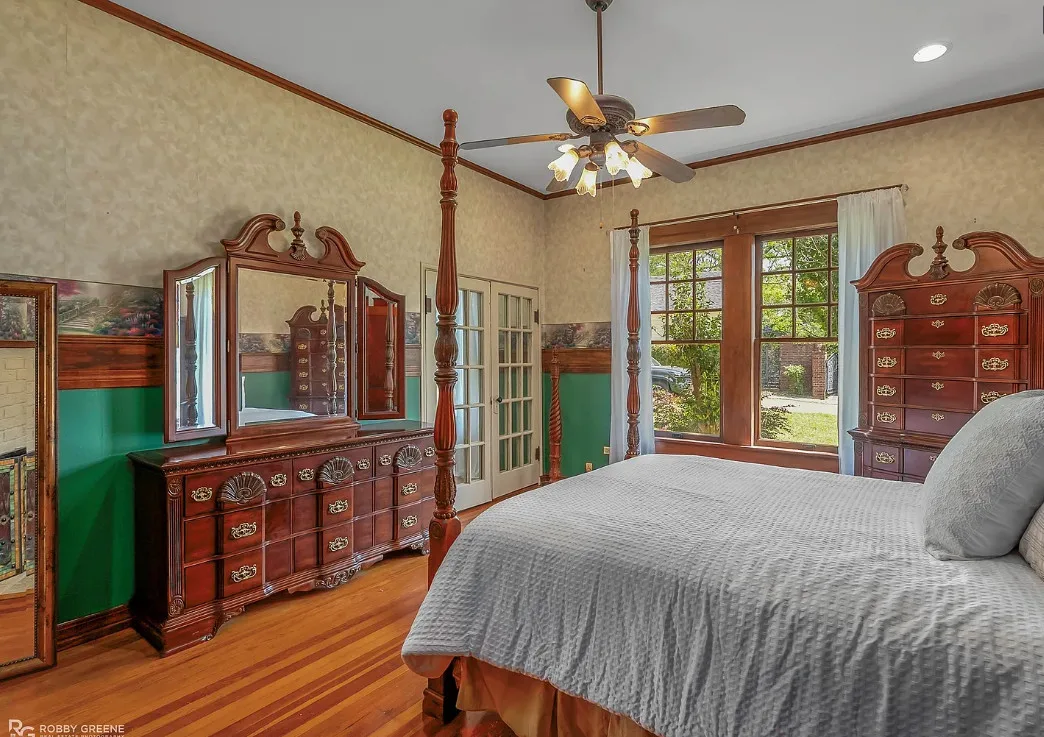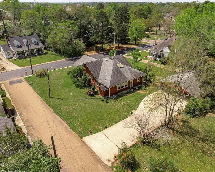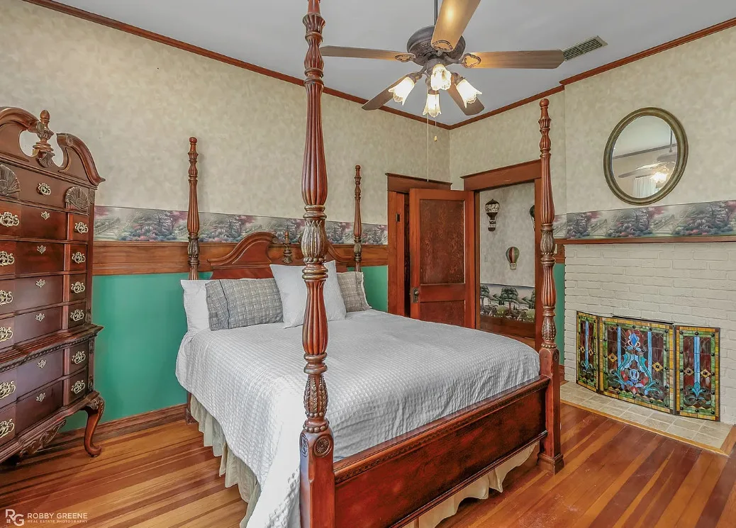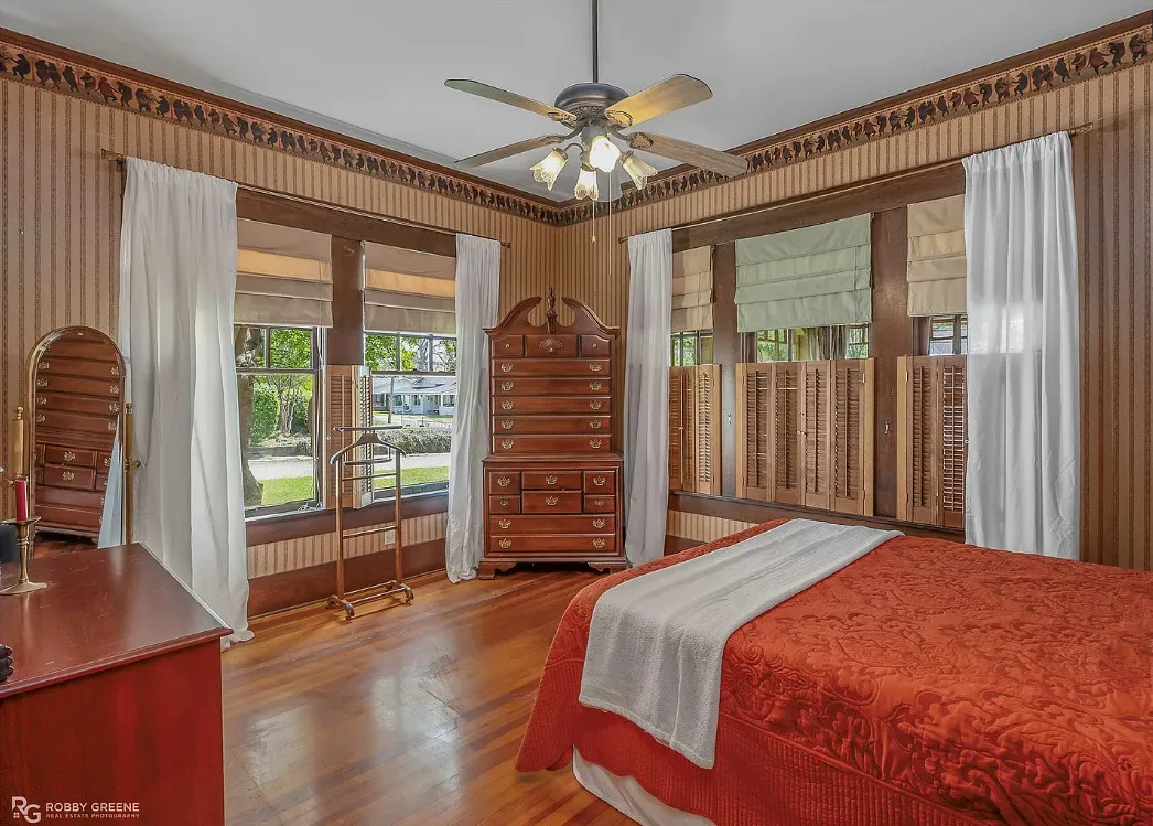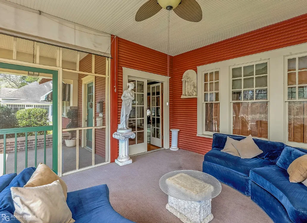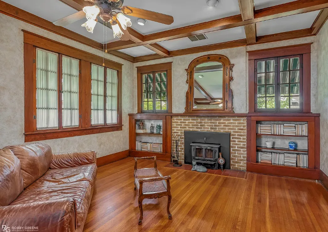 Step into timeless charm with this captivating 1918 Sears Craftsman Style Bungalow, nestled on a spacious corner lot in Minden’s Residential Historic District. From the moment you arrive, the welcoming covered front porch—with its classic square columns and brick accents—sets the tone for the character and craftsmanship found throughout this beautiful home. Inside, you’ll discover original hardwood floors, a cozy wood-burning fireplace, custom built-ins, and 10-foot beamed ceilings that elevate the spacious living room. The formal dining room offers warmth and charm with a picturesque bay window, wood wainscoting, and more of those stunning beamed ceilings, making it the perfect space for gatherings and special meals. Offering 3 generously sized bedrooms and 2 full bathrooms, the home includes ample closet space and thoughtful storage throughout. The inviting kitchen is filled with natural light, creating a bright and cheerful space for meal prep and morning coffee. Unwind after a long day on the oversized screened-in front porch—ideal for relaxing or entertaining guests. A large laundry room with custom cabinetry adds even more function and convenience. Just off the carport, a 30×18 wired and plumbed unfinished shop or bonus room offers endless potential—perfect for a studio, guest suite, or home office. Academy park complete with tennis courts is only a block away. You’ll also enjoy being within walking distance to downtown Minden where you will find coffee shops, restaurants, boutiques & even an ice cream parlor! This custom-built Craftsman is a rare find with rich historic detail and modern comforts. Don’t miss your chance to own a piece of Minden’s history!