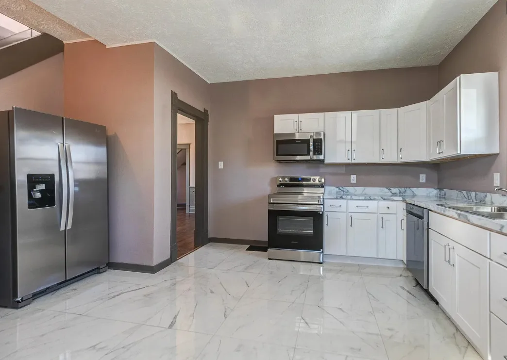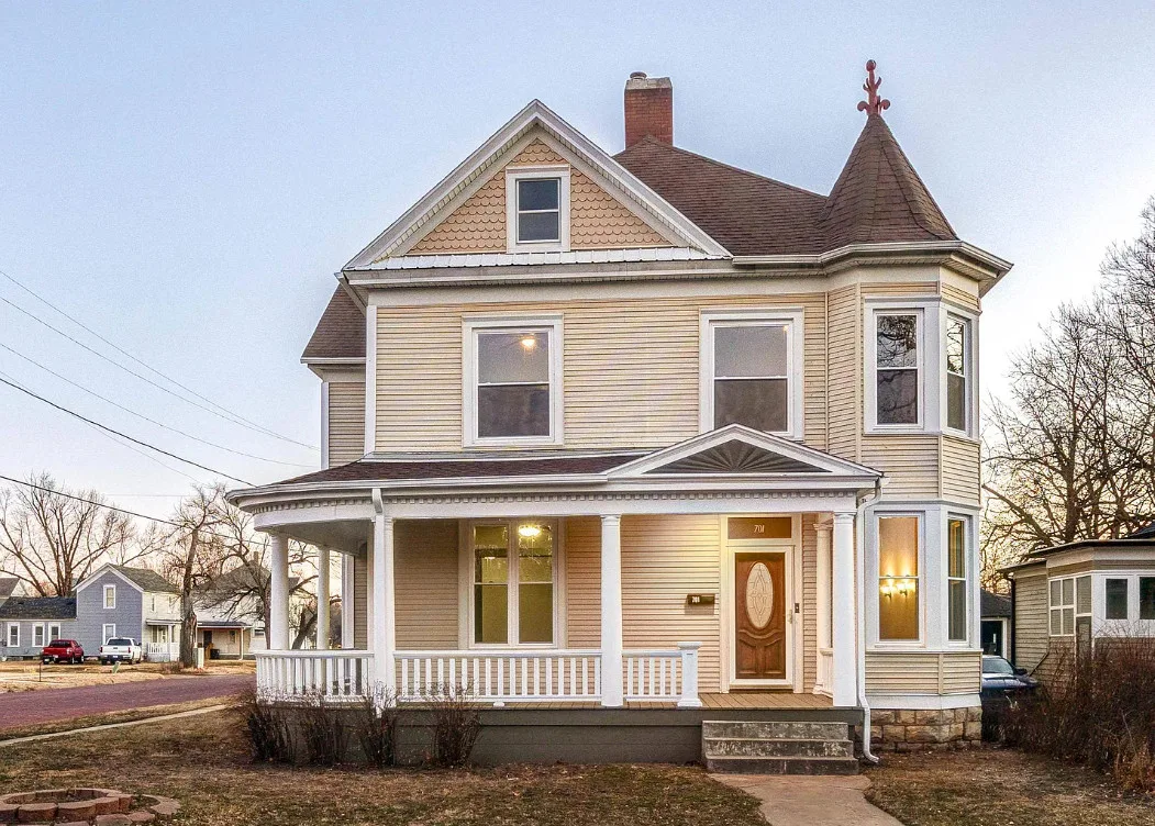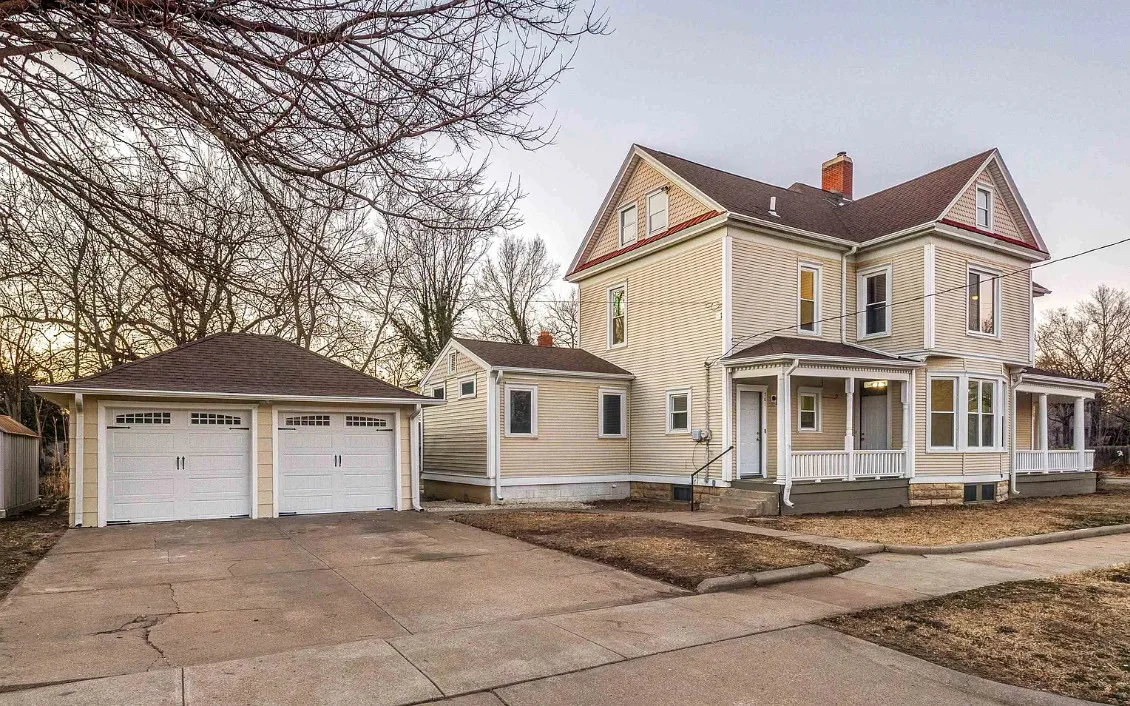 701 W. Ash is a beautifully preserved, thoughtfully remodeled historic Queen Anne-style home that blends classic charm with modern comfort. This five-bedroom, two-bath residence offers exceptional functionality, featuring a main-floor primary bedroom with an adjoining primary bath, along with laundry facilities on both the main level and upstairs for added convenience. The home boasts two spacious family room areas perfect for entertaining or relaxing, highlighted by stunning hardwood floors, elegant wooden pocket doors, and a cozy electric fireplace in the living room. The high-quality upgraded kitchen complements the home’s timeless character while providing modern efficiency. Upstairs, the bathroom includes a luxurious whirlpool tub, creating a private retreat. Situated on a desirable corner lot, the property features a large, wraparound porch, ideal for enjoying the neighborhood’s historic ambience, along with the two-car garage that completes this exceptional and inviting home.
