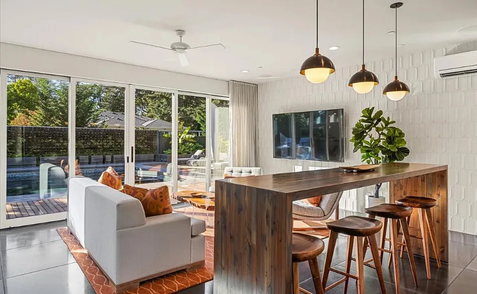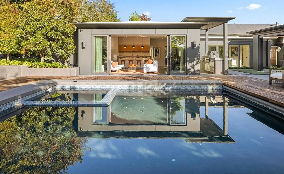 This is quite a house! This mid-century modern house was designed by John Yeon. It is known as the Shaw House. Would be the perfect house for entertaining. The Shaw House was built in 1951. It is located on .61 acre in Lake Oswego, Oregon. The house features a wine cellar, media room, large patio, three outdoor fireplaces, pool, pool house and views of Mt. Hood. Four bedrooms, five bathrooms and 5,768 square feet. $5,195,000