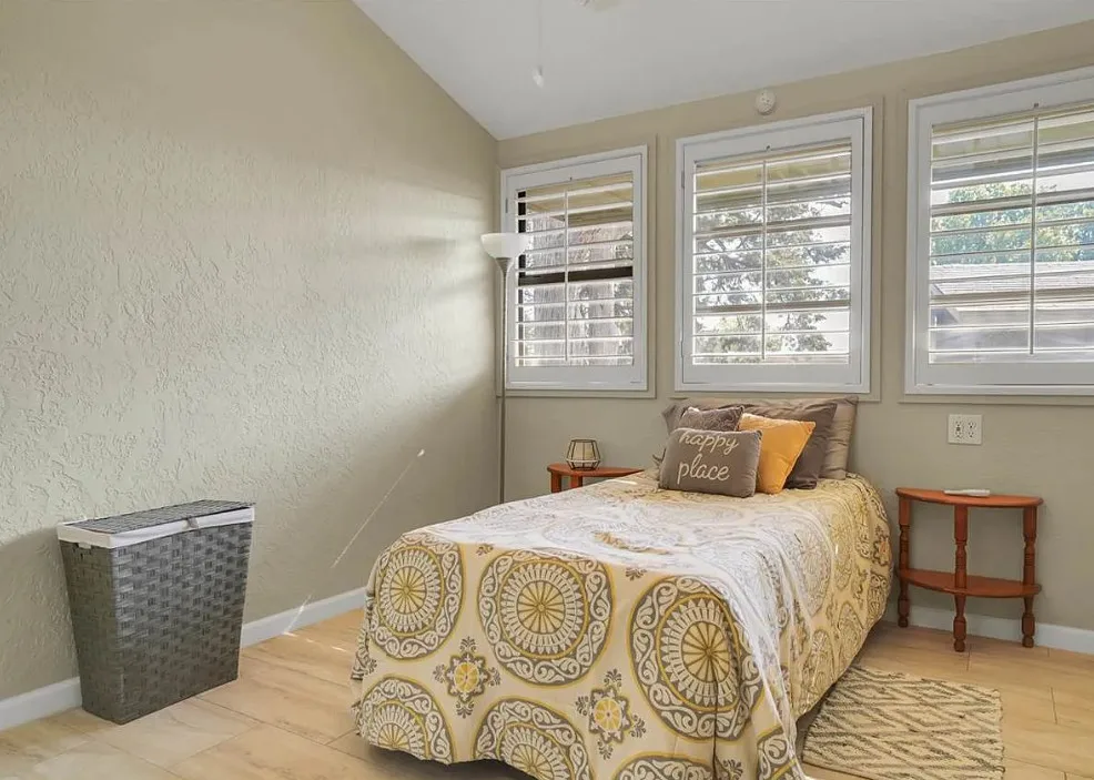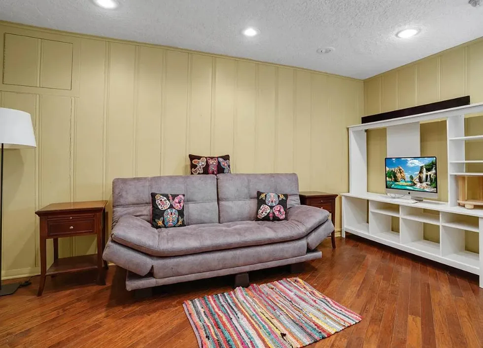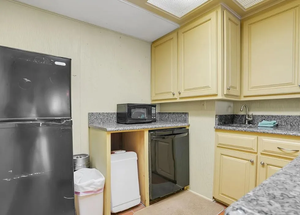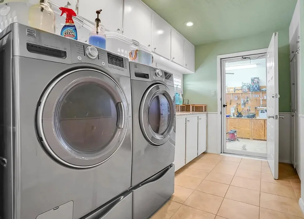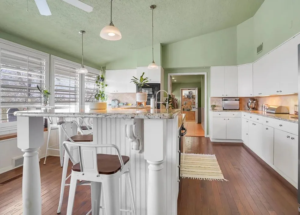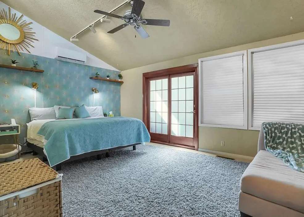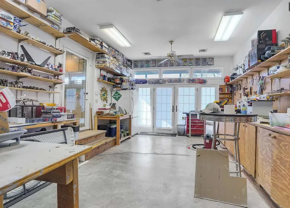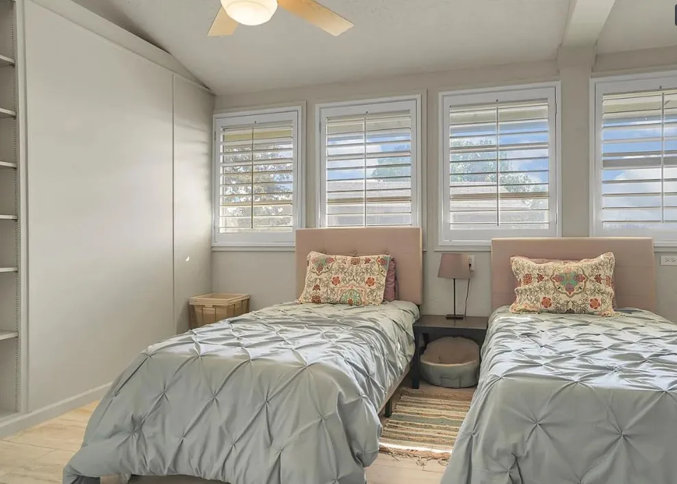 The pool looks nice! This mid-century has nice details! The house was built in 1953. It is located on 1.12 acres in Lawton, Oklahoma. The house features a covered porch, an attached garage, pretty entryway, double front doors, large family room with a wall of windows, brick fireplace, french doors, pretty chandelier, built-in bookshelves, spacious kitchen and a large sunroom. There is a large backyard with an in-ground pool and a hot tub. This is a large house. Four bedrooms, four bathrooms and 5,000 square feet. $299,500