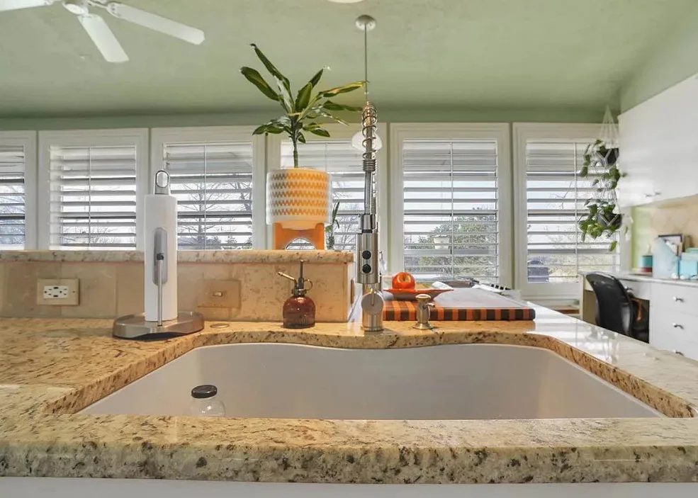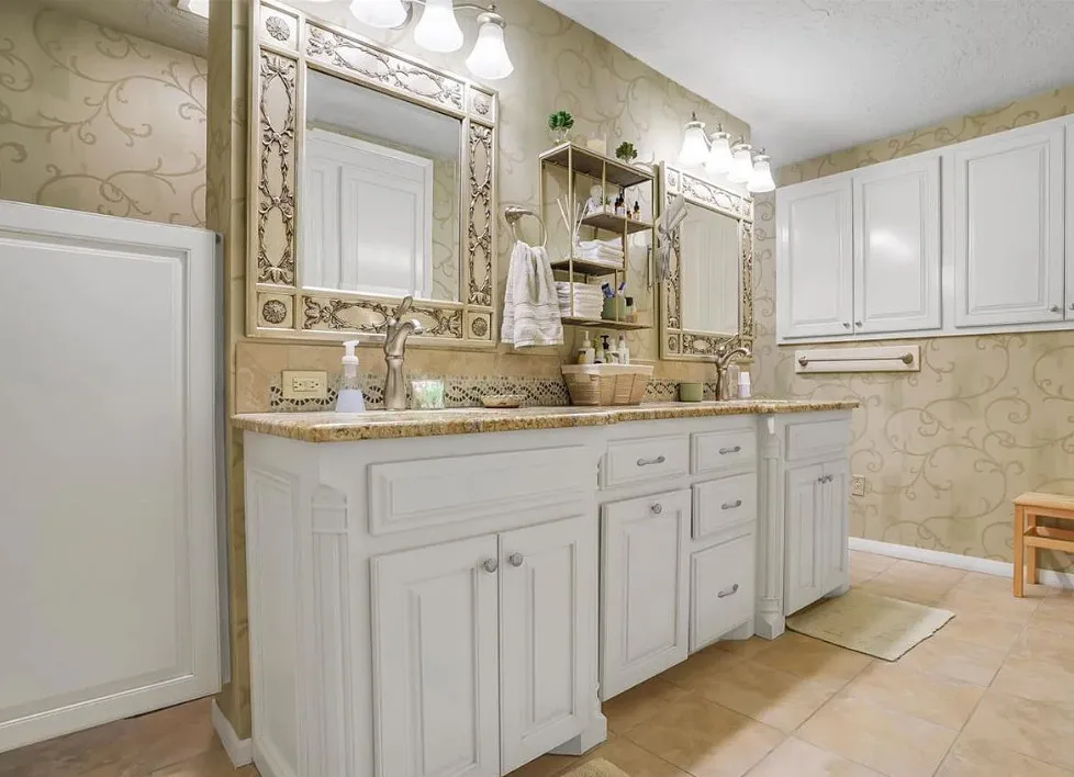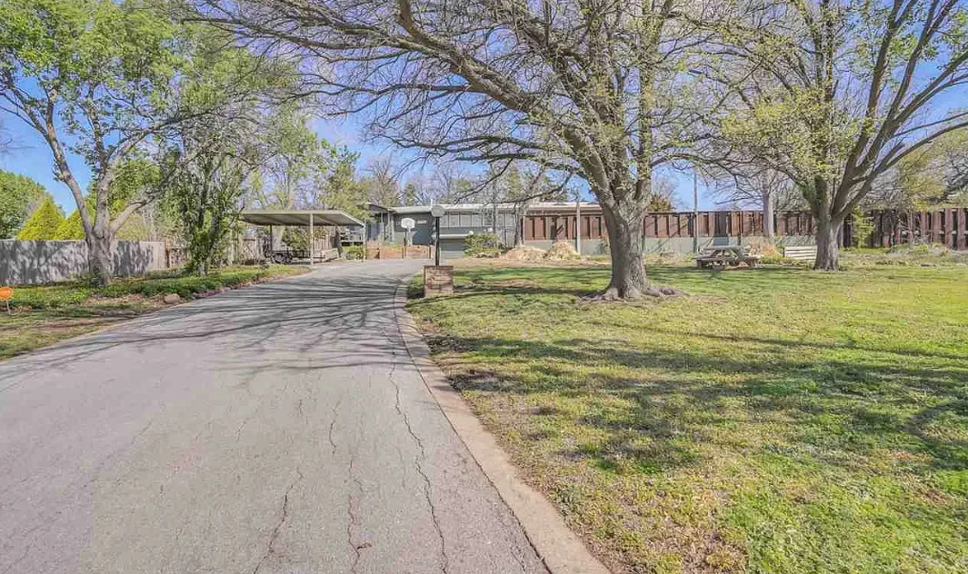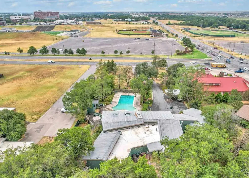 Listed by Pam Marion – Call 580-581-7870 for more details. This one-of-a-kind home is just a block away from Comanche County Memorial Hospital and Cameron University and allows easy access to shopping, dining, and entertainment. Located on a 1.12-acre tree-lined lot that creates a park-like, private atmosphere right in the heart of Lawton. The bright and spacious open concept floor plan is perfect for entertaining and offers granite countertops throughout and hardwood floors. The kitchen has original custom metal cabinets with lazy susans and pull-out shelves for pots and pans and a large island/breakfast bar with seating for 5. The Family room/Kitchen showcases approx. 13-foot vaulted ceilings, and the front of the room has wall to wall windows with custom plantation shutters that overlook the front yard, pool area and driveway. A 400 Sq. Ft. format dining room offers wood parquet floors, vaulted ceilings, down lights and an antique chandelier, as well as are wall to wall windows and French doors with access to the backyard deck. Adjacent to the formal dining room is a large custom wall of bookshelves to create your own home library. A sitting room/den/office with vaulted ceiling, hardwood floors, stained glass windows and rock wail gas log fireplace leads to a spacious main bedroom with a private bath. The main bathroom has dual sinks, custom-built cabinets galore and a whirlpool tub. Other highlights are dual walk-in closets with built in shoe shelving, vanity and 6 closets worth of hanging space in multiple areas. A cedar-lined sunroom with vaulted ceiling offers tons of windows, 2 skylights, 4 stained glass windows and granite countertops with access to the master bedroom. Also, on this level are two spacious guest bedrooms with tons of windows, vaulted ceilings, custom-built cabinets with Lighted vanities and bookshelves and walk-in closets with built-in shelves. The large, updated bathroom off of the hallway has two sinks, custom cabinets, granite countertops, a walk-in shower and bathtub. On the lower level a rock wall foyer welcomes you and leads to the approx. 1000 sq. ft. tiled great room with surround sound, huge stone fireplace with gas Logs, built in custom lighted cabinets with tons of storage and a recessed area to mount a big screen television. French doors open to the approx. 46′ x 20′ pool, hot tub, and surrounding area. Also, located on that level is a bedroom with custom cabinets, built in vanity, plantation shutters and hardwood floors. Plus, 3/4 bath with walk -in shower, built in linen cabinets and granite countertops plus a kitchenette/with sink/wet bar and a space for a refrigerator, dishwasher and ice maker or trash compactor. This would make for a great guest house, rental, or mother-in-law suite.