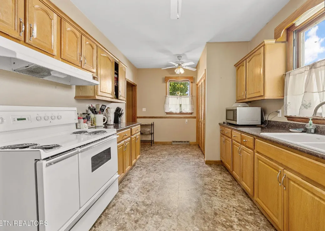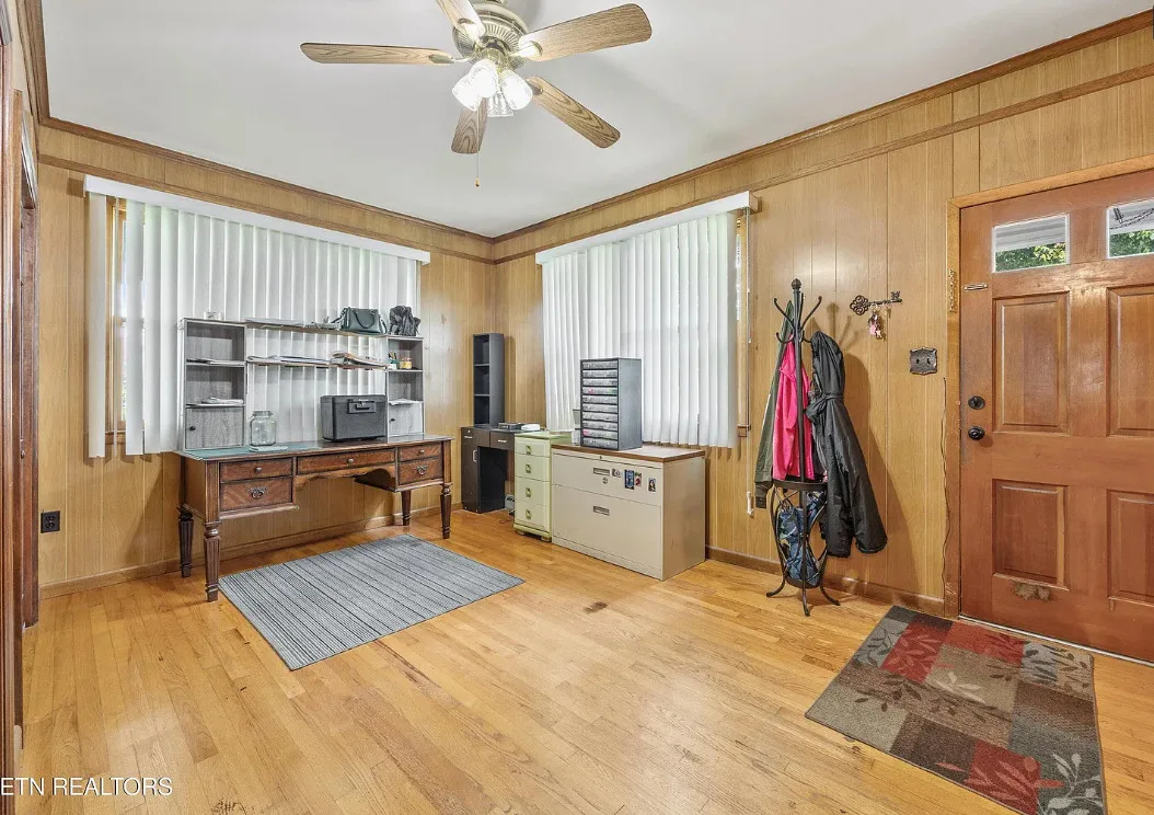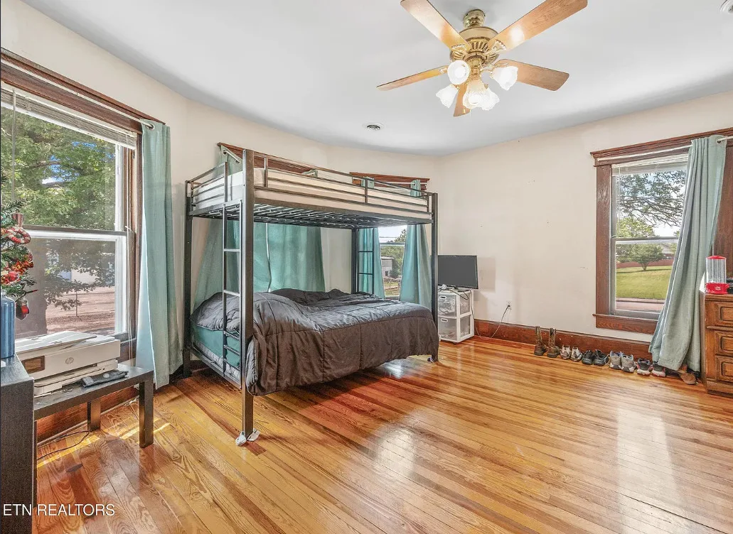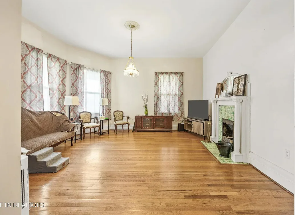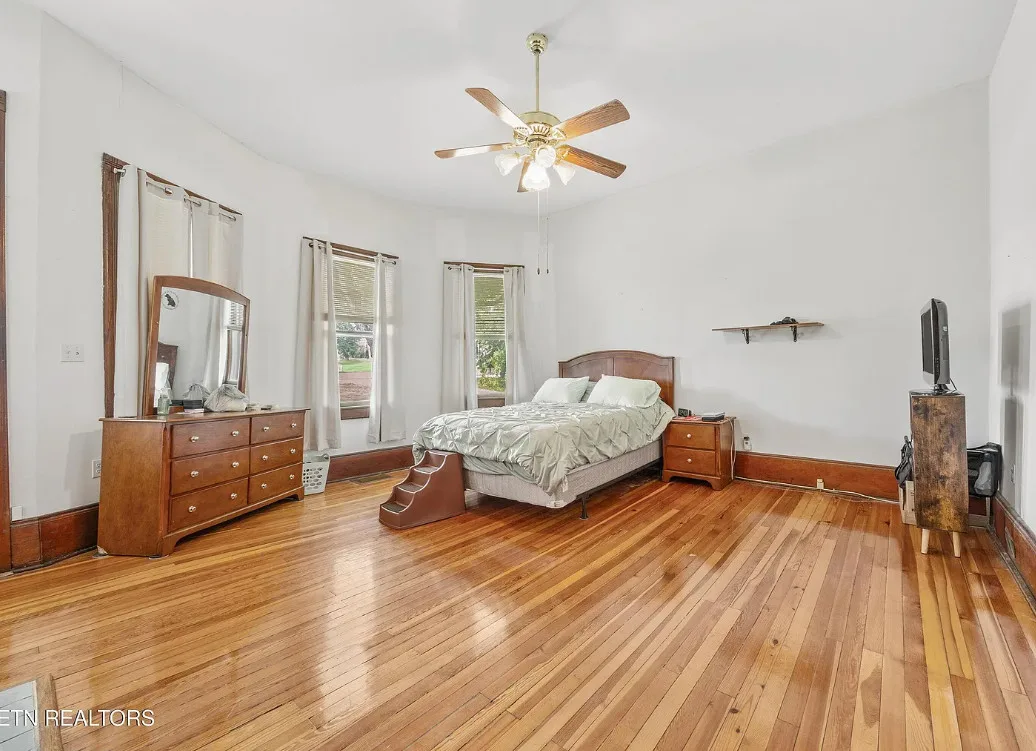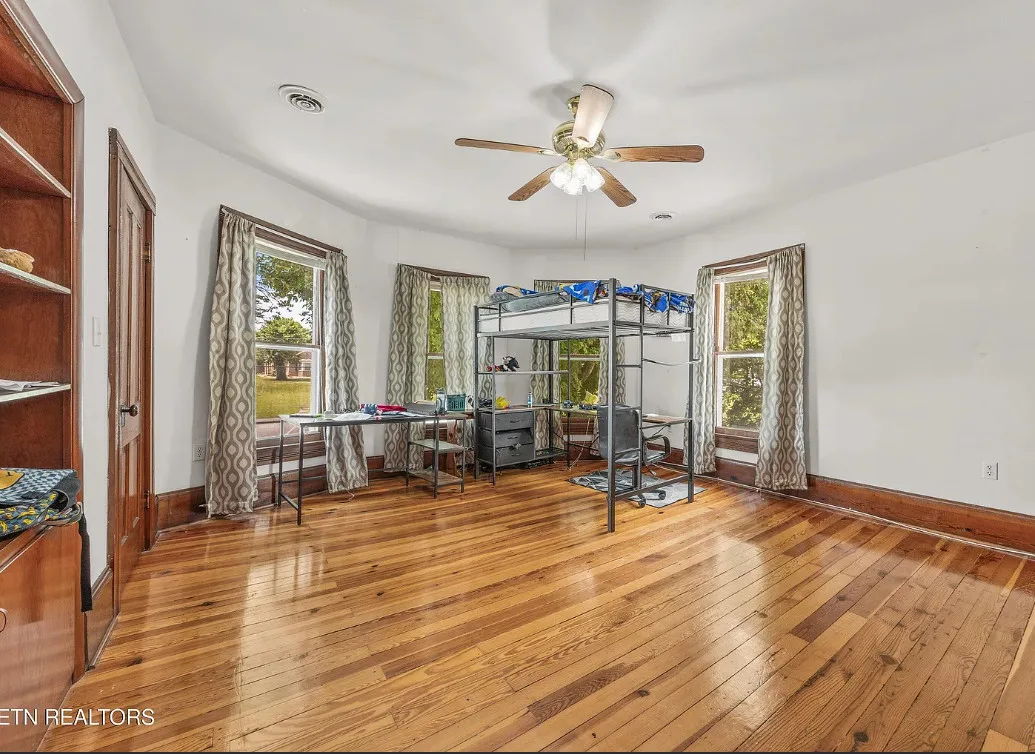 Porch goals! There are original details inside! The house was built in 1907. It is located on one acre in New Tazewell, Tennessee. The price seems a bit high to me. The house features a large wrap around front porch, wood floors, picture rails, spacious kitchen and transom windows. Four bedrooms, two bathrooms and 3,038 square feet. $390,000