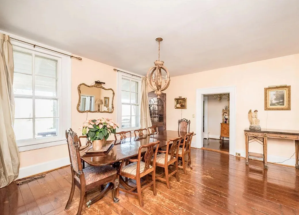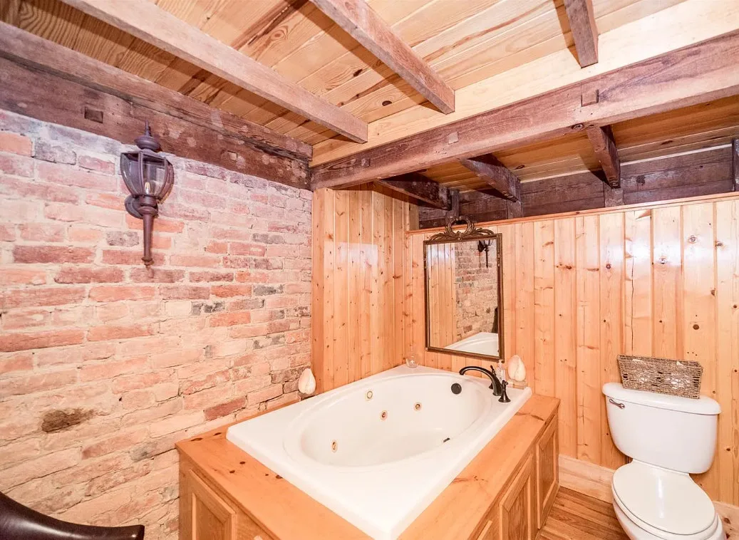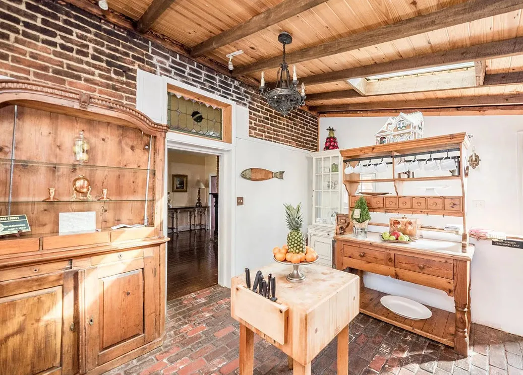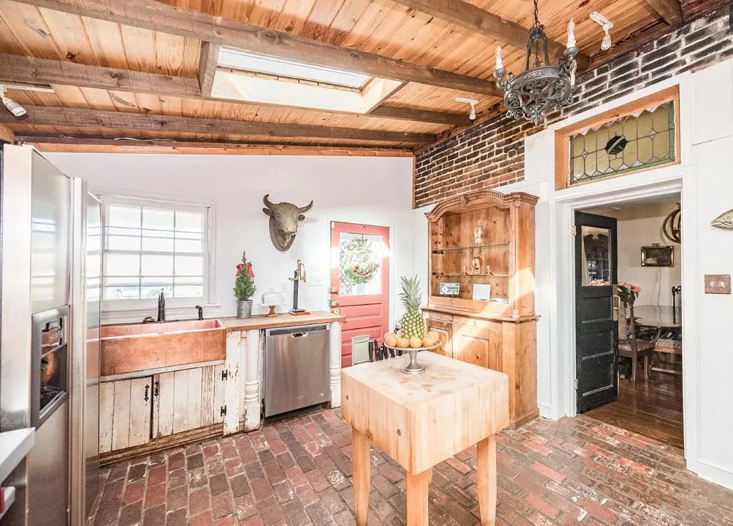 Beautiful exterior! It’s like an Italian villa! There is a large guesthouse on the property. The main house was built in 1867. It is located on 5.94 acres in Amherst, Virginia. The interior left me a bit underwhelmed, but it is a pretty property. The house features a covered porch, wood floors, exposed brick, baseboards and brick flooring in the kitchen. There is a detached guesthouse and amazing views. Six bedrooms, six bathrooms and 3,565 square feet. $1,099,000