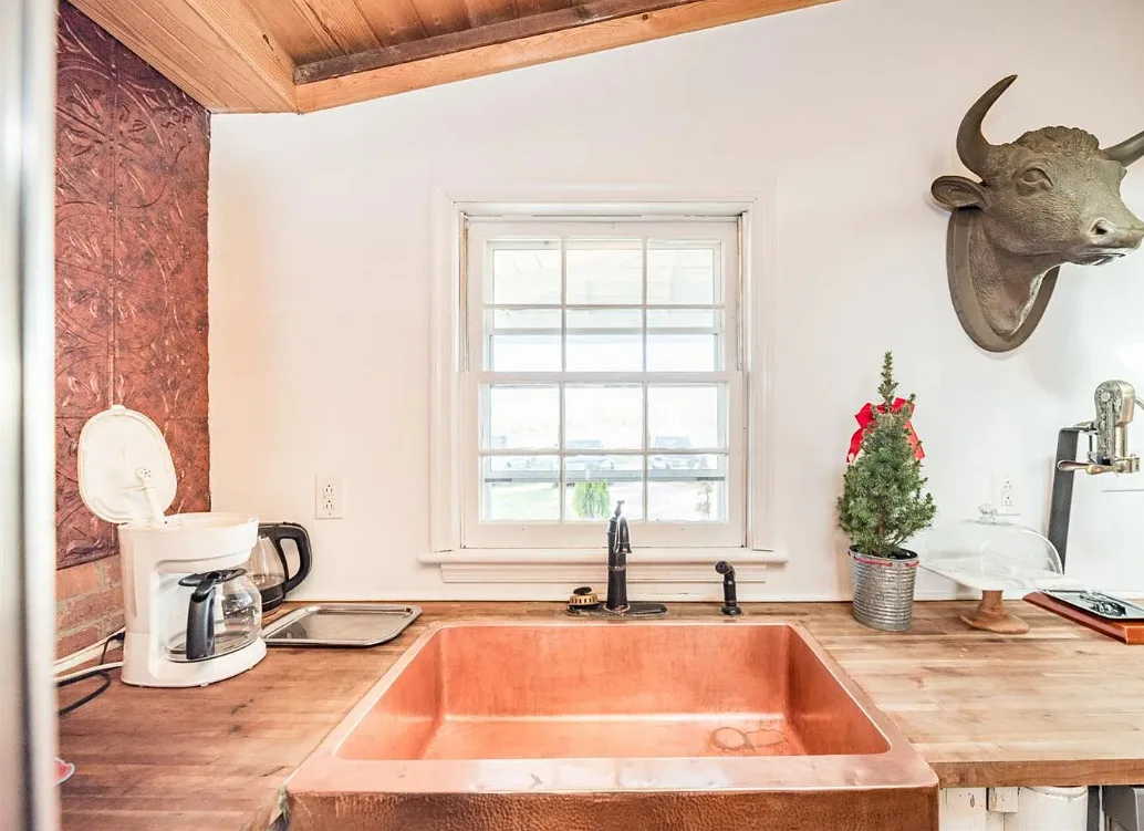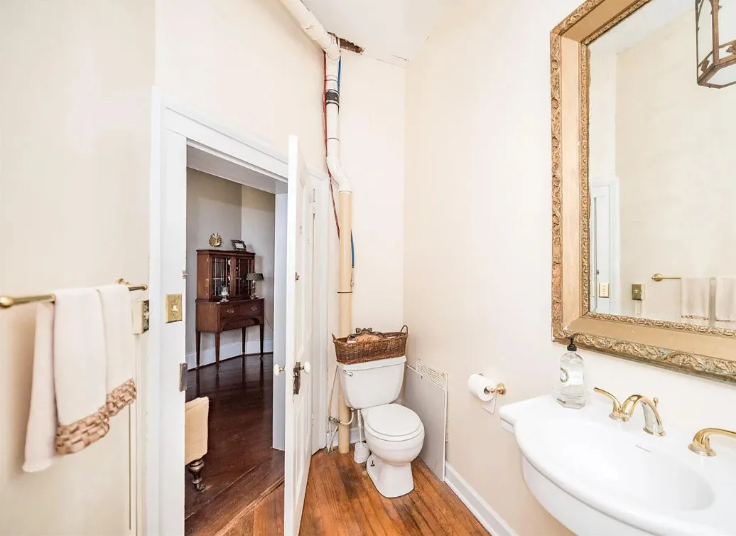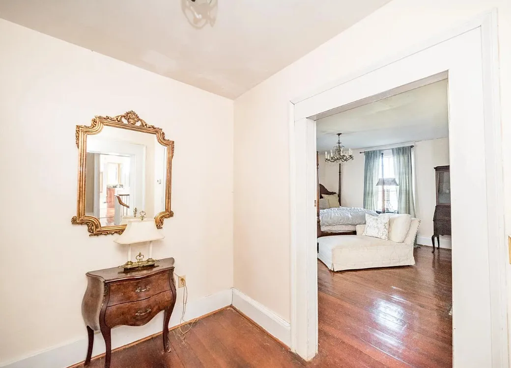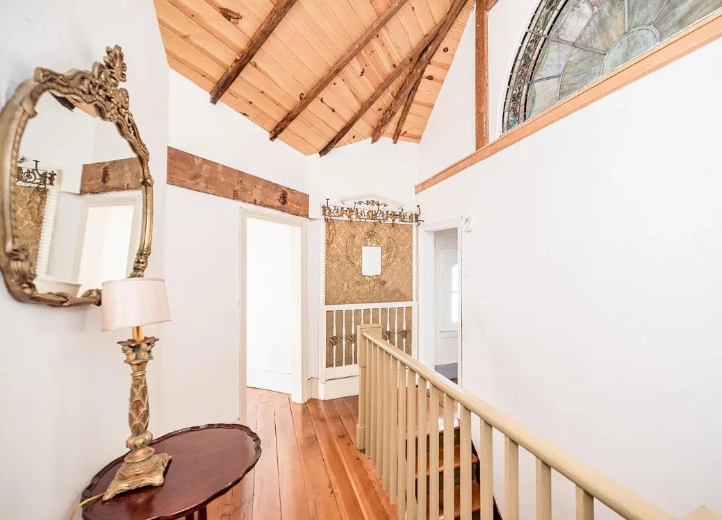 Beautiful exterior! It’s like an Italian villa! There is a large guesthouse on the property. The main house was built in 1867. It is located on 5.94 acres in Amherst, Virginia. The interior left me a bit underwhelmed, but it is a pretty property. The house features a covered porch, wood floors, exposed brick, baseboards and brick flooring in the kitchen. There is a detached guesthouse and amazing views. Six bedrooms, six bathrooms and 3,565 square feet. $1,099,000