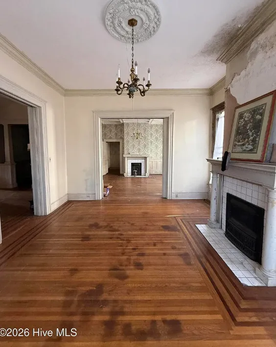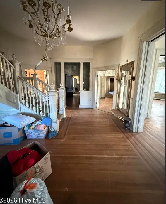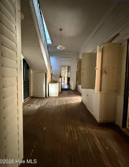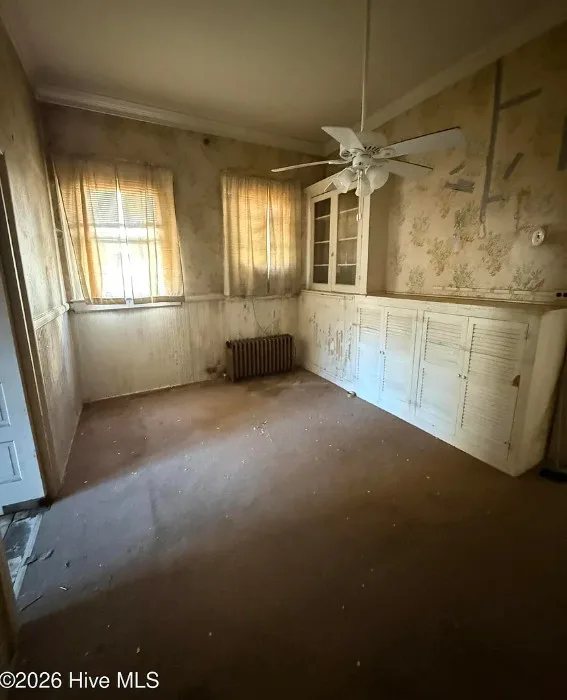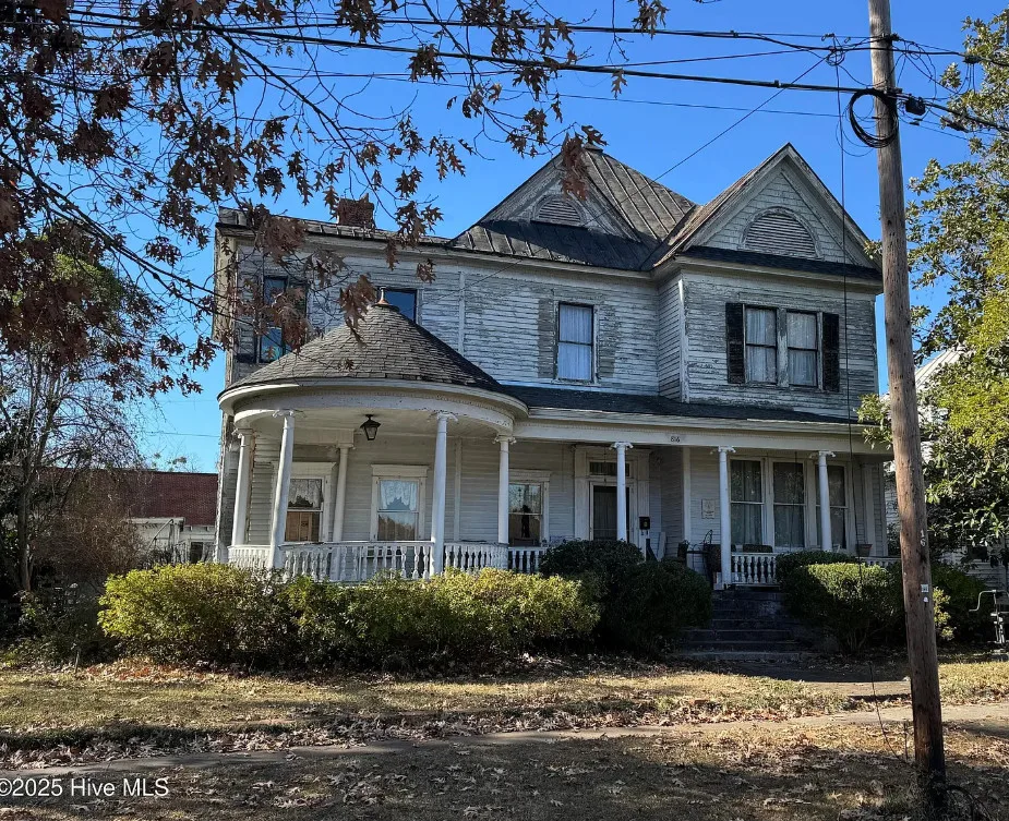 This fixer upper has some pretty details and potential! The house was built in 1900. It is located on .3 acre in Tarboro, North Carolina. The house features a covered front porch, original wood floors, tall ceilings, crown moulding, pocket doors, wide baseboards, coffered ceiling, stained glass and a pretty staircase. The home has a big butler’s pantry. This is a big house with 4,397 square feet. $150,000
