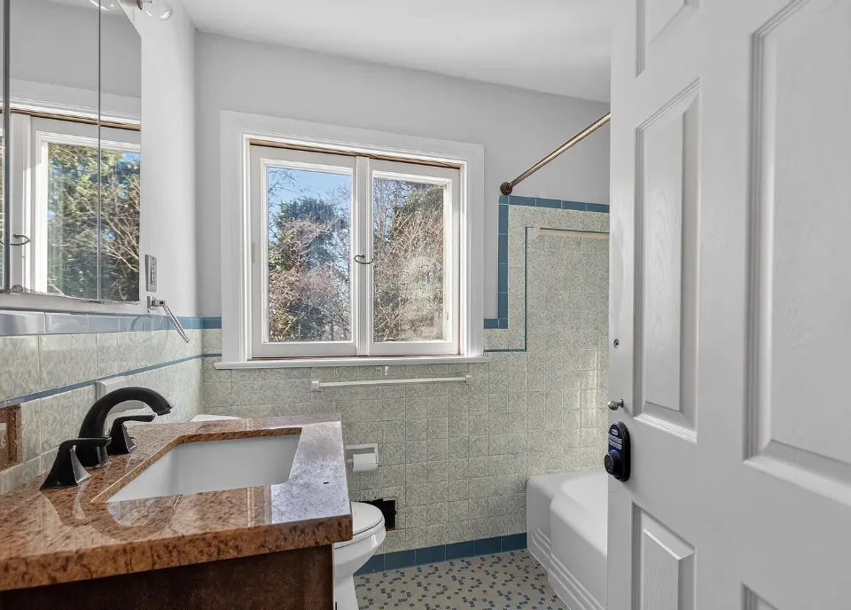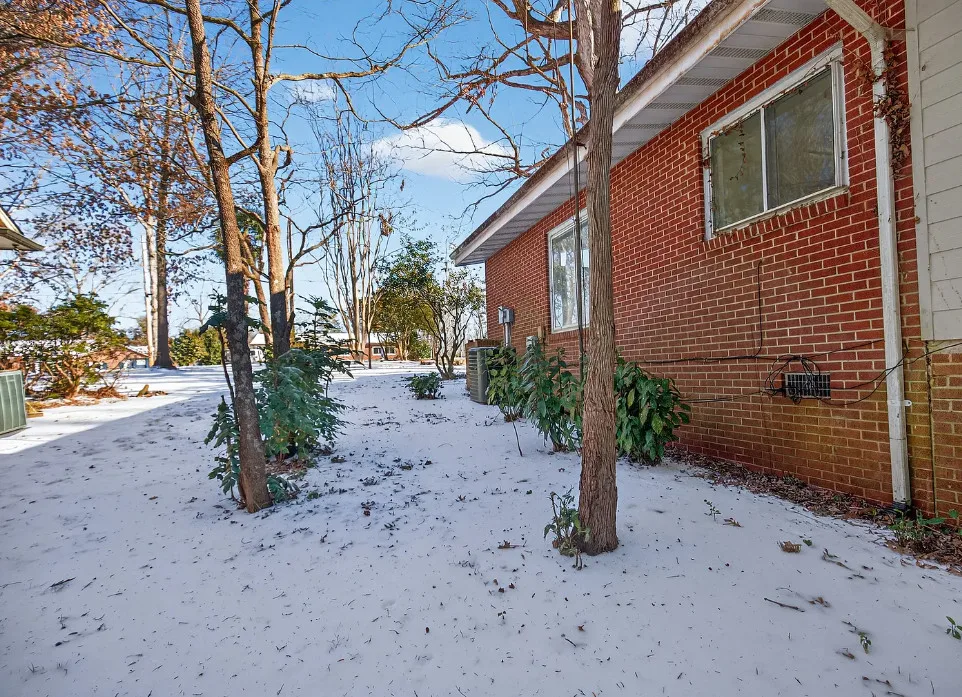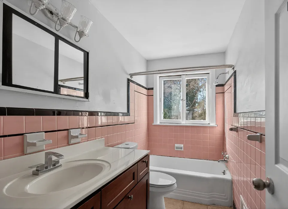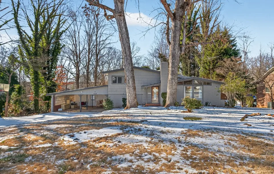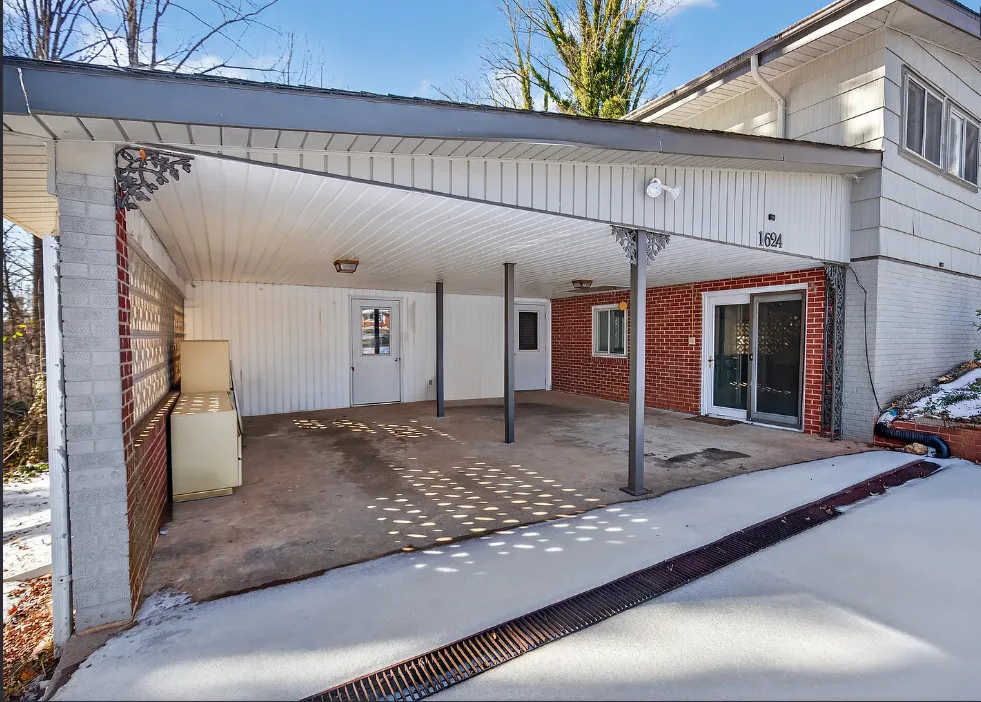 I love the pink tiled bathroom! The house was built in 1955. It is located on .53 acre in Newton, North Carolina. The house features wood floors, vaulted ceiling, brick fireplace, exposed beam, baseboards, chair rails and a two car attached carport. Spacious yard with mature trees. Four bedrooms, two bathrooms and 1,640 square feet. $279,000