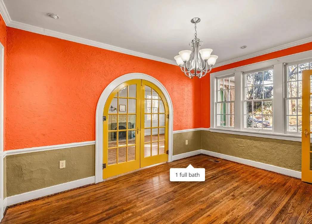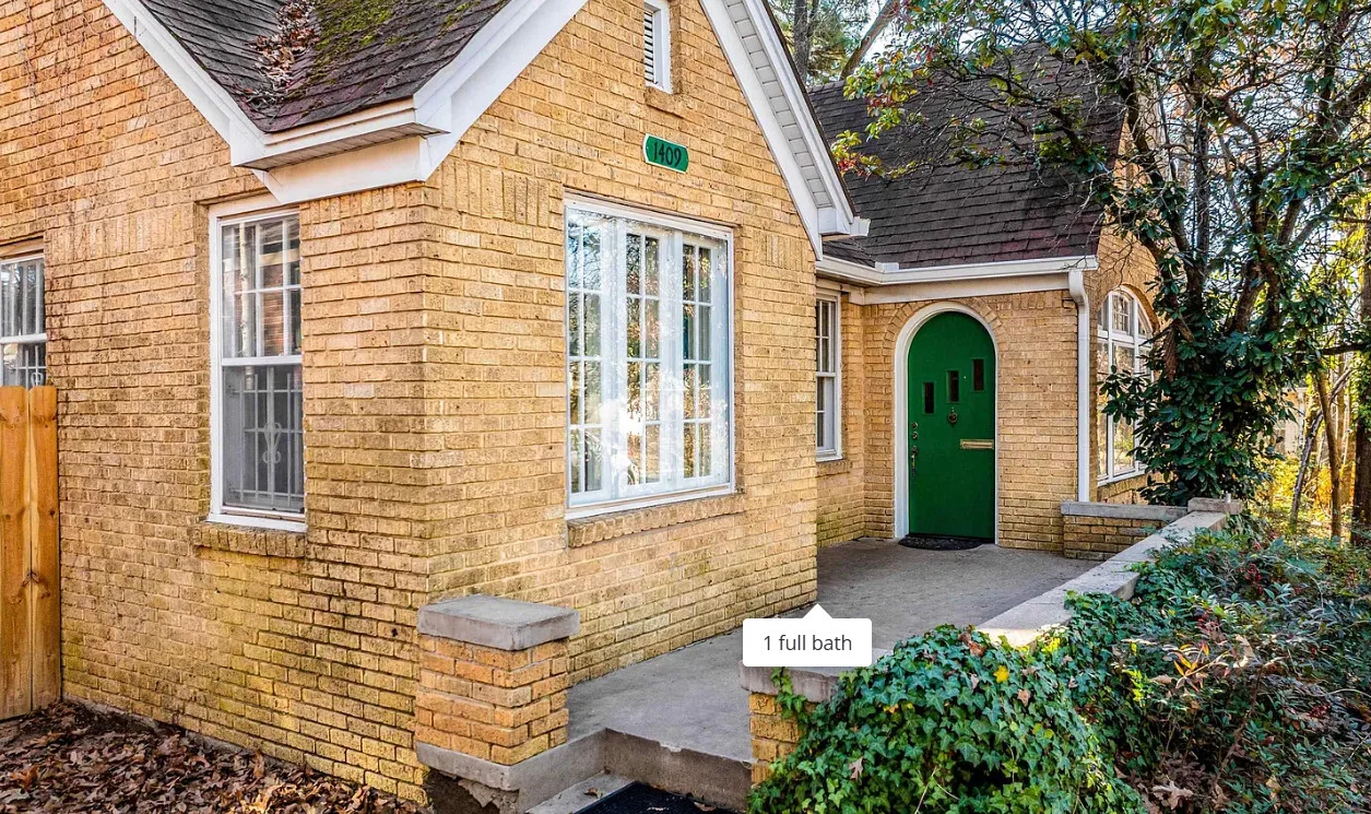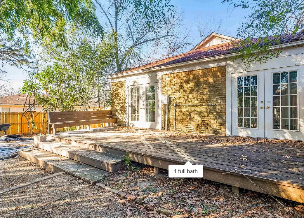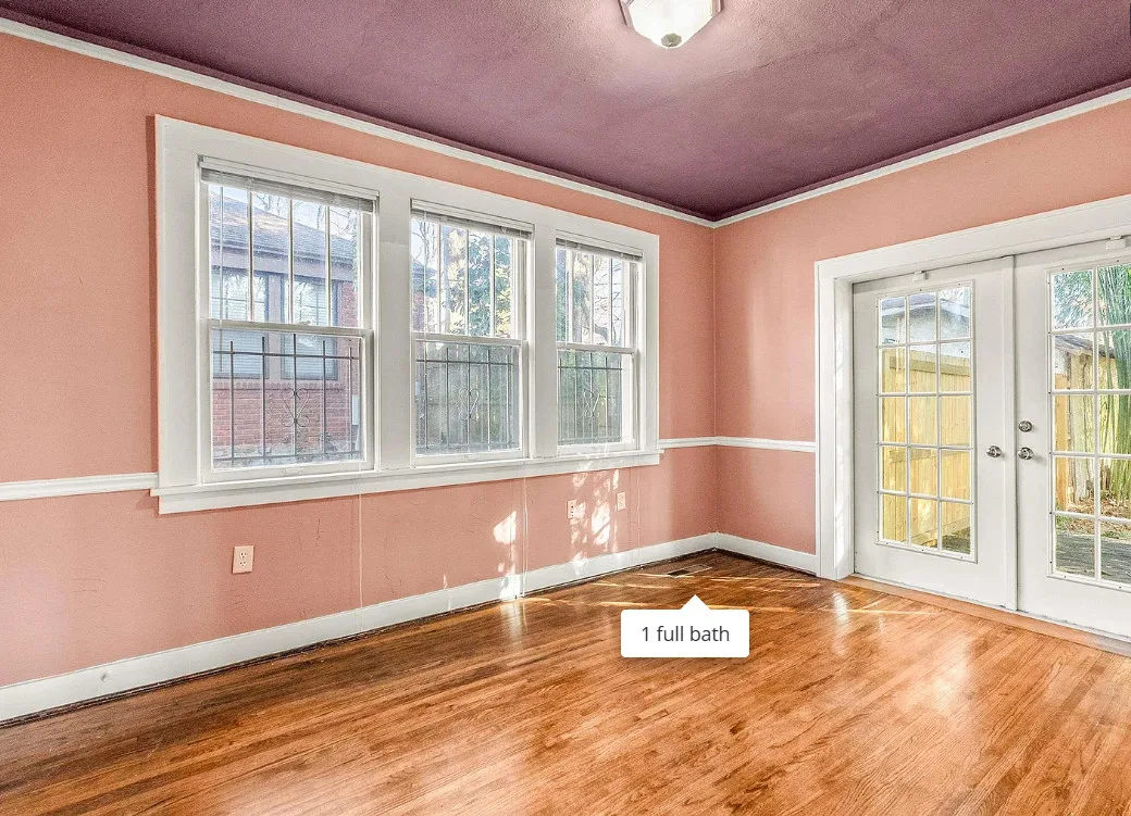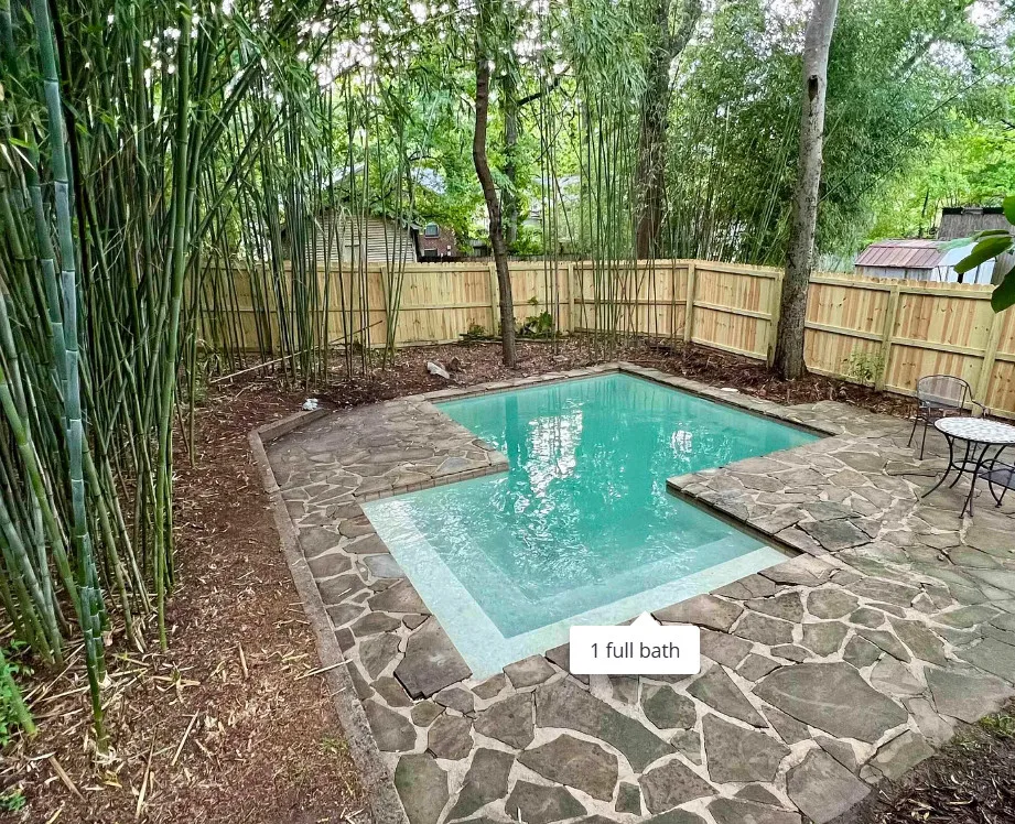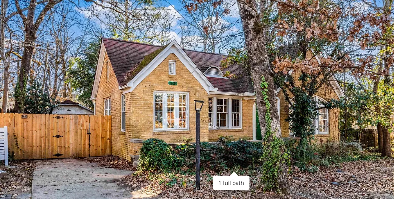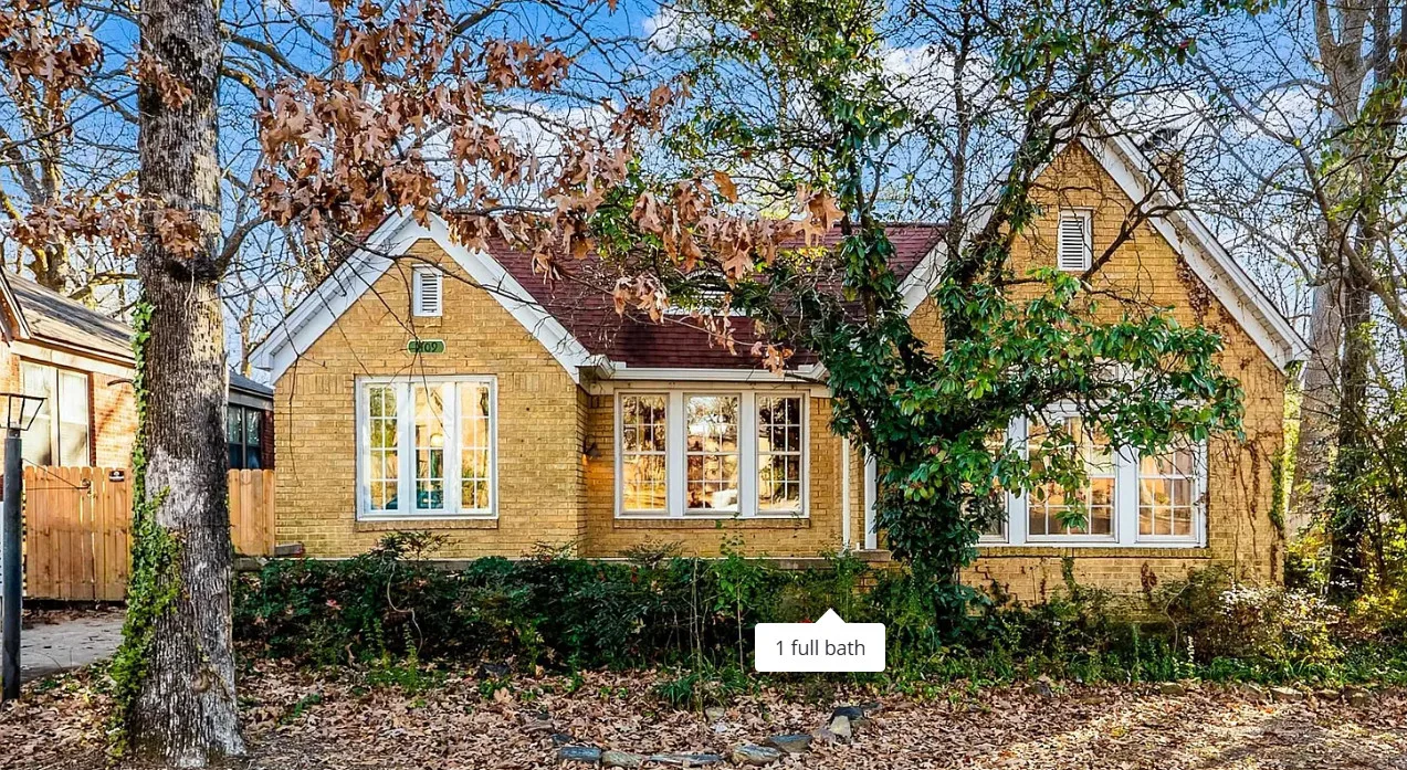 This house has a lot of potential! That pool is unique! The house was built in 1924. It is located in Little Rock, Arkansas. The house features a brick exterior, arched front entryway, wood floors, chair rails, crown moulding, arched french doors and a telephone nook. The backyard is spacious and fenced with an in-ground pool. There is a detached garage on the property. Three bedrooms, one bathroom and 1,498 square feet. $189,900