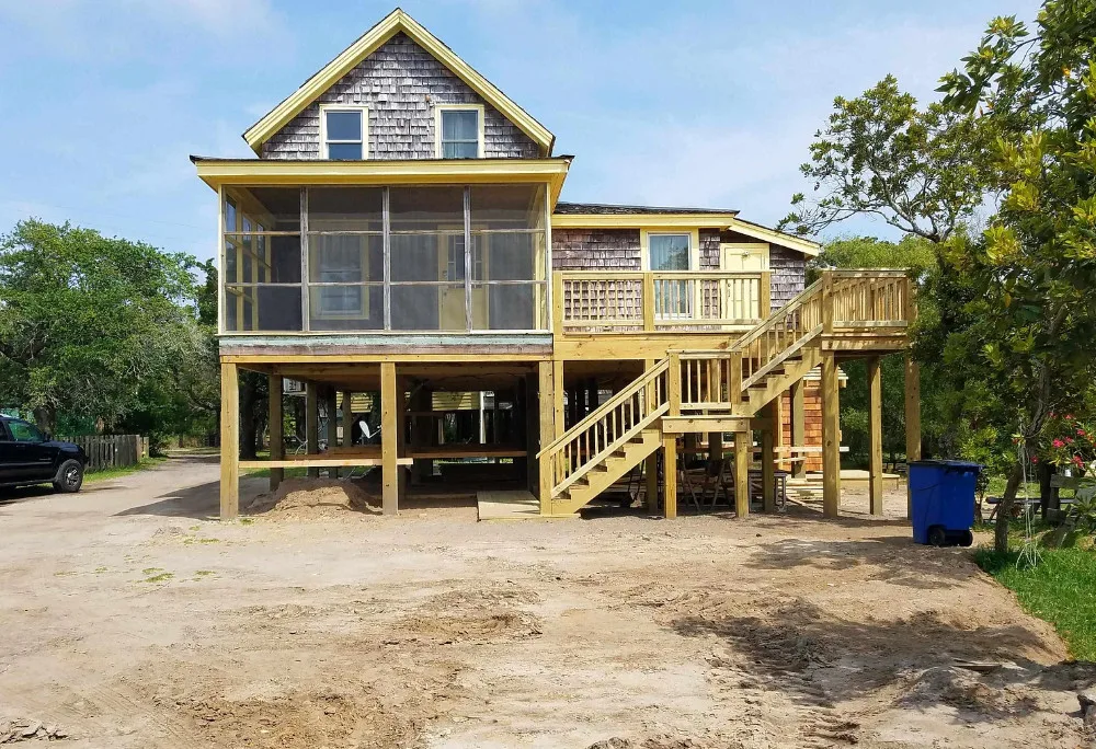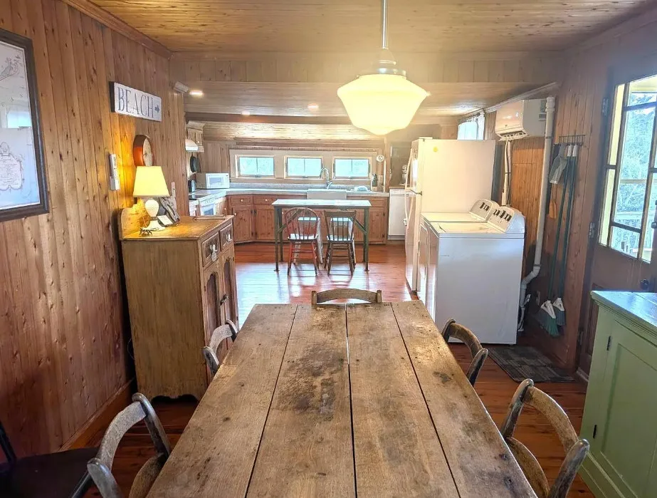 Ocracoke is one of the barrier islands of the Outer Banks. It is only accessible by ferry. It’s a beautiful place! This house is known as Tom Frank Gaskins House. It was built in 1883. The house is located in Ocracoke, North Carolina. The house features a cedar shake shingle exterior, a screened in porch, tongue and groove walls, wood floors, great kitchen sink and a claw foot tub. It’s nice that the house has already been raised. This house has been used as a successful short term rental. The house is being sold furnished. Three bedrooms, two bathrooms and 1,185 square feet. $550,000