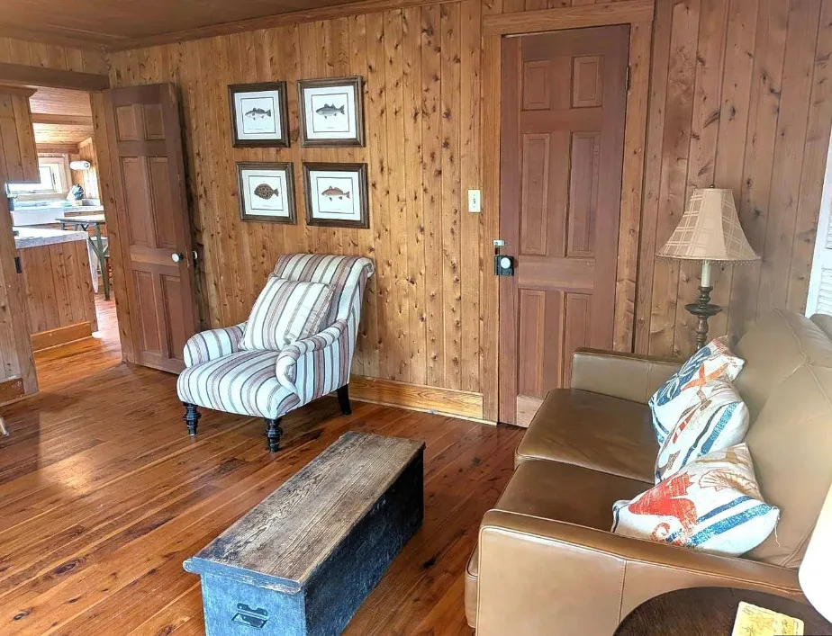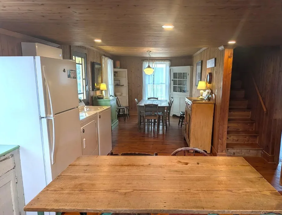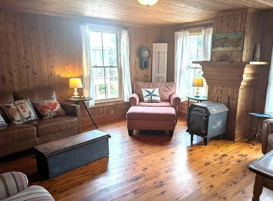 Registered on the National Registry of Historic Homes, an Ocracoke gem! Old Ocracoke at its finest! Located on a small unpaved lane, the Tom Frank Gaskins home was built in 1883. The cedar shake exterior and gracious screened porch add to the historic charm. The interior has tongue and groove juniper walls and ceilings, beautiful wood floors, a large open kitchen and dining area with a farm house sink, school house pendant lighting, juniper cabinets, built-in linen closet, relaxing living room and first floor bedroom and bath. The beautiful juniper wood continues upstairs in 2 open sleeping spaces with a double closet and a bath with an antique pedestal sink and claw foot tub. A classic barn door at the top of the stairs adds privacy and elegance. In 2022, the Tom Frank Gaskins home was elevated and a new piling foundation was installed. Additional upgrades include Anderson windows, 4 new mini-splits in 2024, sun deck, exterior cedar shakes, insulation, plumbing (underneath), paver parking pad under the home and an outdoor shower. The Tom Frank House is currently a proven vacation rental but could easily transition into a primary or second home. Sold furnished with a great mix of old and new!