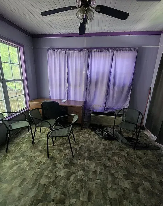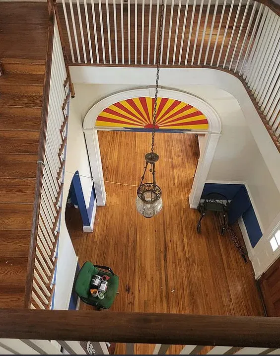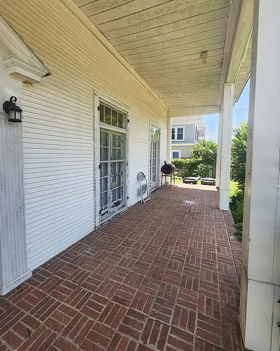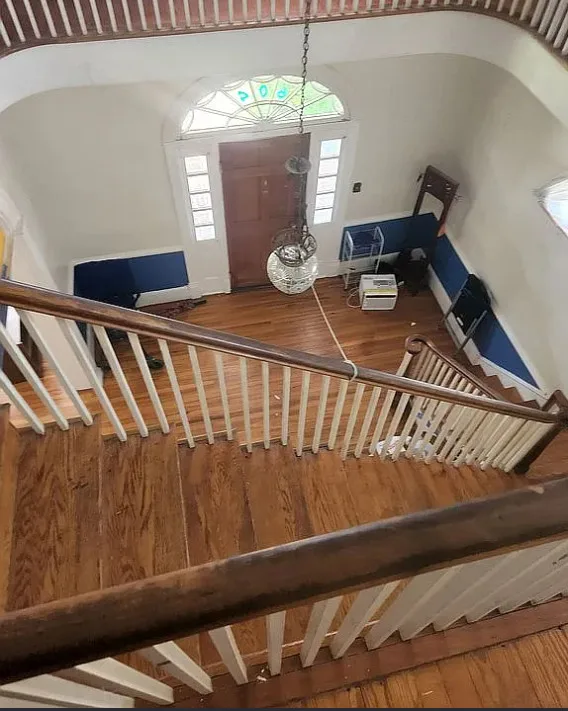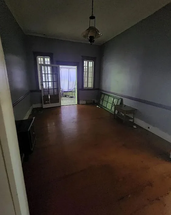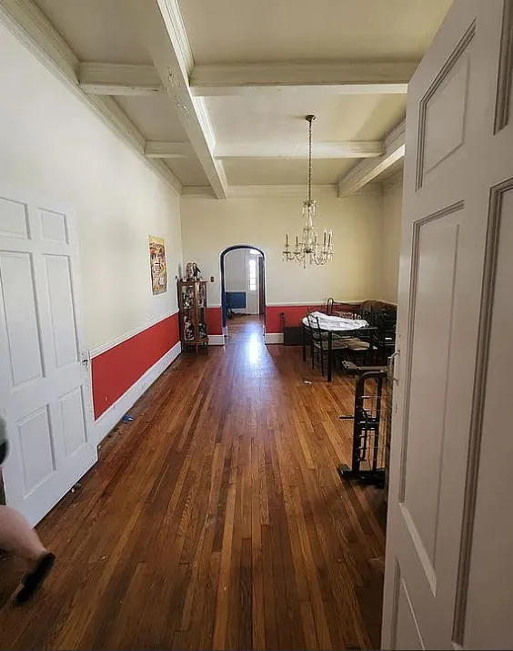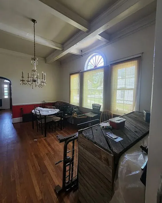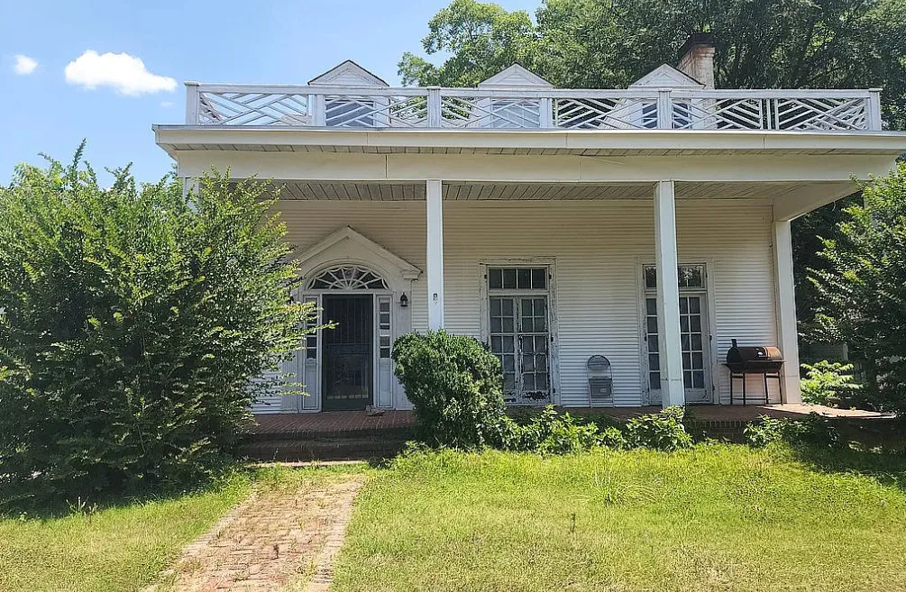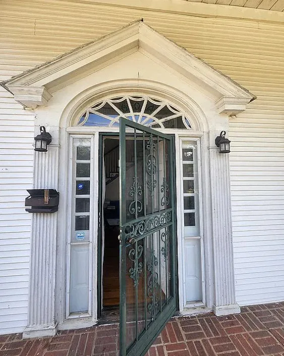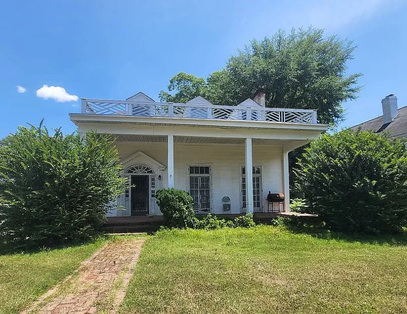 This house has interesting features! There is potential in this house. The home was built in 1922. It is located in Lawrenceville, Virginia. The house features a covered front porch, pretty front door, wood floors, baseboards, chair rails, nice staircase, coffered ceiling, sunroom, french doors and arched entryway. Four bedrooms, three bathrooms and 3,000 square feet. $180,000