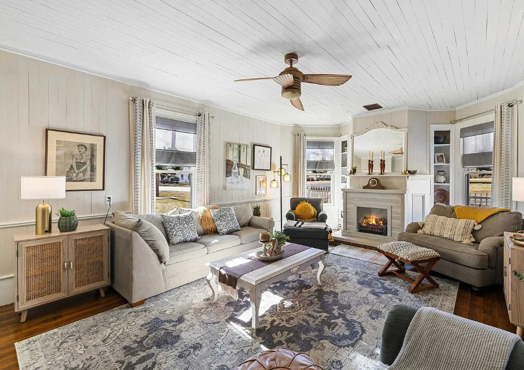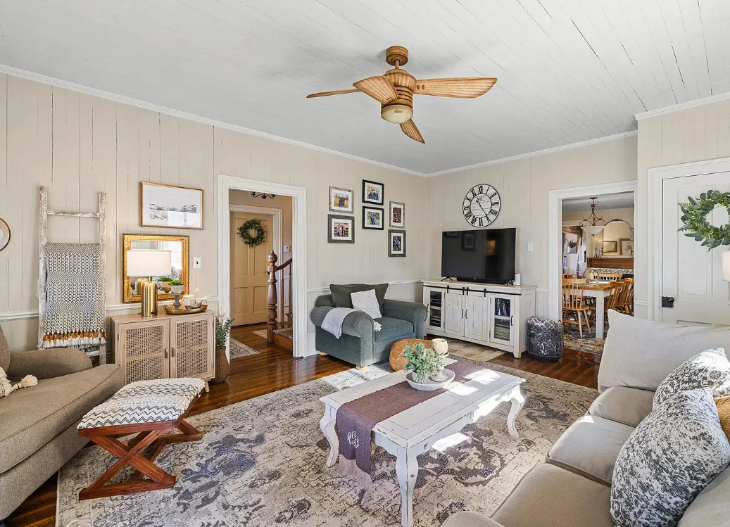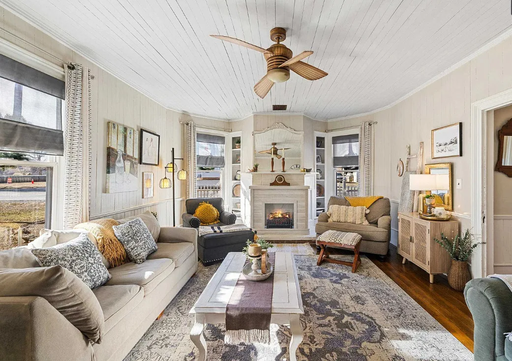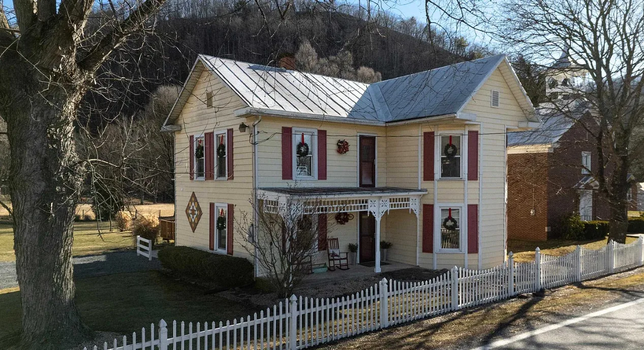 This is a great house! Pretty details inside! The house was built in 1900. It is located on .75 acre in McDowell, Virginia. The house features a covered front porch, white picket fence, wood floors, crown moulding, brick fireplace, wide baseboards, chair rails, wainscoting, a lot of natural light and built-in bookshelves. There is a large back deck and a fire pit area. Three bedrooms, two bathrooms and 2,184 square feet. $245,000