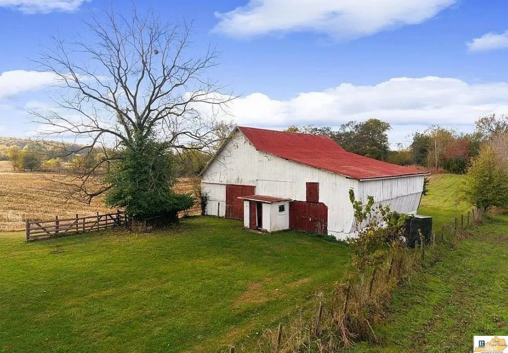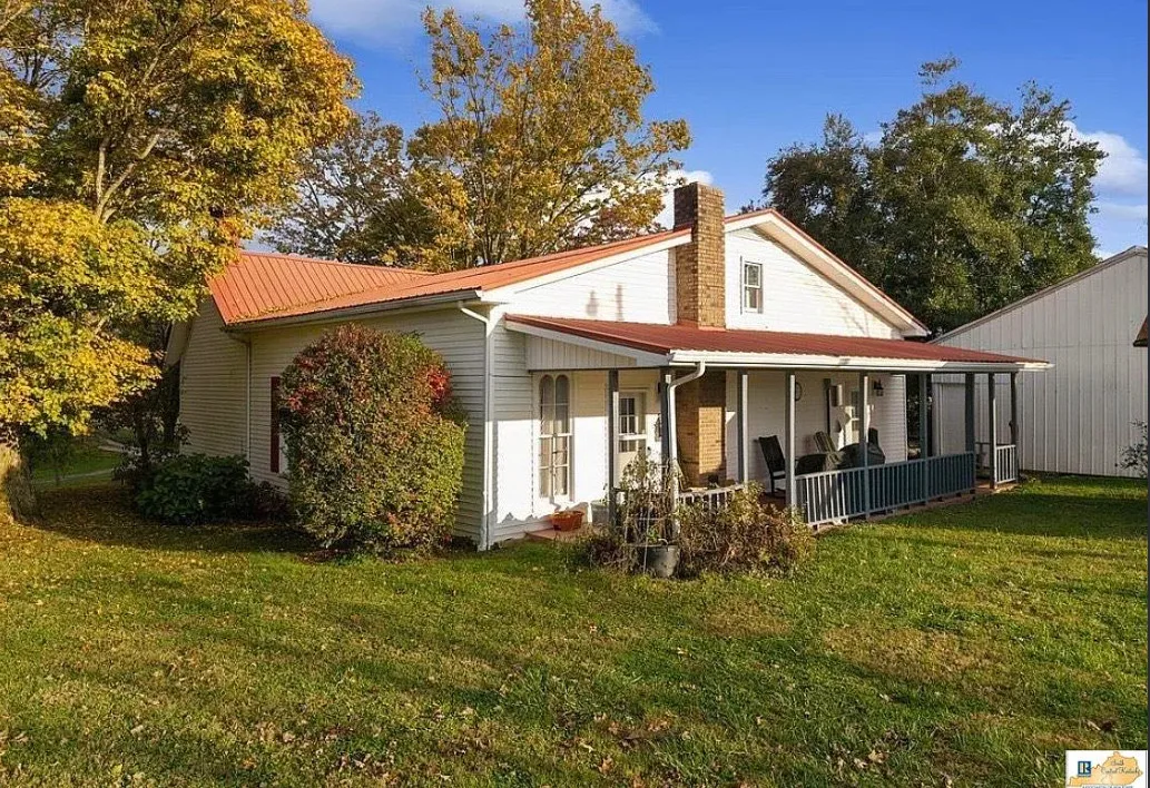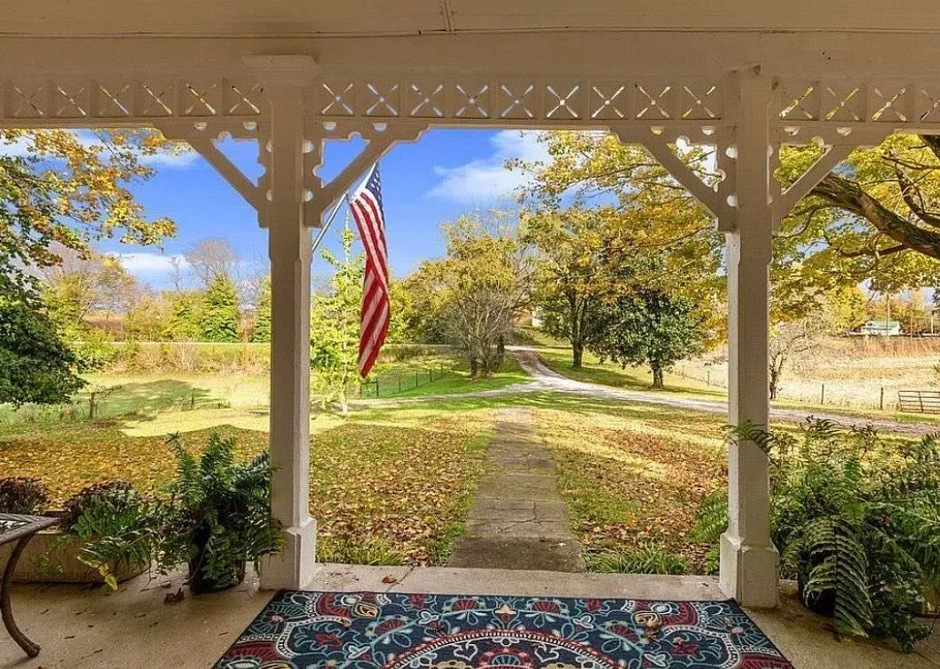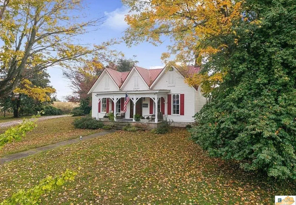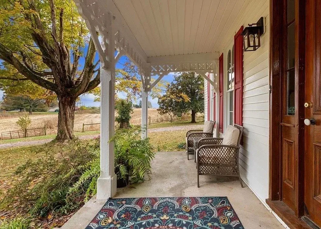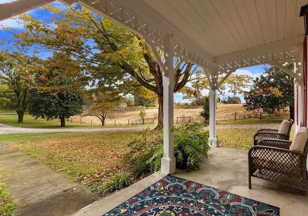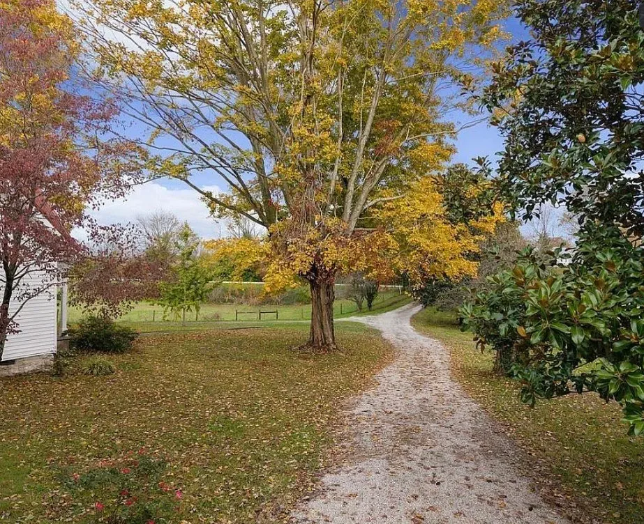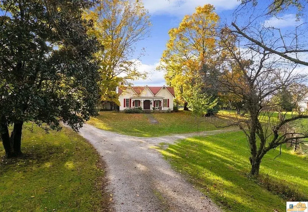 This house has a pretty setting! I love the long driveway! The house was built in 1859. It is located on 3.78 acres in Horse Cave, Kentucky. The house features a covered front porch, wood floors, really wide baseboards, picture rails, original mantels, spacious kitchen, office and a loft area. There is a detached garage on the property. Three bedrooms, two bathrooms and 2,255 square feet. $345,970