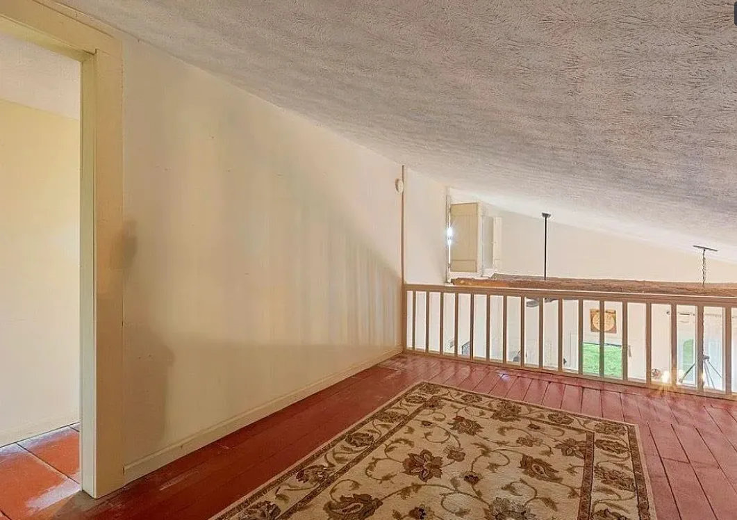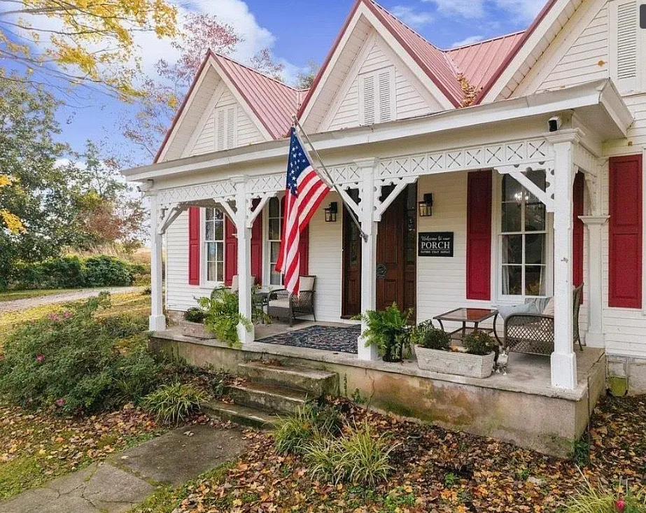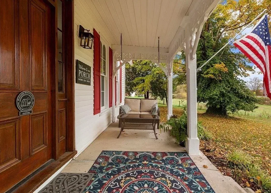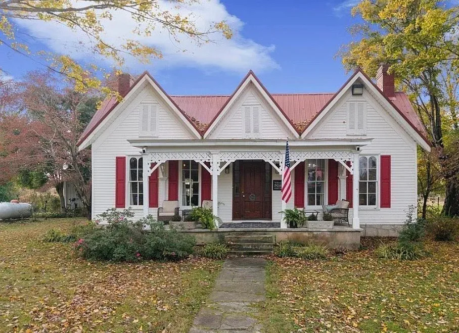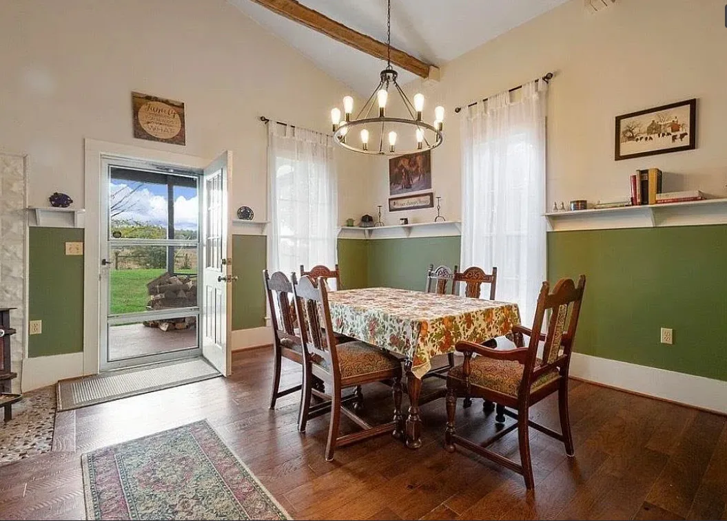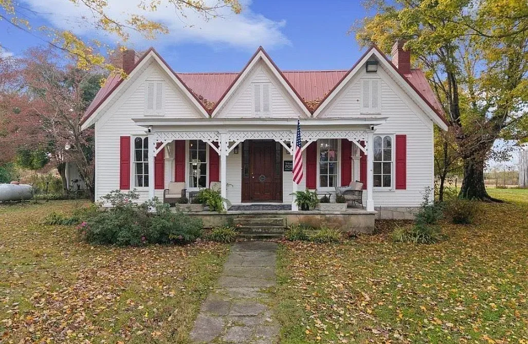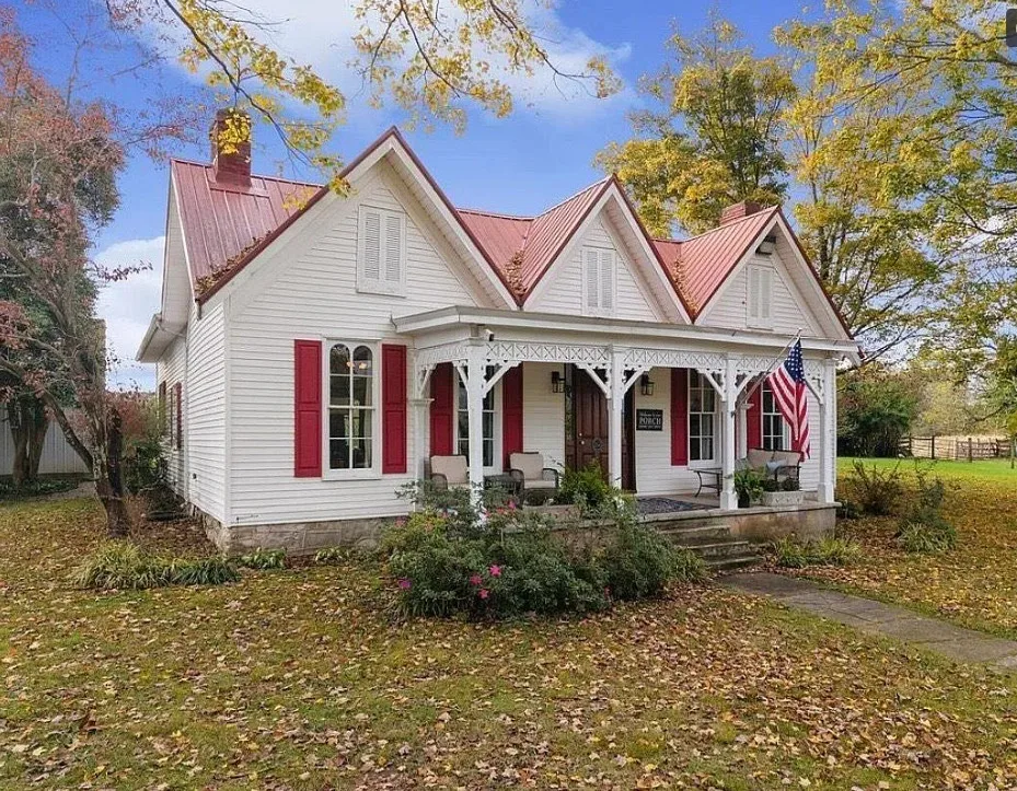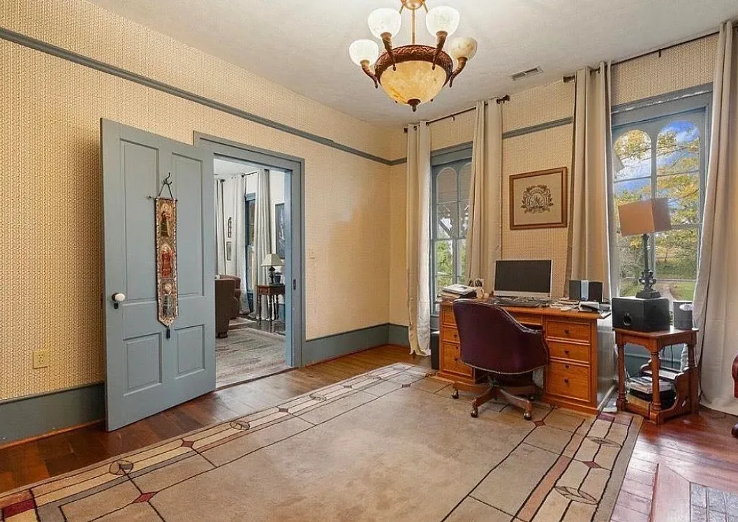 This house has a pretty setting! I love the long driveway! The house was built in 1859. It is located on 3.78 acres in Horse Cave, Kentucky. The house features a covered front porch, wood floors, really wide baseboards, picture rails, original mantels, spacious kitchen, office and a loft area. There is a detached garage on the property. Three bedrooms, two bathrooms and 2,255 square feet. $345,970