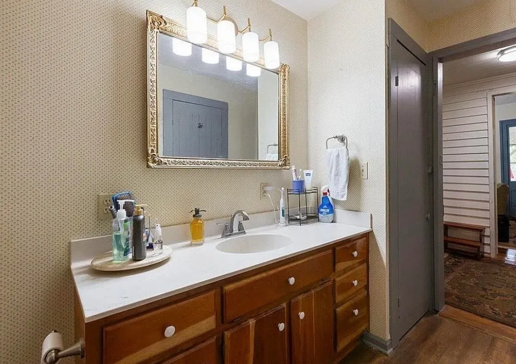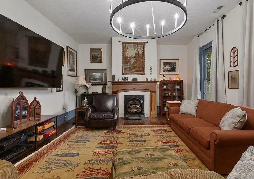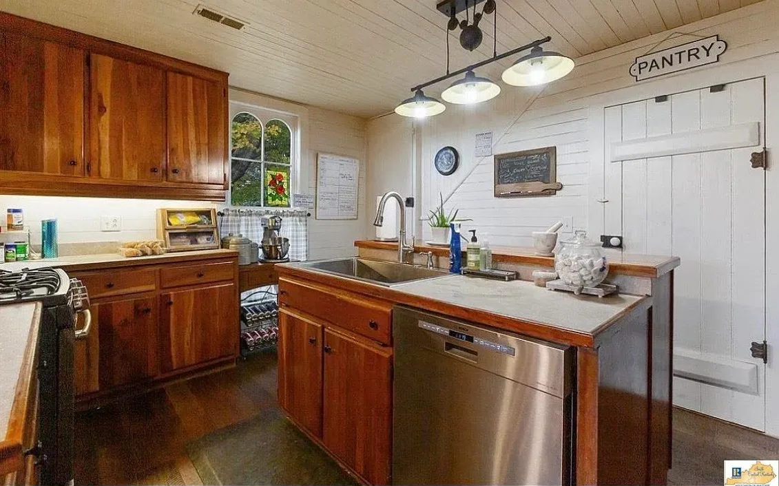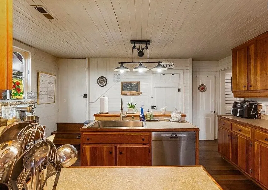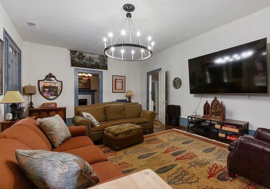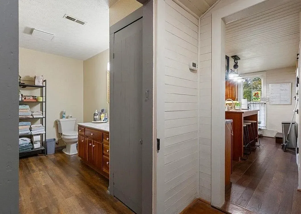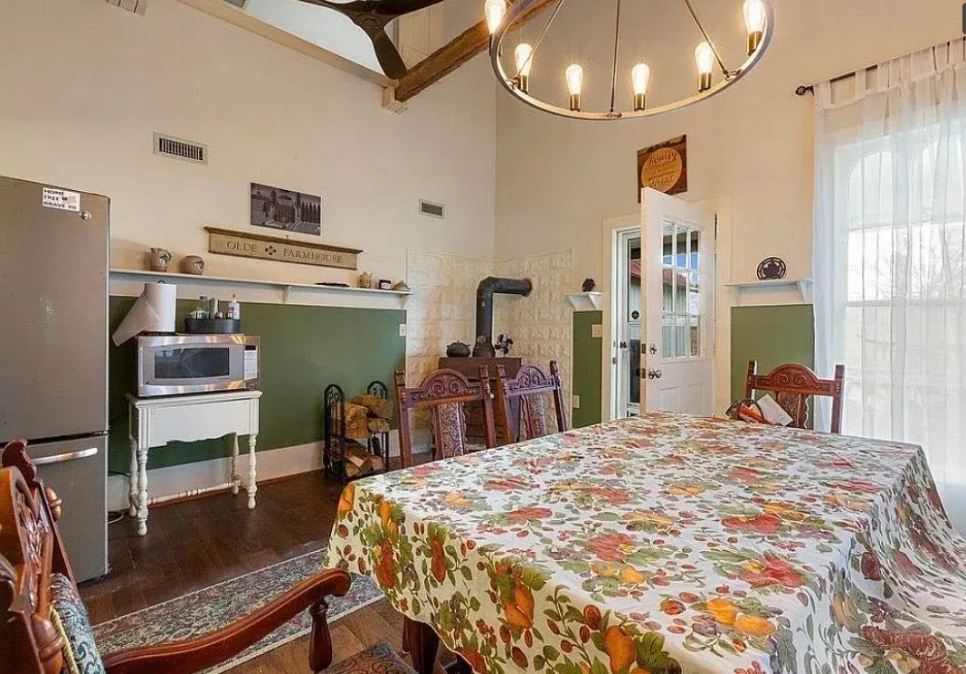 This house has a pretty setting! I love the long driveway! The house was built in 1859. It is located on 3.78 acres in Horse Cave, Kentucky. The house features a covered front porch, wood floors, really wide baseboards, picture rails, original mantels, spacious kitchen, office and a loft area. There is a detached garage on the property. Three bedrooms, two bathrooms and 2,255 square feet. $345,970