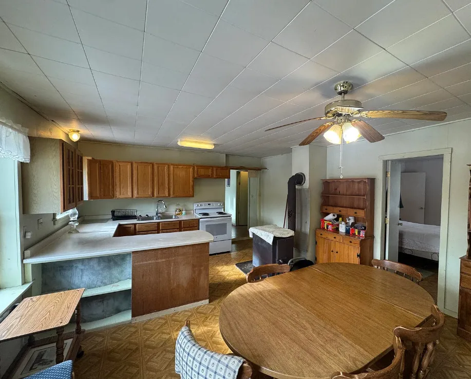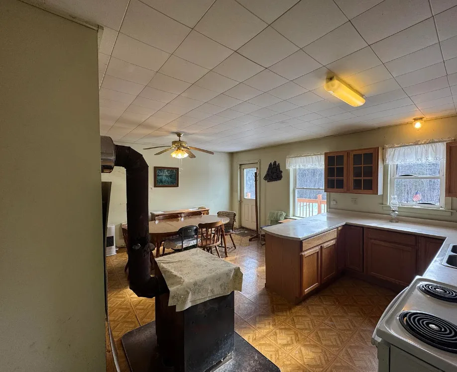 Set along quiet Folsom Ridge Road in Burlington, this remarkably private 44-acre property offers a rare blend of seclusion, functionality, and room to roam. With practically no neighbors in sight, the setting delivers true peace and quiet while still providing essential amenities including power, private water, and septic. The land features a pleasing mix of open space, a small field, and a productive wood lot with mixed-growth forest. The soils have a long history of agricultural use, proven suitable for growing crops for more than seven decades, making this an excellent opportunity for homesteading, small-scale farming, or sustainable living. A greenhouse on site offers the chance to revive and expand growing potential, while abundant wildlife surrounds the property, with deer frequently seen right in the yard. Two additional outbuildings add versatility, including a former print shop that provides excellent potential for a workshop, studio, or equipment space, and a small cabin-style building with an attached carport, ideal for storage, guest use, or creative projects. The home is generously sized and thoughtfully laid out with five bedrooms and two full bathrooms, including a primary bedroom with its own bath. A large kitchen allows plenty of room for cooking, preserving harvests, and gathering, while the open-concept living area features cathedral ceilings that create a bright, spacious feel. Wood stoves positioned on either end of the home add warmth and character, complemented by a heating system for year-round comfort. This location is ideal for outdoor enthusiasts, offering easy access to hunting, fishing, canoeing, kayaking, snowmobiling, and ATV riding, with numerous nearby lakes enhancing the recreational appeal. Whether you’re seeking a full-time homestead, a recreational retreat, or a private rural escape, this Burlington property delivers space, privacy, and versatility in a truly secluded Maine setting.