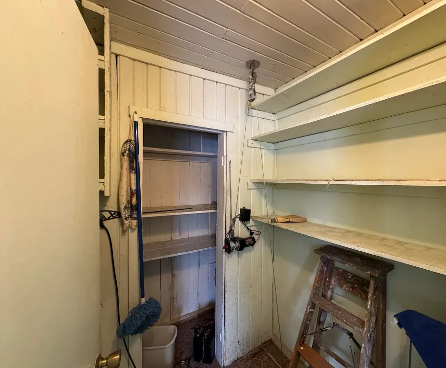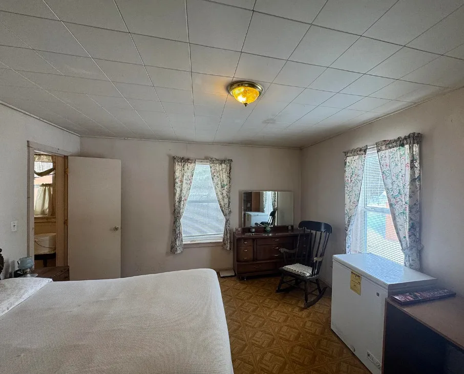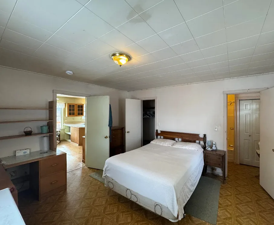 Nice acreage with this house! I love that greenhouse! The home was built in 1939. It is located on 44 acres in Burlington, Vermont. The house could use some updating, but it has some nice features to work with. The home features a large deck, a large great room with vaulted ceiling, wood floors and a built-in corner cabinet. There is a pretty greenhouse and an old barn on the property. Five bedrooms, two bathrooms and 1,800 square feet. $239,000