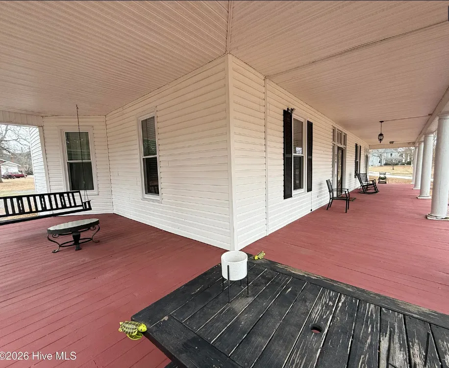 This house has a great porch! The listing says five acres, but there is no way. I think they meant .5. The house was built in 1941. It is located on .5 acre in Laurinburg, North Carolina. The house features a wrap around front porch, a small enclosed porch, wood floors, french doors, wide baseboards and transom windows. There is a carport with storage. Three bedrooms, two bathrooms and 2,827 square feet. $255,000