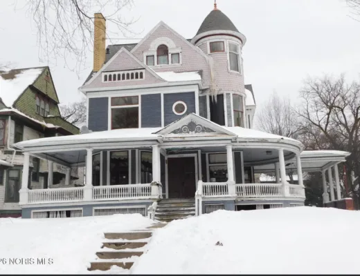 This house has some pretty details! I love the front door area and the built-in buffet seating! The house was built in 1930. It is located on .46 acre in Rome, New York. The house features a beautiful front door, crown moulding, built-in bookshelves, buffet seating, nice fireplace, wide baseboards and vintage bathroom. I bet there are wood floors underneath the carpeting. Four bedrooms, two bathrooms and 1,910 square feet. $349,900