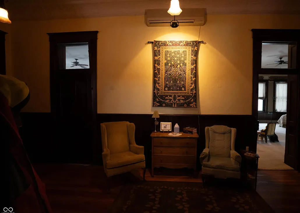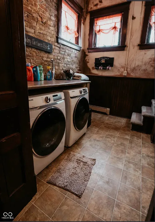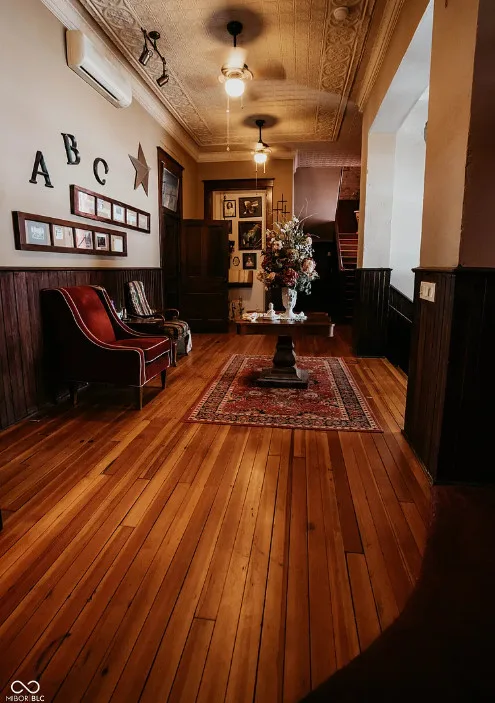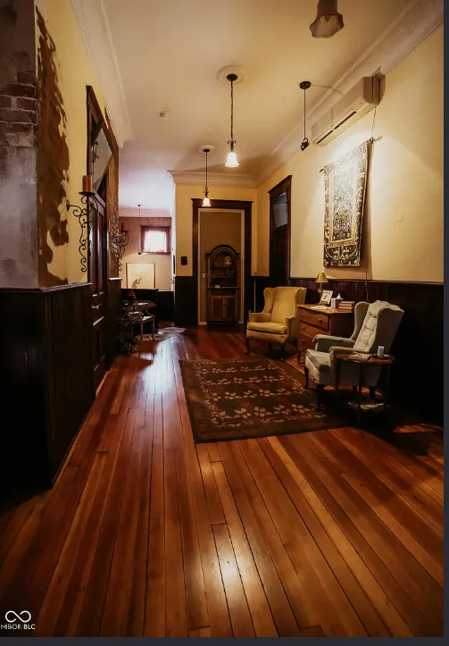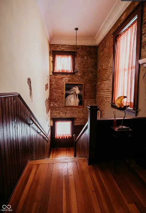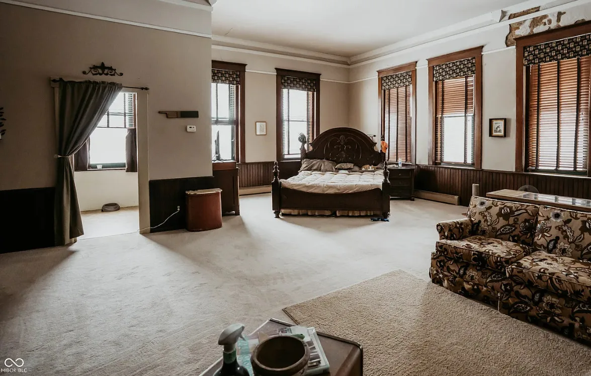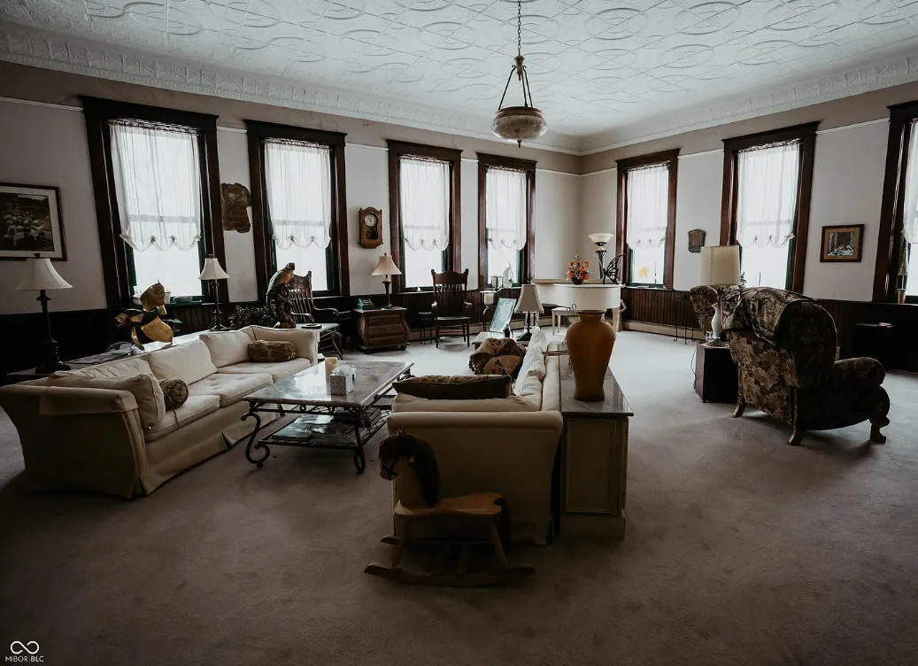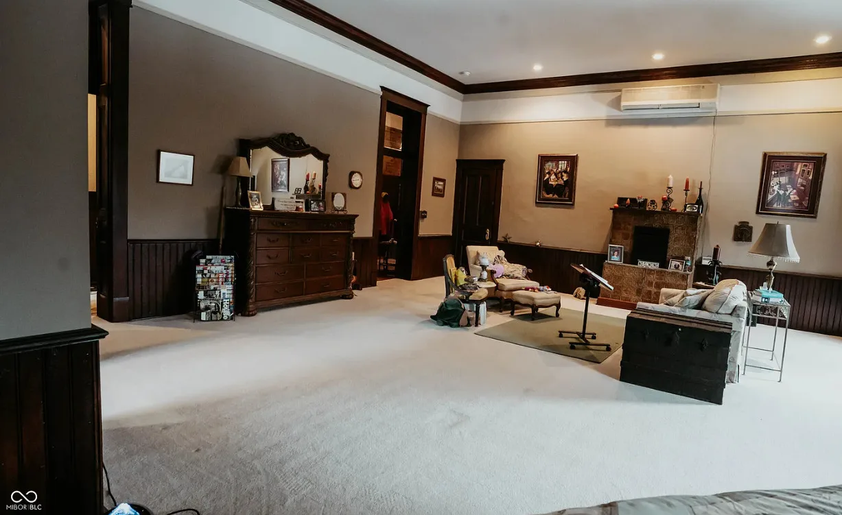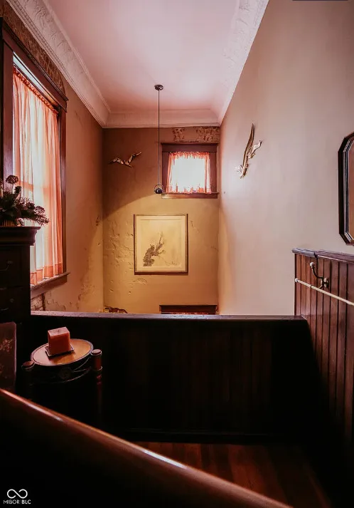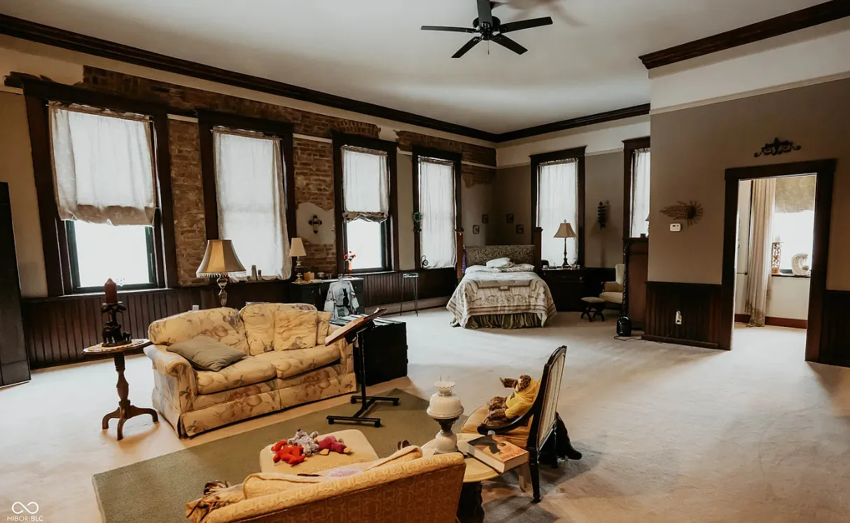 This is the former Breaks School. This is a huge space with over 8,000 square feet! It was built in 1906. It is located on two acres in Crawfordsville, Indiana. The home features wood floors, tall ceilings, great staircases, built-in bookshelves, wine cellar, unique ceilings, bead board wainscoting, crown moulding, vintage light fixtures and nice architectural details. There is a detached barn on the property. Four bedrooms, five bathrooms and 8,478 square feet. $829,000