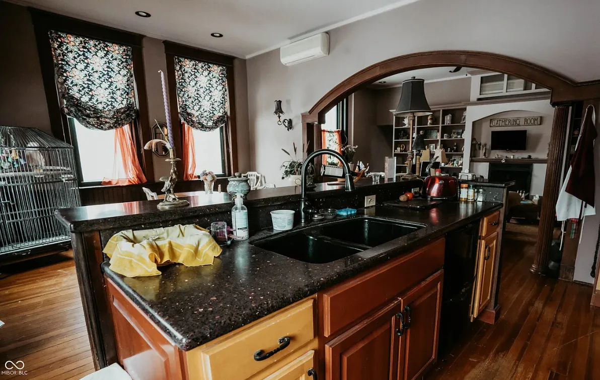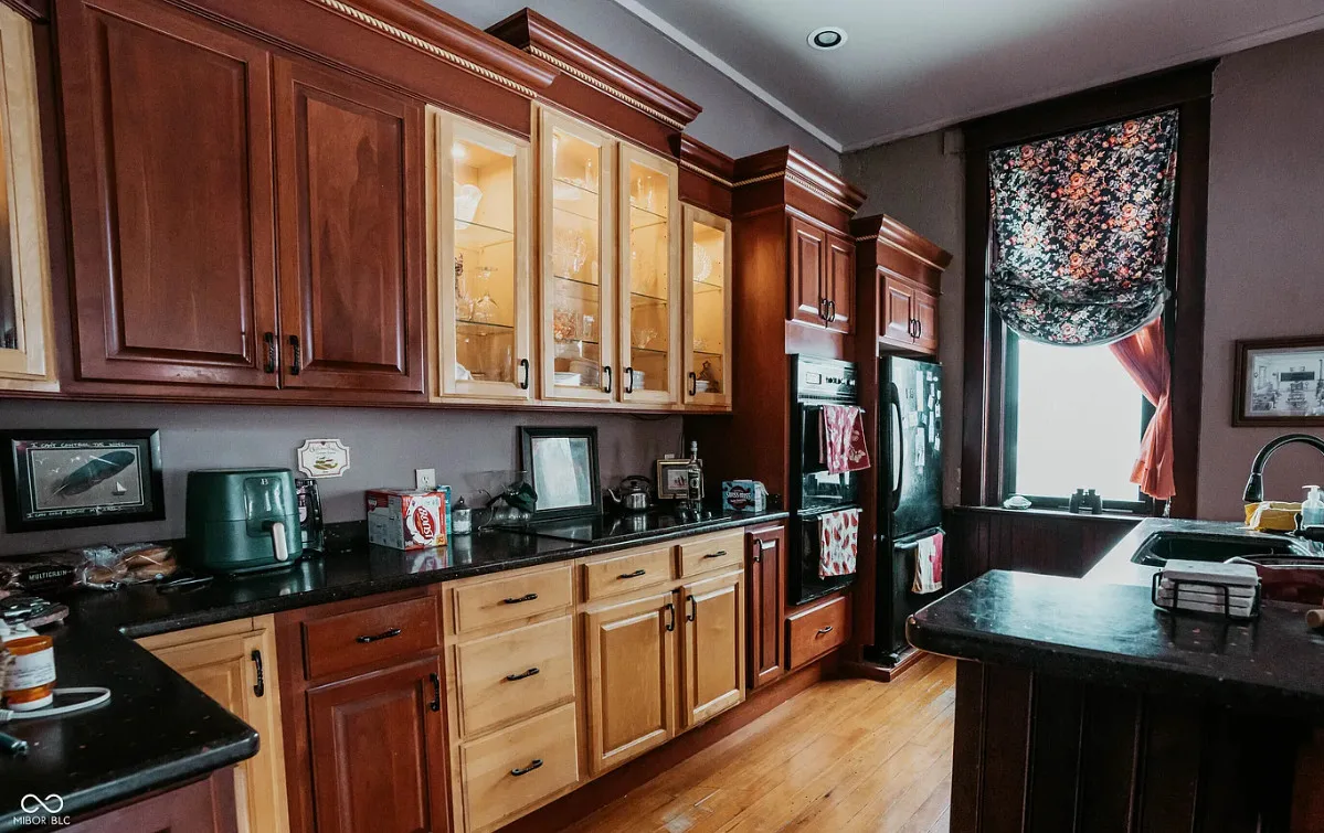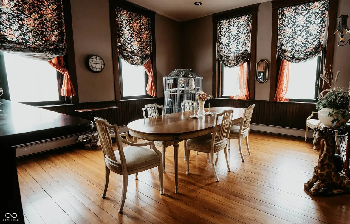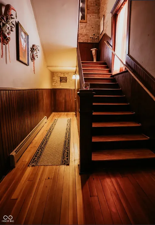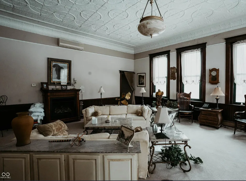 Step into history at this truly unique former Breaks School thoughtfully converted into a spacious single-family home set on 2 acres in the countryside of Crawfordsville. With 4 levels, including basement, 1st, 2nd, and 3rd floors, this remarkable property offers incredible flexibility, character, and charm you simply can’t replicate. The main level welcomes you with a large foyer and wide hallways showcasing beautiful hardwood floors. This floor features a fully equipped kitchen with all appliances included, dining room, cozy family room with fireplace, and a large living room complete with its own fireplace and library; ideal for everyday living and entertaining. The 2nd floor features 2 expansive primary suites; each offering walk-in closets, full baths, and fireplaces, along with a conveniently located laundry room. The 3rd floor adds even more versatility with a 2nd kitchen, dining area, living room, 2 bedrooms, and full bath; perfect for guests, extended living, or multi-generational use. The basement level includes a finished 1/2 bath & laundry combo, a 1 car garage, wine cellar, additional storage space and workshop. Throughout the home, you’ll appreciate the wide hallways, original hardwood floors, and the thoughtful blend of historic character and modern convenience. The property is equipped with dual heating and cooling systems for added comfort and efficiency. Outside, the setting is just as impressive with a pole building featuring two overhead doors, a small barn, and a travel trailer with a wood deck that can remain with the property. A deck off the home provides space to relax and enjoy the peaceful surroundings, all set on 2 beautiful acres. This historic property offers endless possibilities from a distinctive private residence to a potential bed & breakfast or creative retreat. A rare opportunity to own a one-of-a-kind piece of local history with space, character, and flexibility.