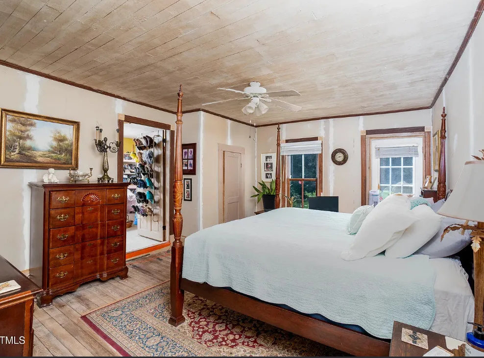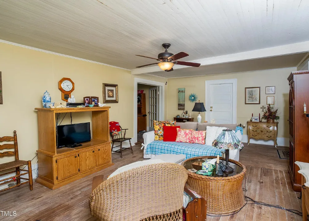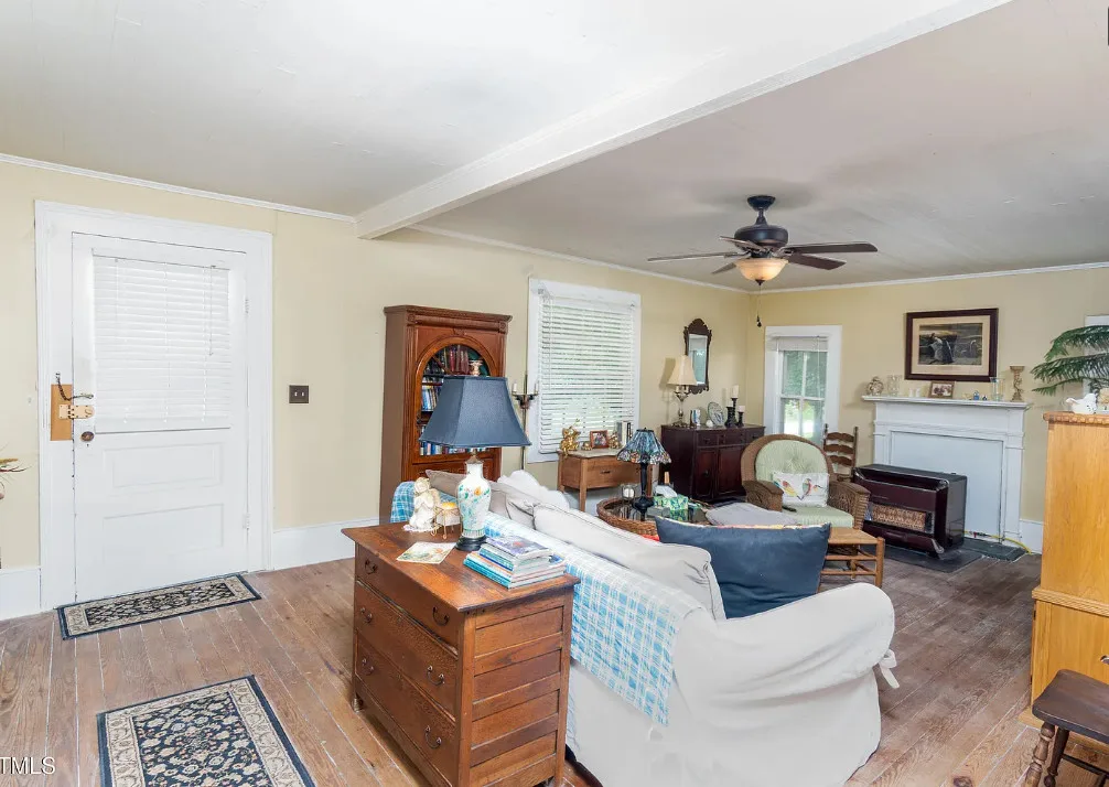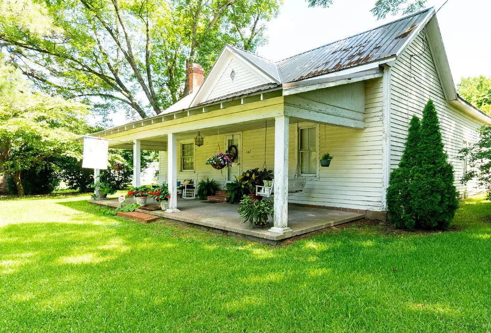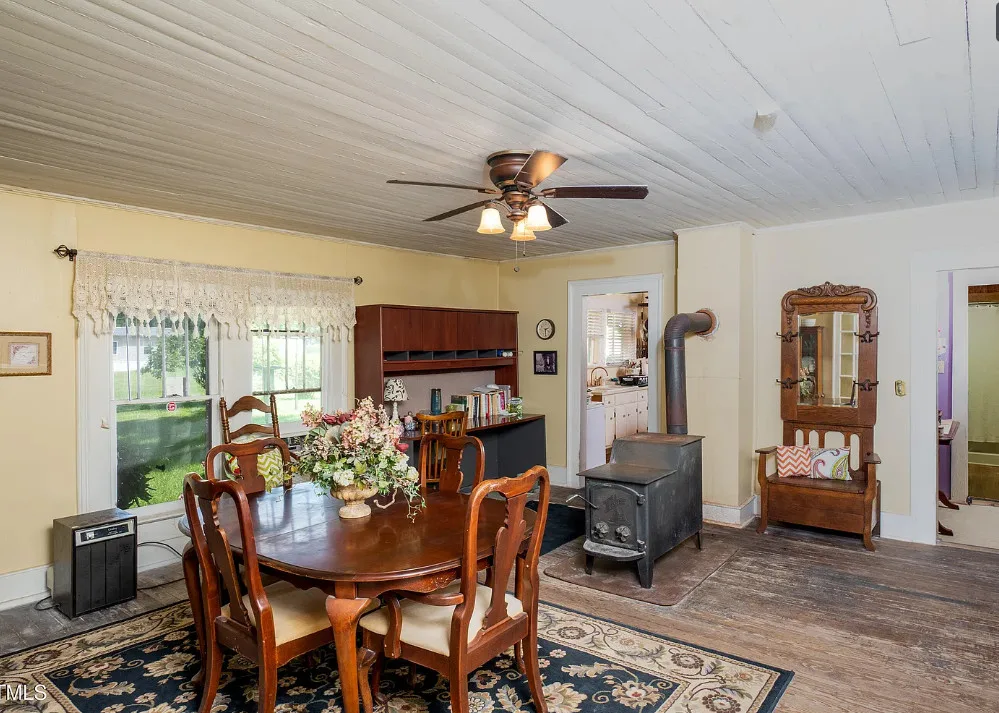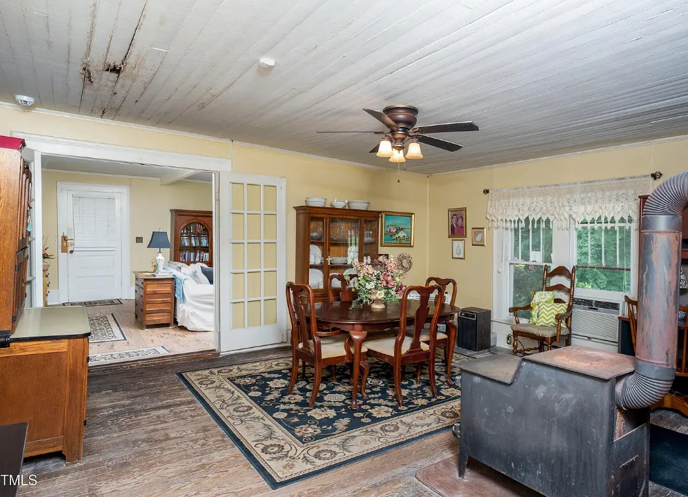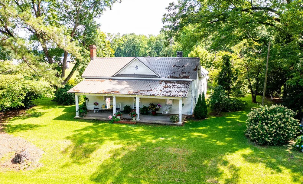 GREAT INVESTMENT AND REDUCED PRICE! Step back in time with this charming 1908 farmhouse, full of character and original details just waiting to be revitalized. Situated on over 2 acres with no HOA, this 3-bedroom, 1-bath home offers timeless appeal, including original hardwood floors, tall ceilings, and a wood-burning fireplace in the dining room that flows into the kitchen. Enjoy peaceful mornings on the spacious front porch, perfect for rocking chairs and sweet tea. A new aluminum roof was installed in 2023, providing a strong start for restoration. If you’ve been searching for a historic farmhouse to make your own, this is your opportunity. Priced to sell – , Sold AS IS, and the seller will make no repairs. Bring your vision and restore this gem to its former glory!