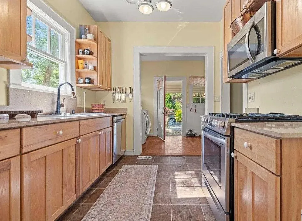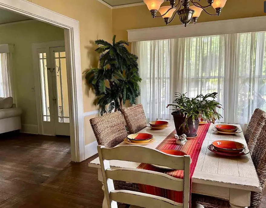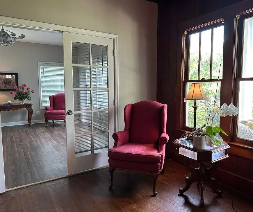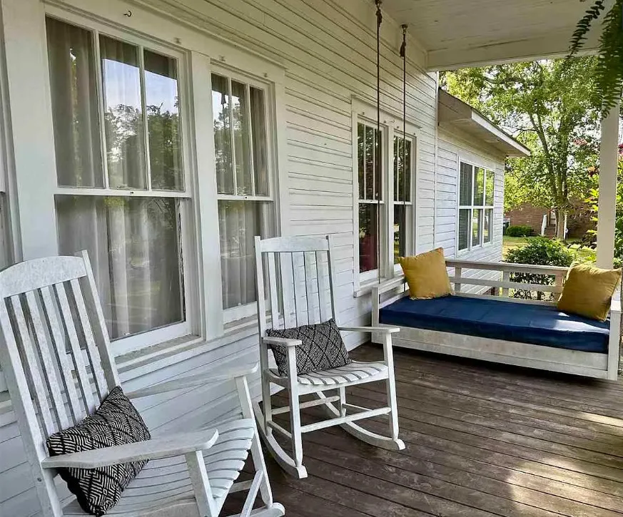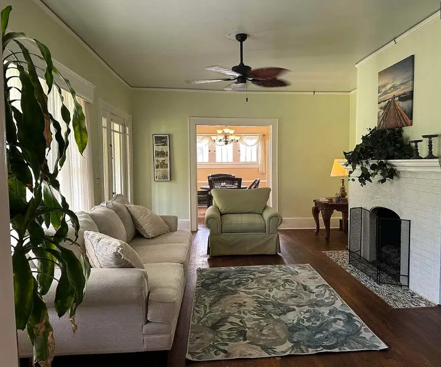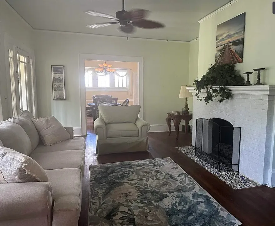 Don’t miss your opportunity to own this lovely 3 bedroom 3 bath traditional 2 story home at a great price! Features include a full length front porch and oversized screened in back porch perfect for relaxing or entertaining. Double lot sized fenced back yard with an abundance of fruit trees including peach, pear, apple, persimmon and fig. Beautifully landscape front yard. Detached single car, garage Patio and handicapped ramp for ease of access. Generac for peace of mind. Upstairs offers a bedroom, full bath and living space perfect for in-laws or guests. Addition of Primary bedroom and full bath with walk in shower dressing area and large closet was completed in 2021. Windows throughout the home offer lots of natural lighting adding warmth to the space. Downstairs Bedrooms have their own private access to deck, yard and screened in porch. Formal living room with fireplace and gas log insert. Formal dining room, and family room with french doors that open to the screened in proch as well. Well equipped galley style kitchen with solid surface countertops, lots of cabinets for storage, stainless appliances including dishwasher and range with front controls, microwave and french door refrigerator. Dishwasher replaced 2025. Range and microwave installed 2020. Butler pantry/breakfast area off kitchen with addition built in china and separate laundry area. Sitting room off primary bedroom could be used as office, or reading room. 11 foot ceilings, hardwoods, tile and laminate flooring. Tankless water heater, and main HVAC less then 6 years old. . Detached single car garage has plug for electric vehicle that was installed @ 2021. Drip irrigation system for watering the back yard shrubs flowers and fruit tress. Full house Generac system installed 2021 HVAC system serviced in 2025.