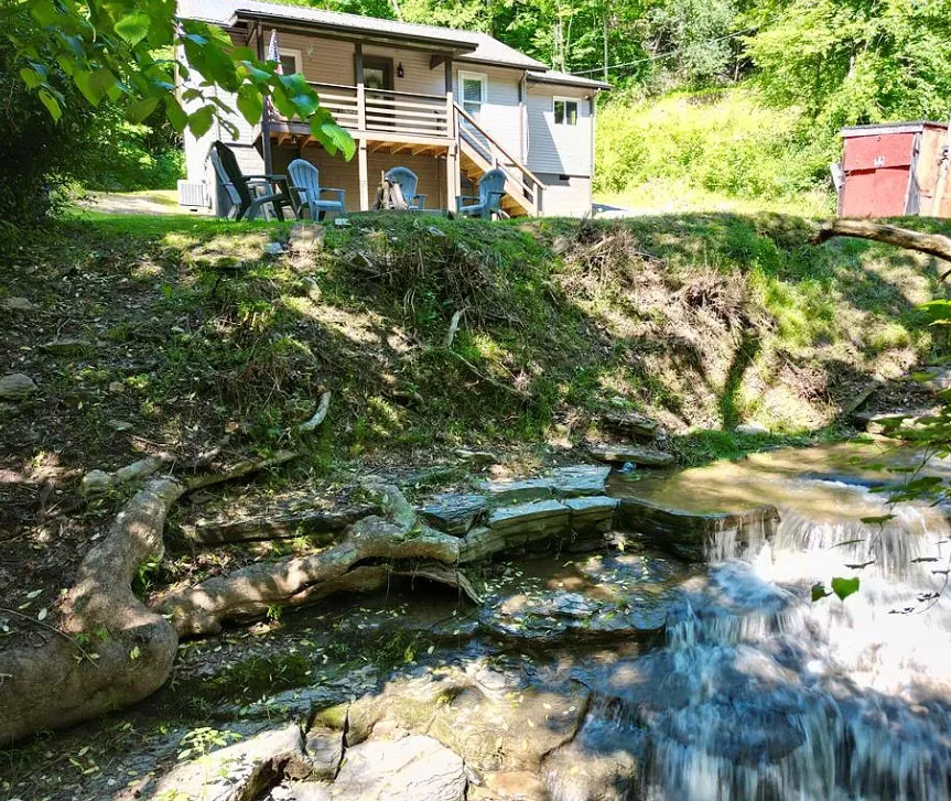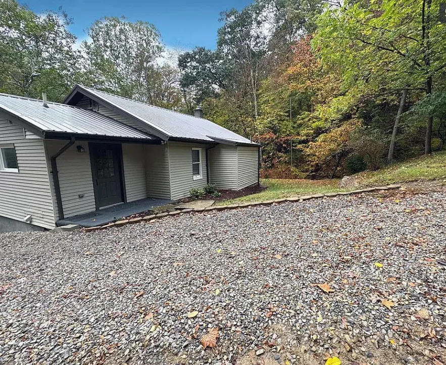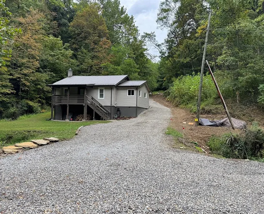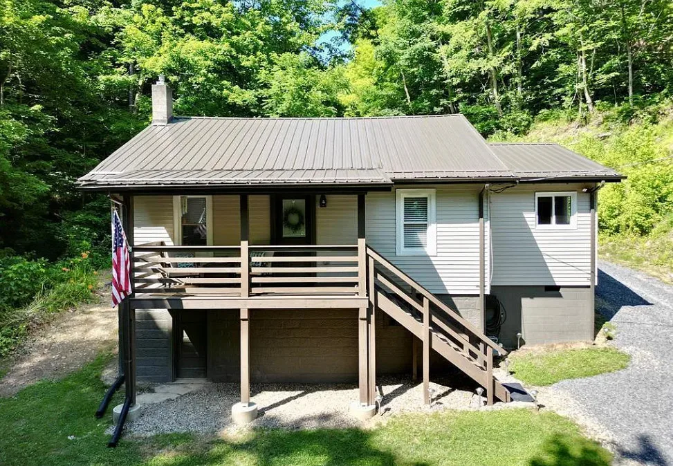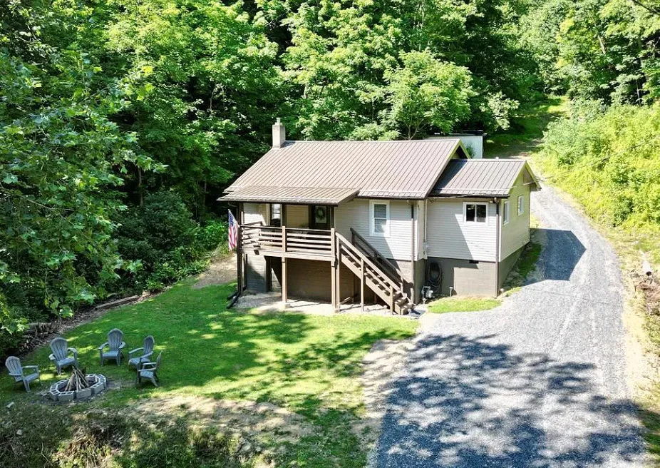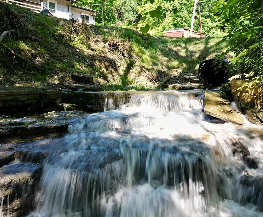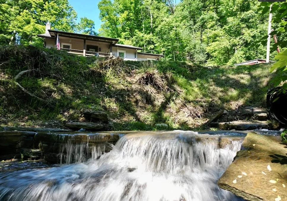 Pretty waterfall! Nice acreage with this house! The home was built in 1927. It is located on 35 acres in Triadelphia, West Virginia. The house is kind of like a blank slate. I would try to add some character inside. The house features an updated kitchen and bathroom. There is a fire pit area and a covered porch. Pretty setting! Three bedrooms, one bathroom and 1,044 square feet. $330,000