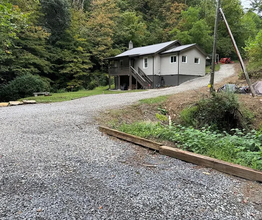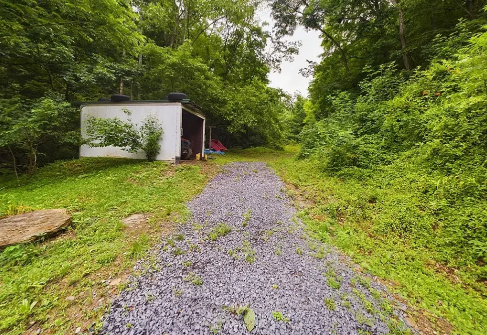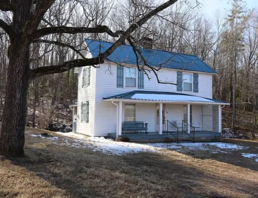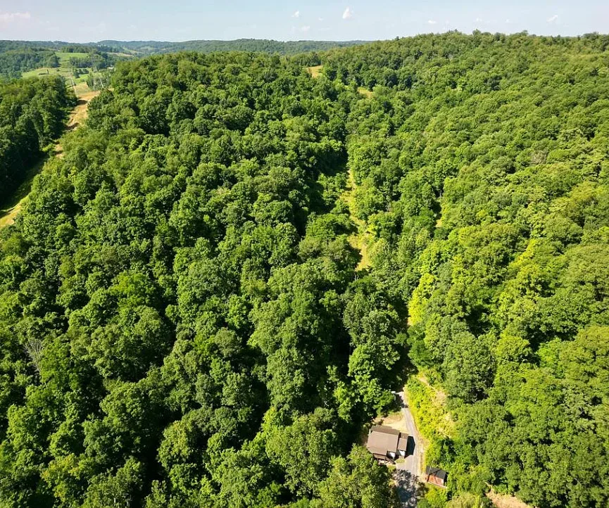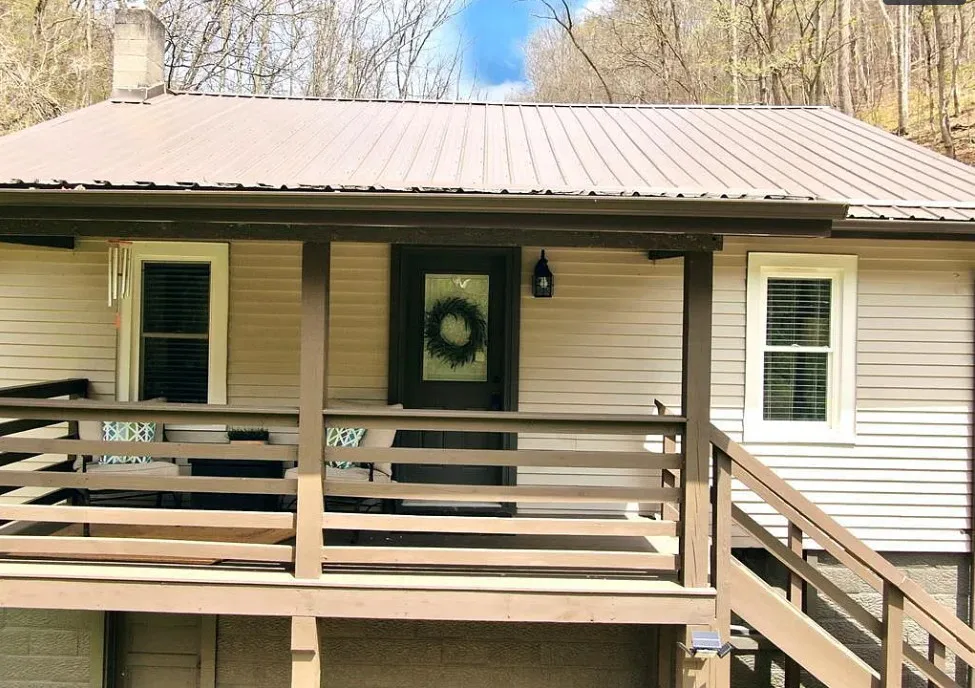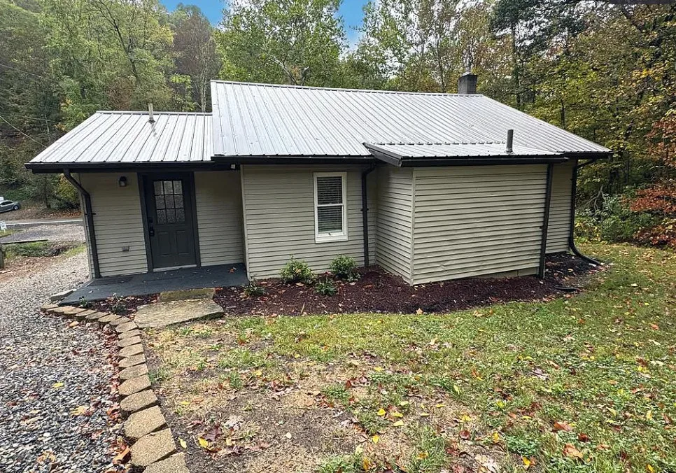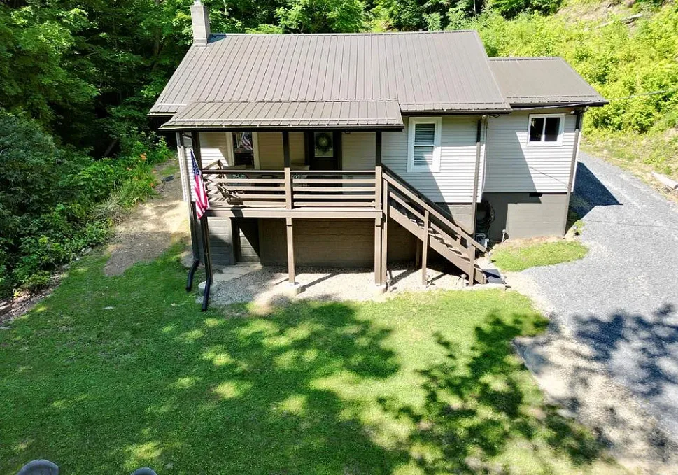 Pretty waterfall! Nice acreage with this house! The home was built in 1927. It is located on 35 acres in Triadelphia, West Virginia. The house is kind of like a blank slate. I would try to add some character inside. The house features an updated kitchen and bathroom. There is a fire pit area and a covered porch. Pretty setting! Three bedrooms, one bathroom and 1,044 square feet. $330,000
